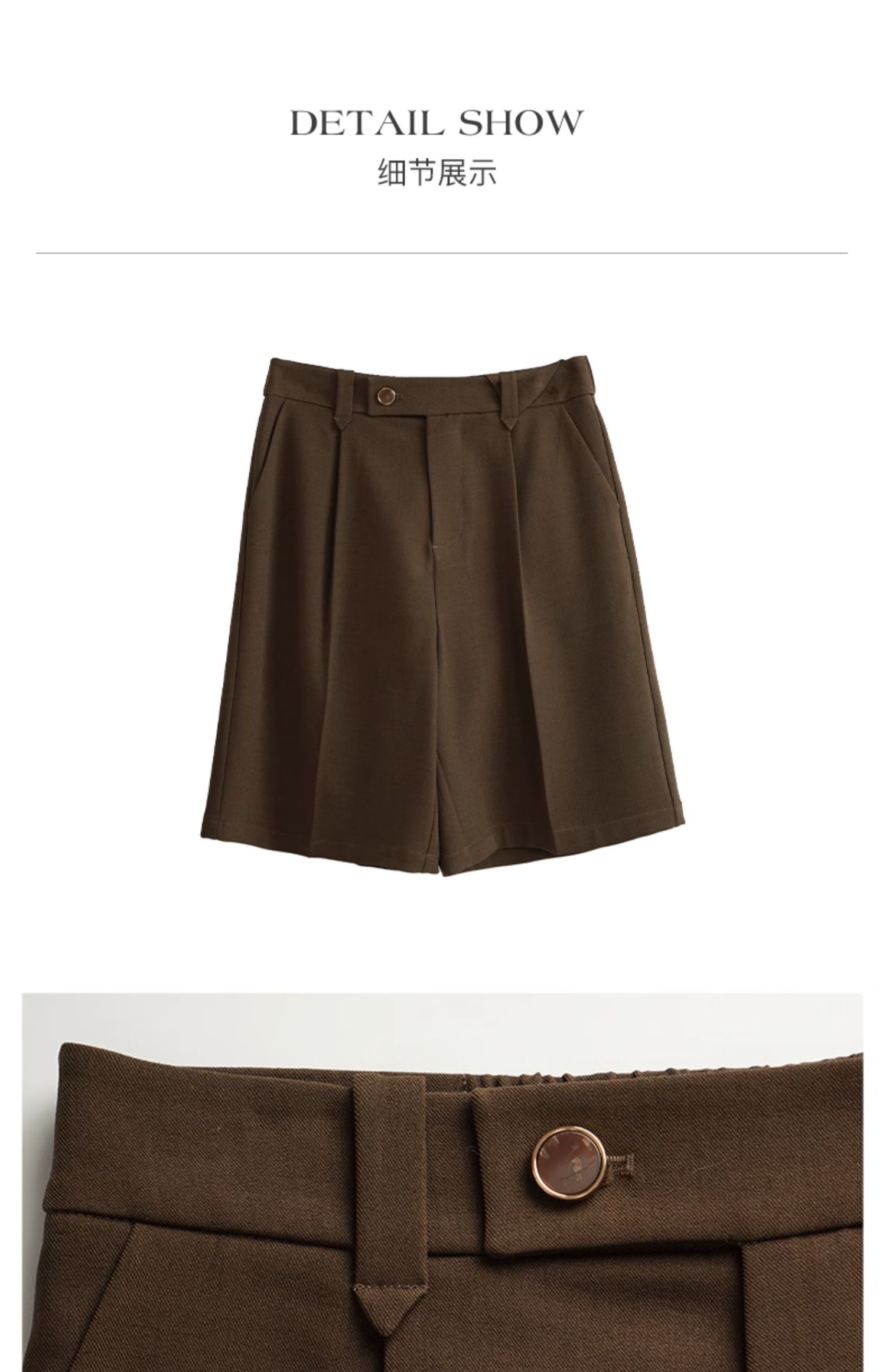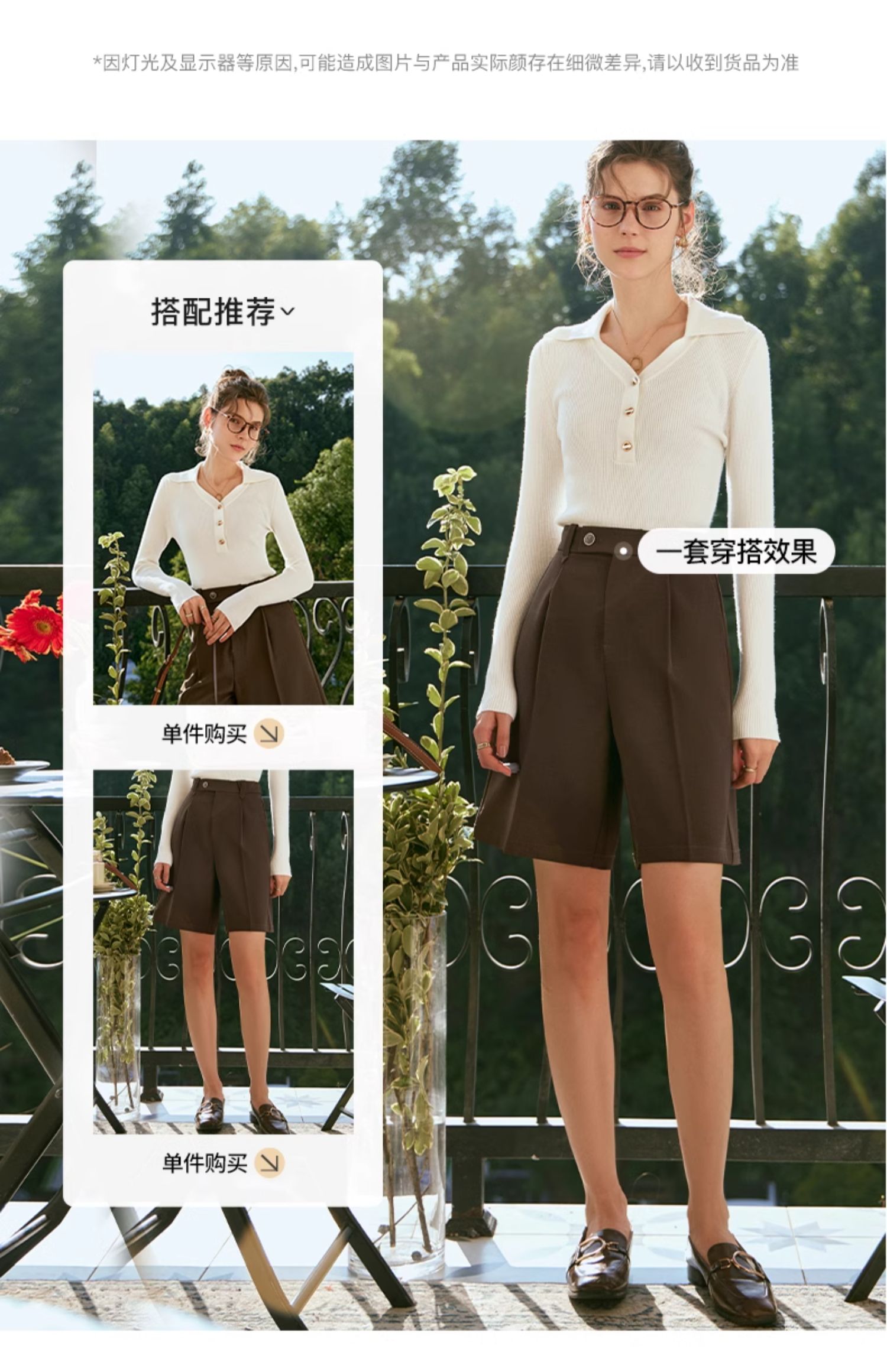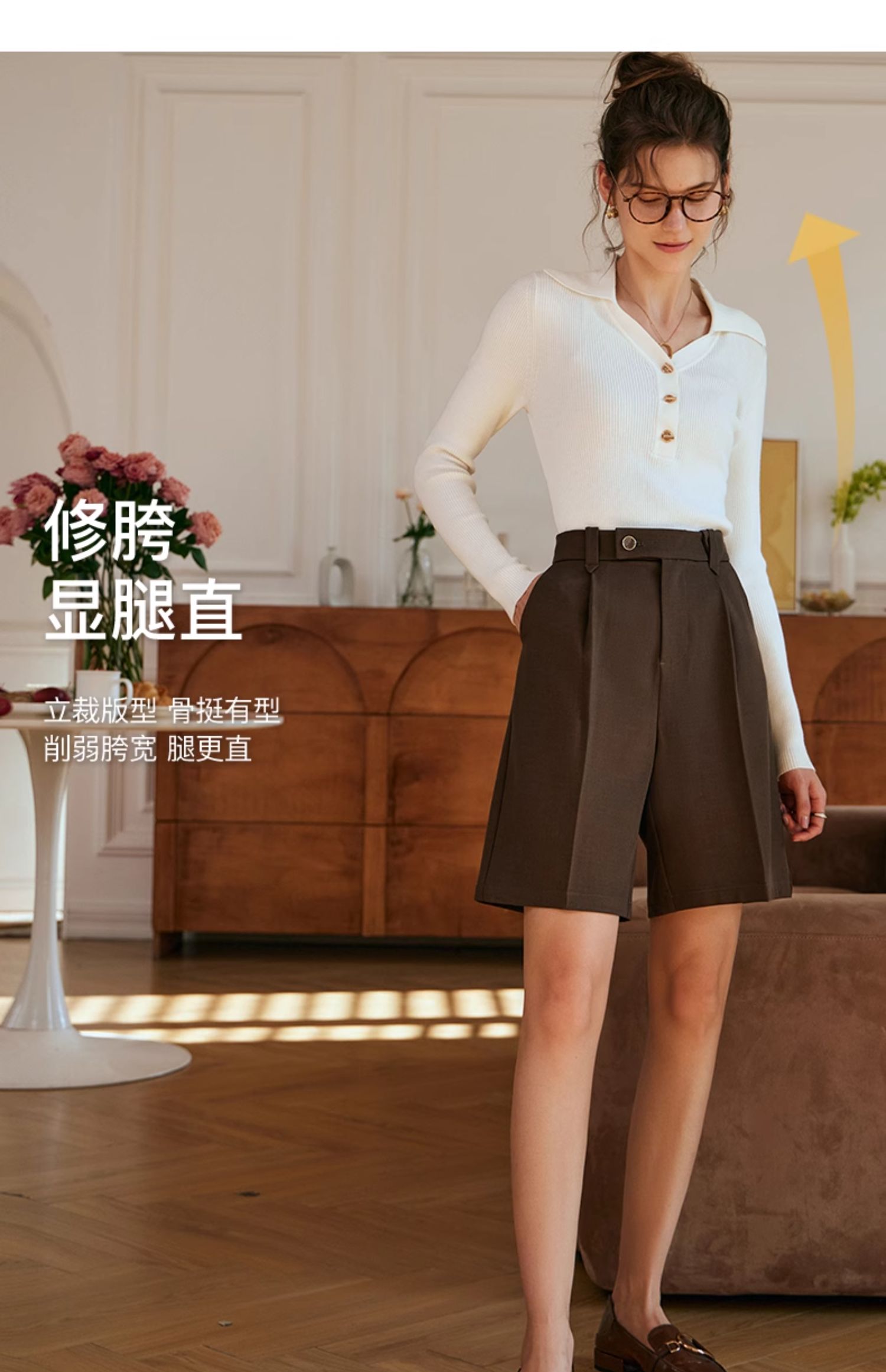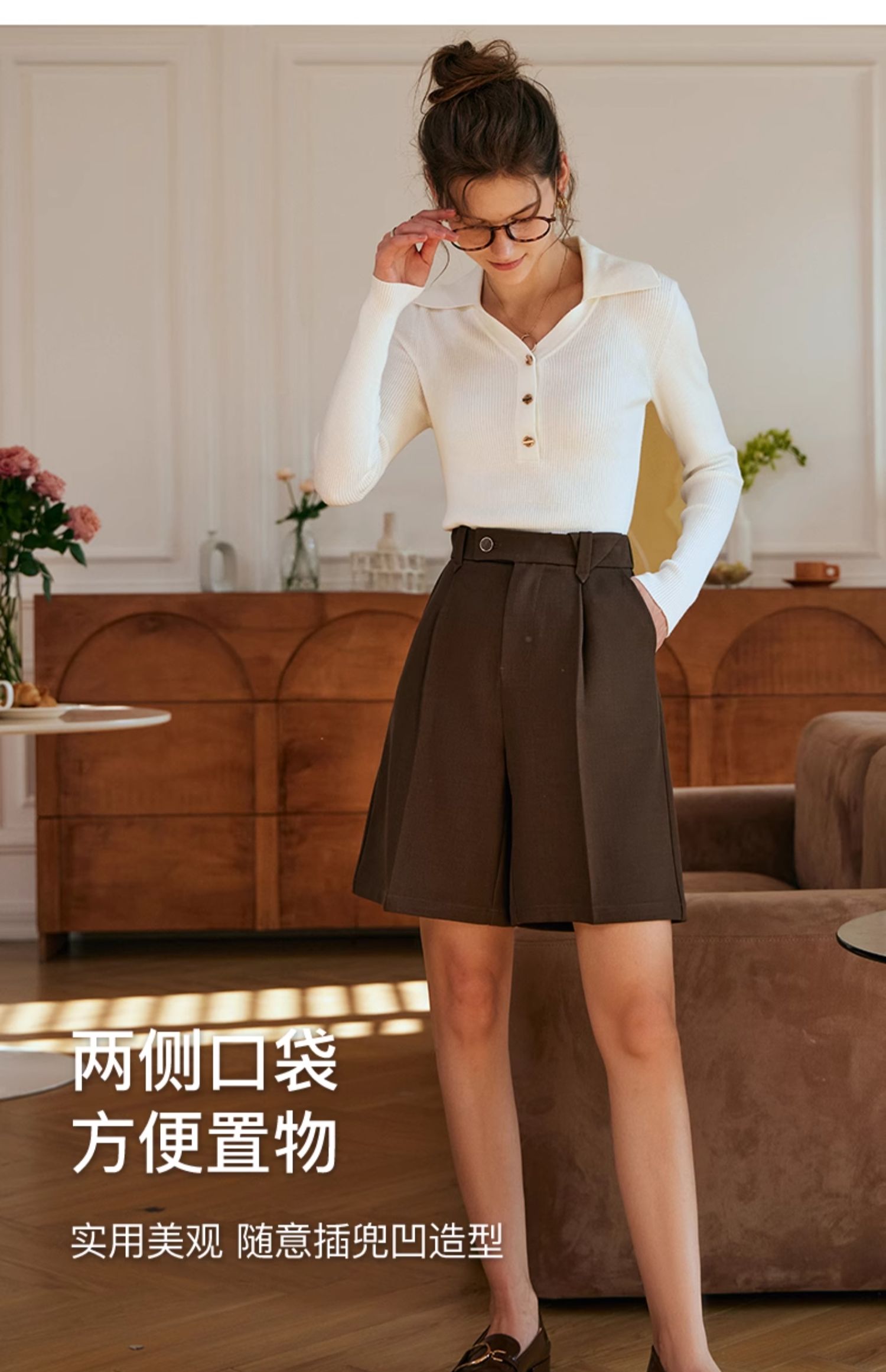 OLrain欧芮儿咖啡色休闲裤女早春2024年新款知性百搭显瘦短裤