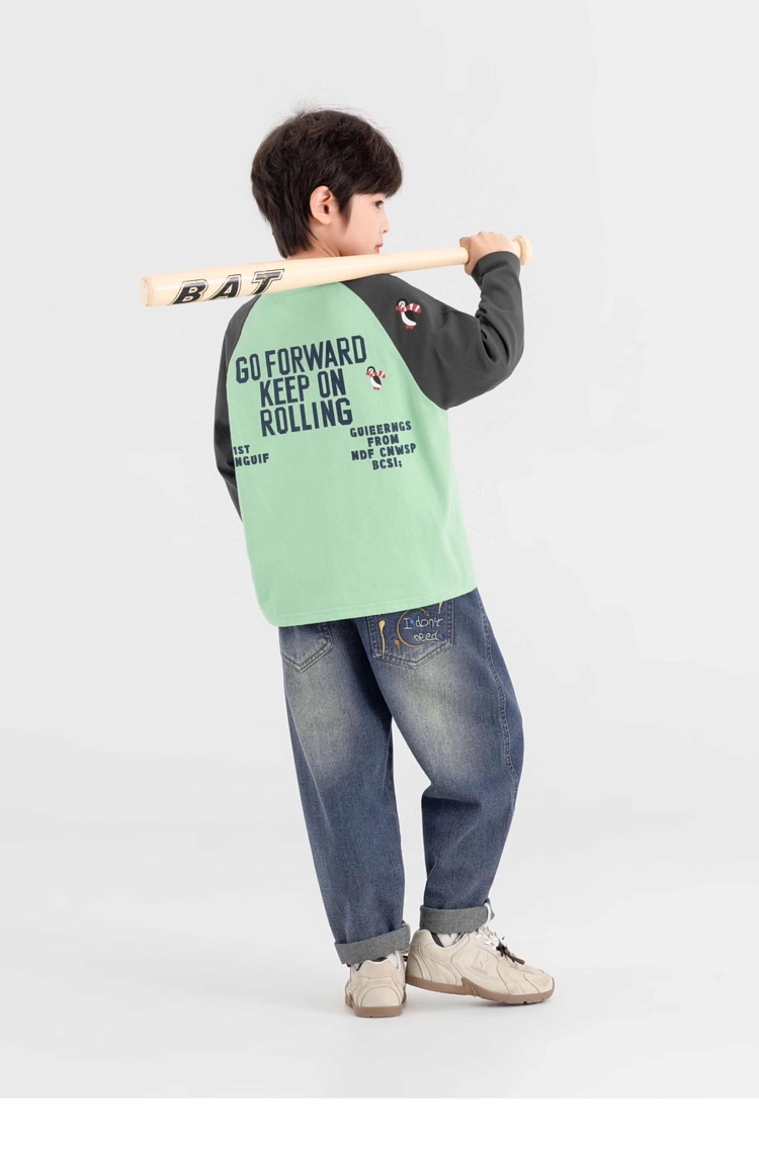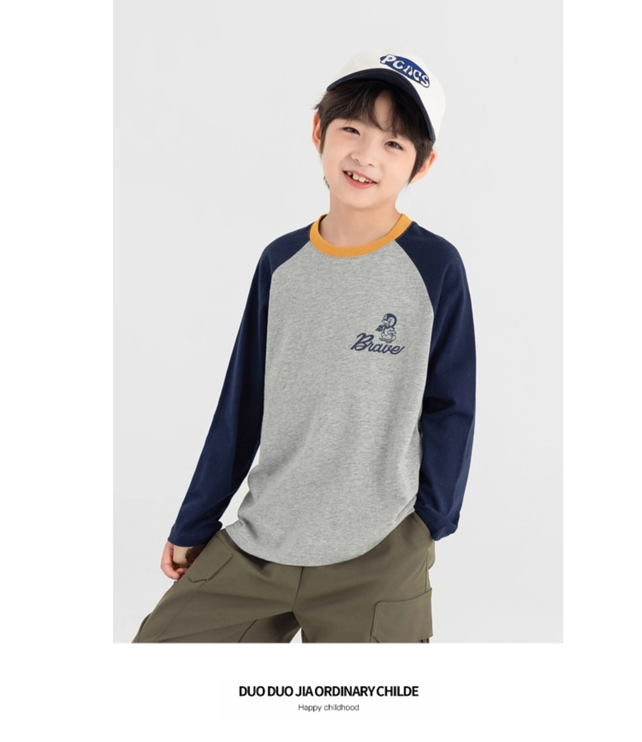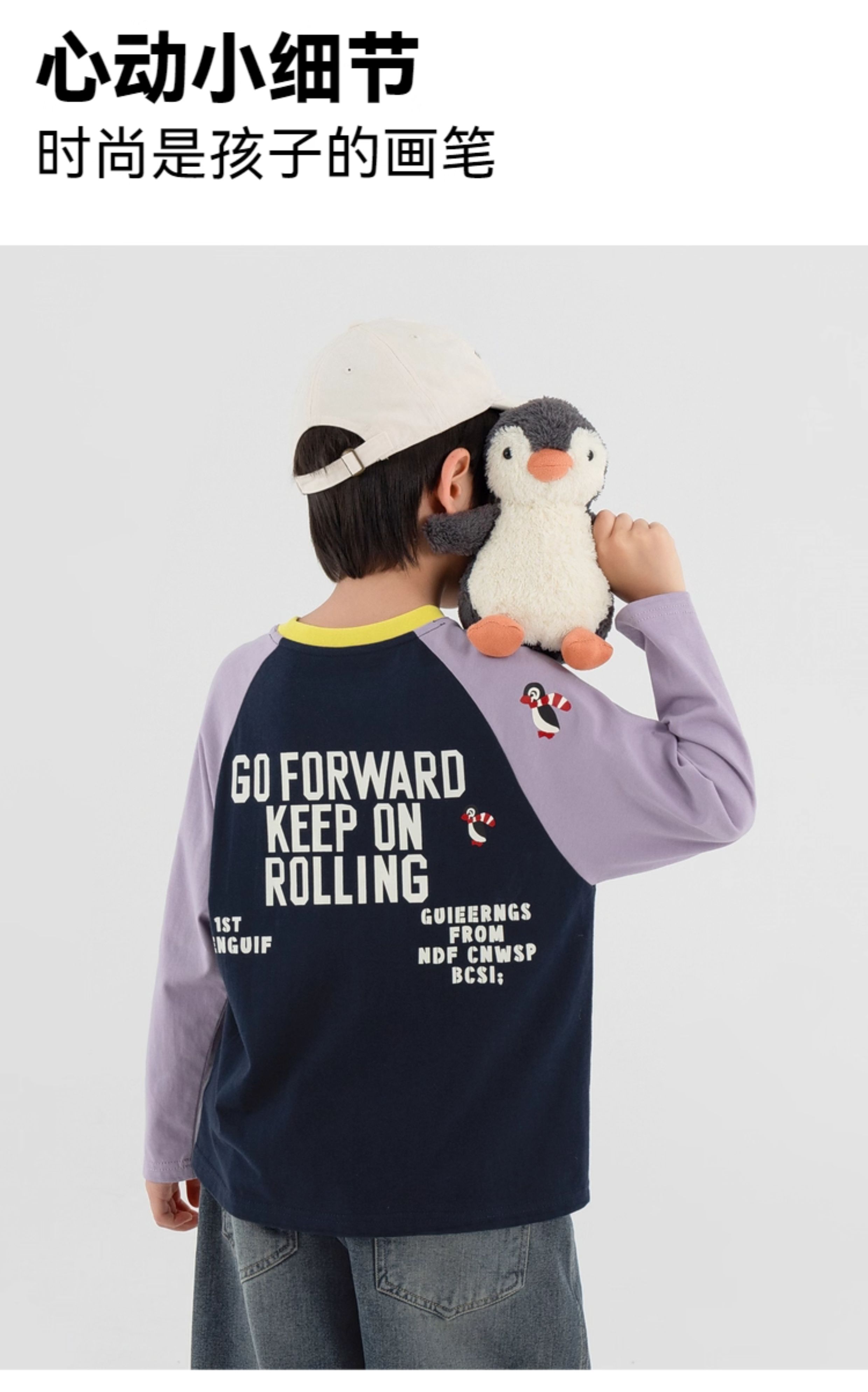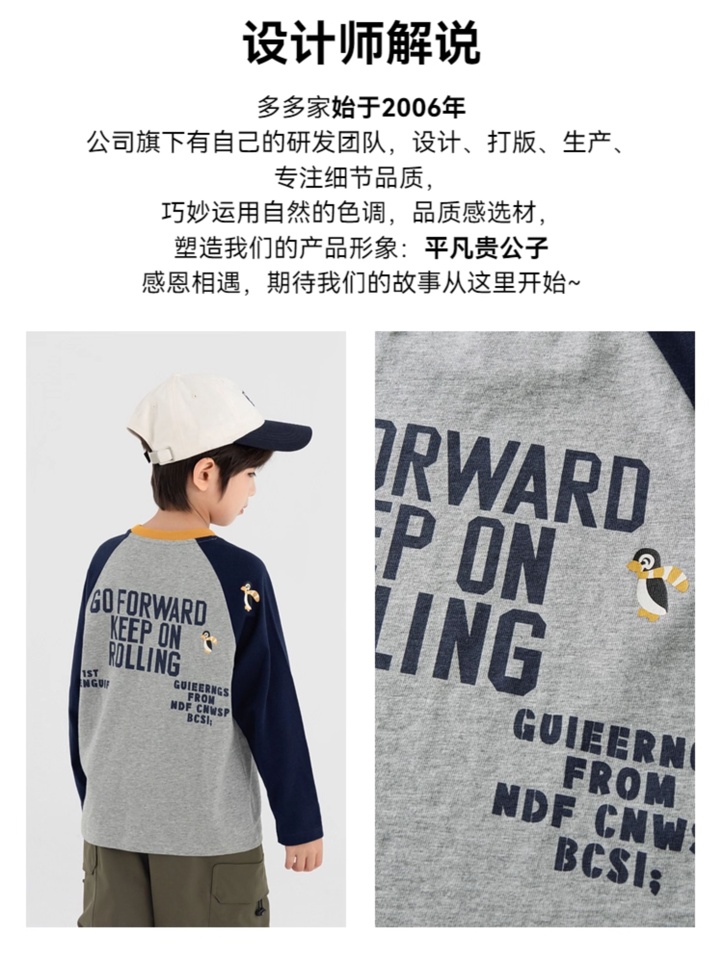 【件件底价,童装双倍积分】多多家男童长袖T恤2025新款春秋儿童美式企鹅印花男孩纯棉上衣A类10933