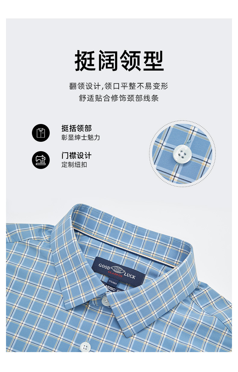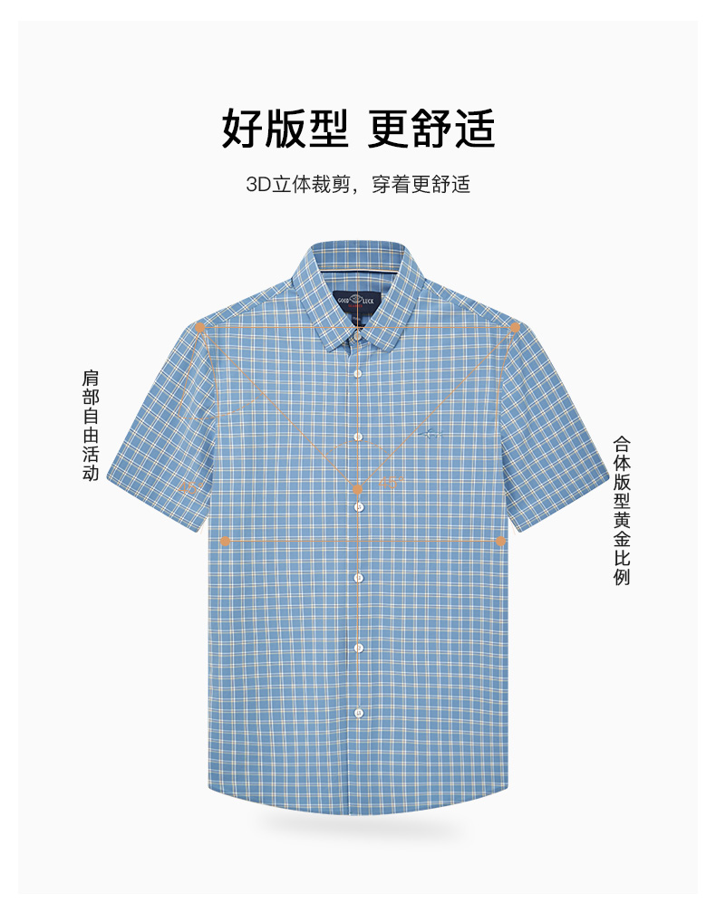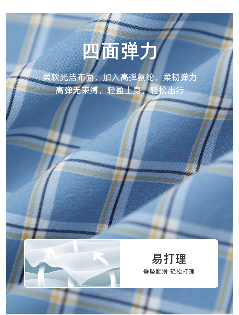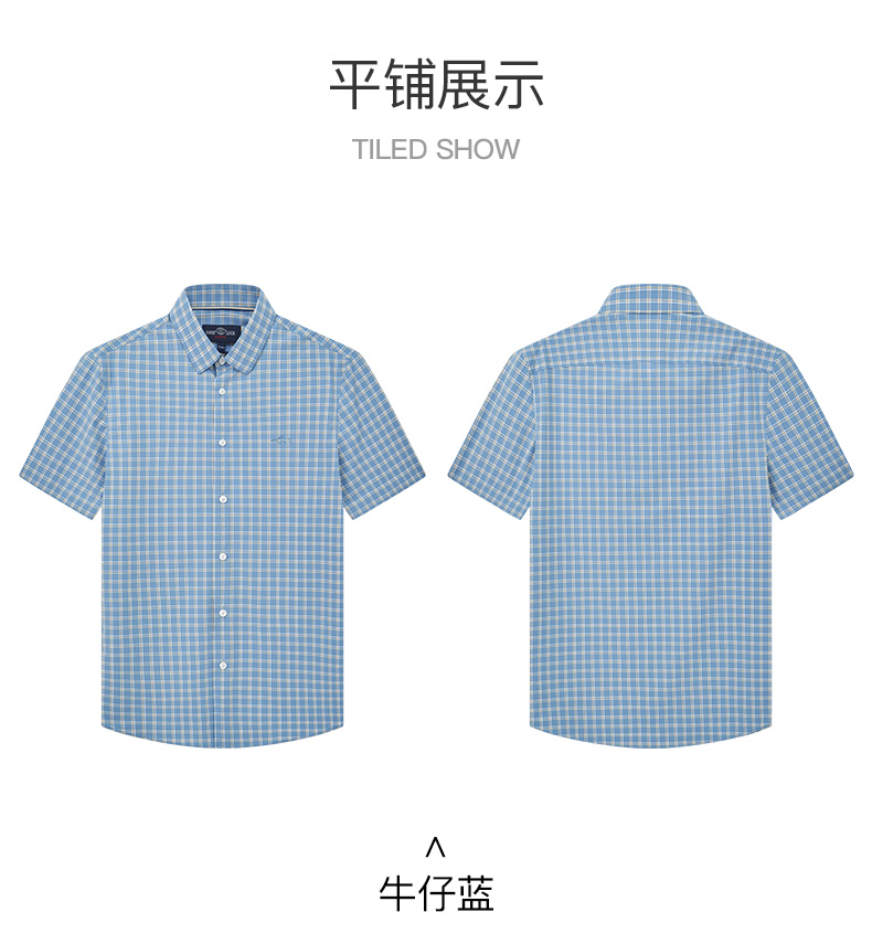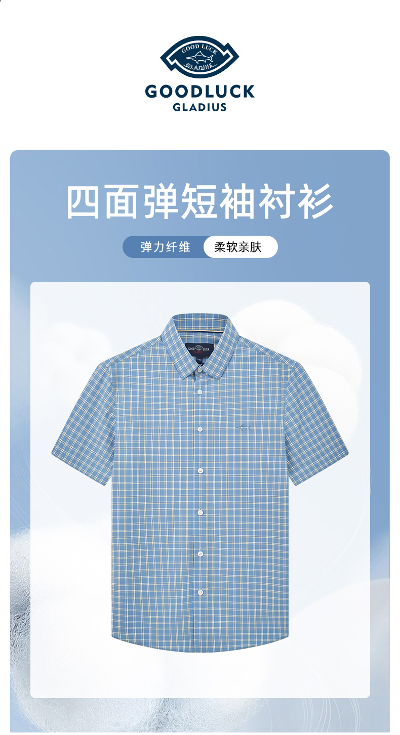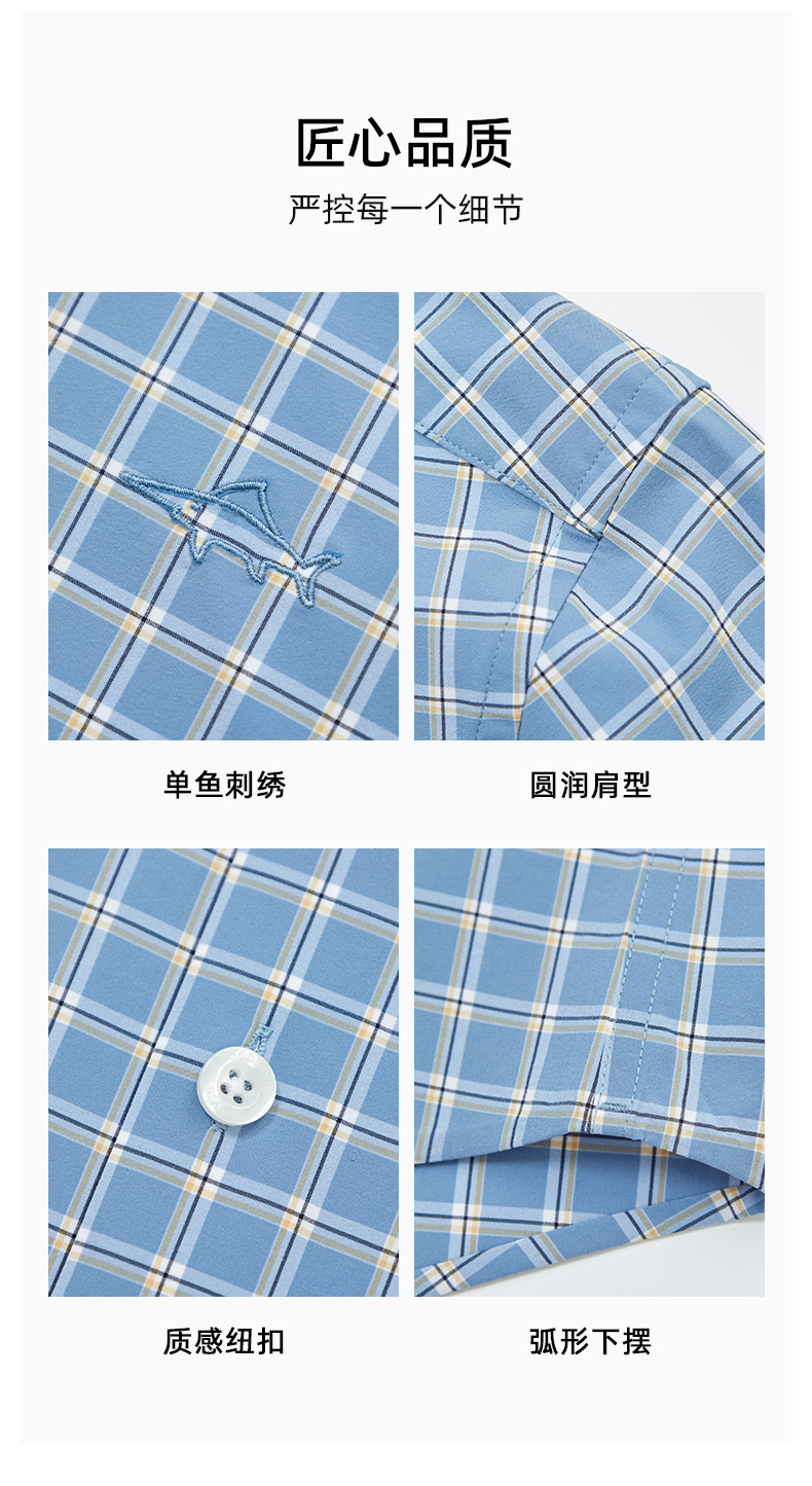 【四面弹】德鲨鲨鱼短袖衬衫男2026夏季新款休闲格子衬衣