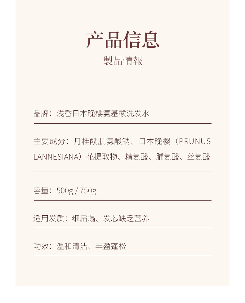 浅香日本晚樱氨基酸洗发水750g(丰盈密润)