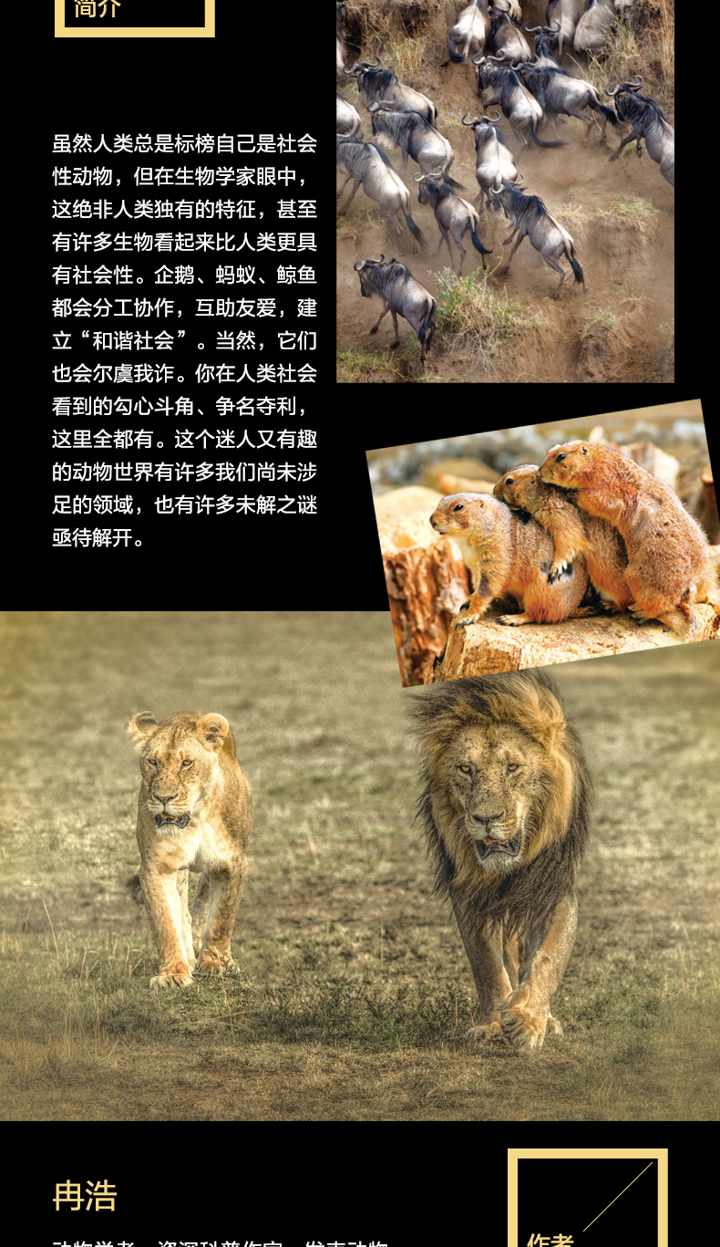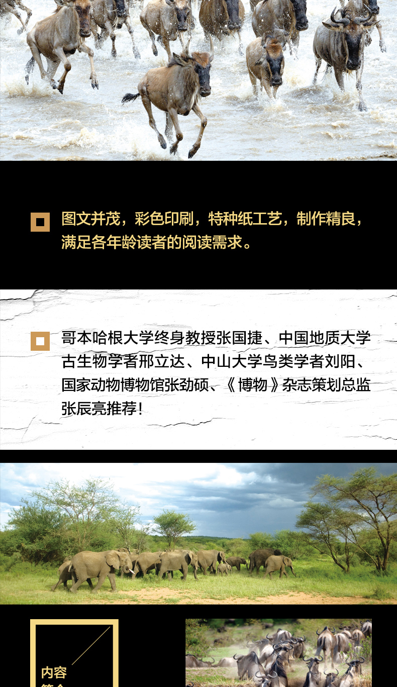 ★本书讲述了排兵布阵、躲避捕食者的鱼群,长途奔袭只为甩掉狼群追击的牛群,以及见救赎牛犊无望、果断离开的母牛,每一帧画面是对自然原始力量的真实阐释。