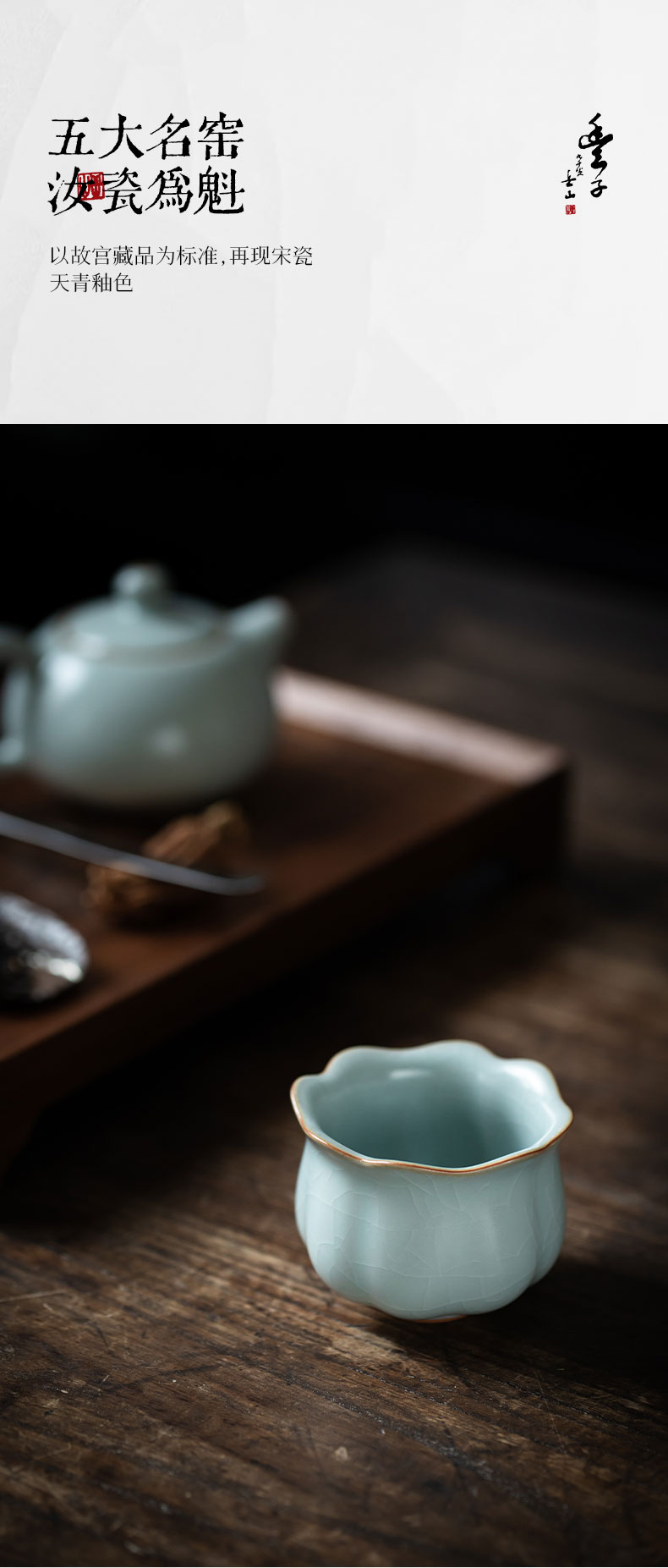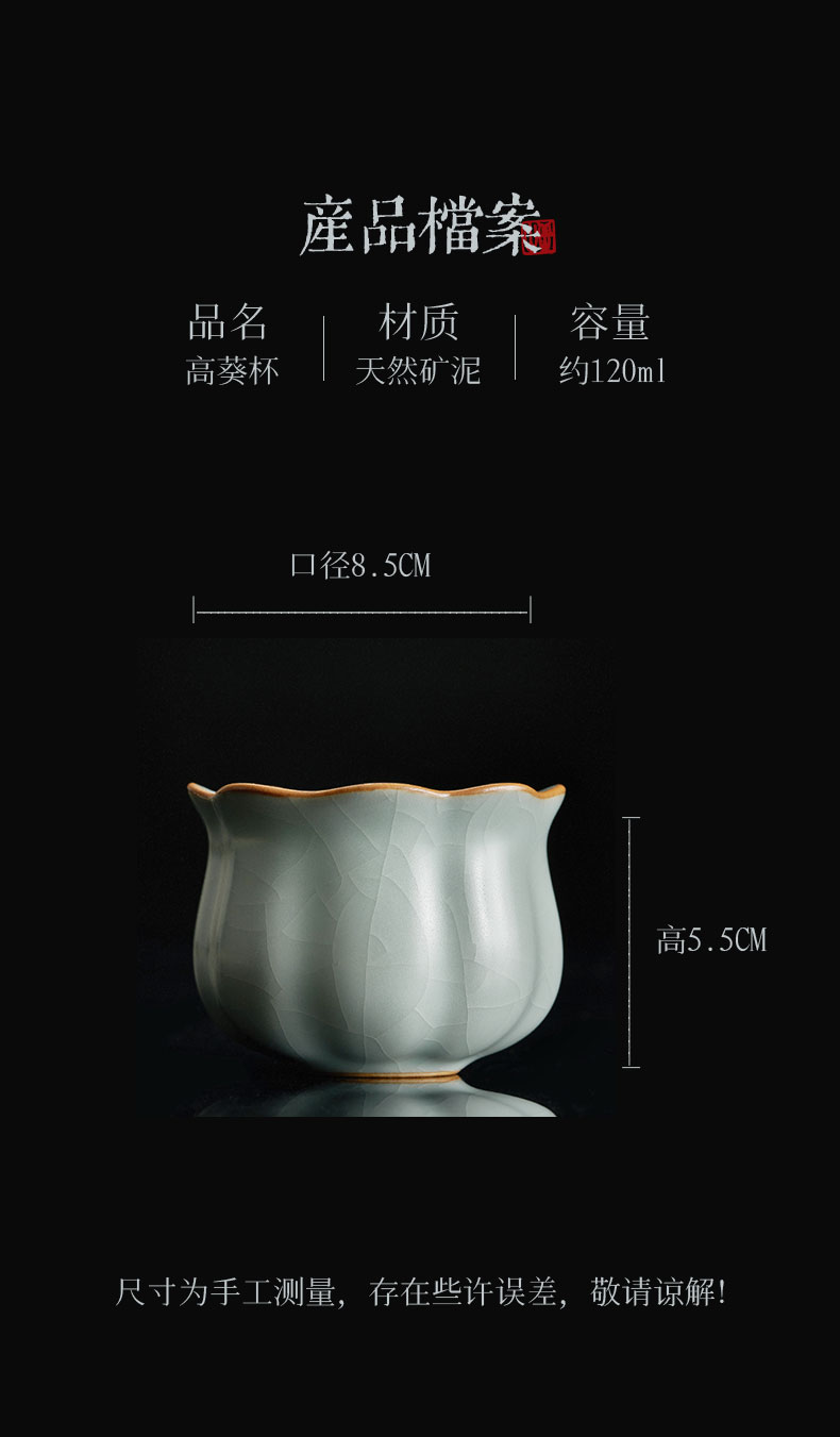 【丰子汝窑】【2019天青高葵杯】茶具茶杯天青汝瓷开片主人杯单杯品茗杯高葵杯