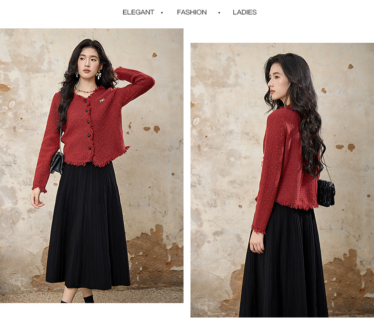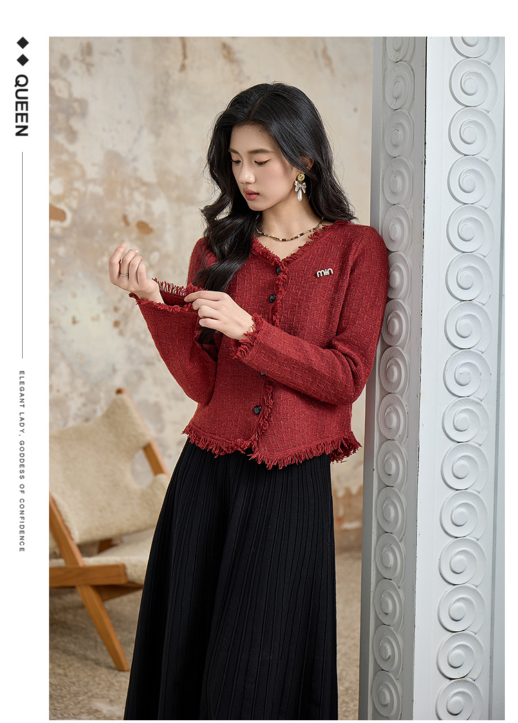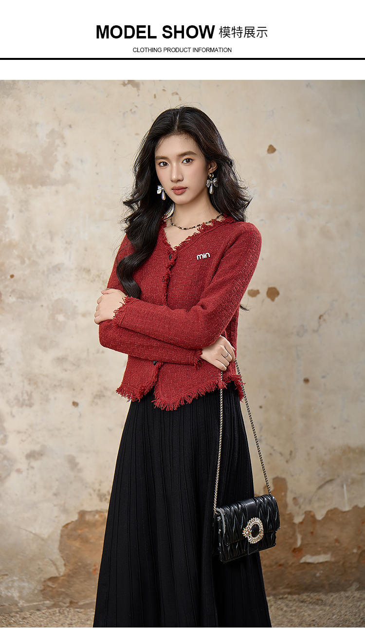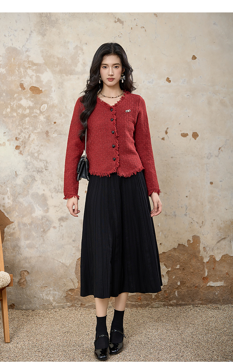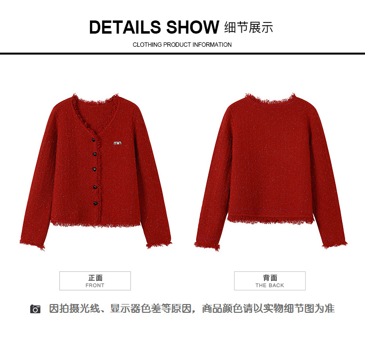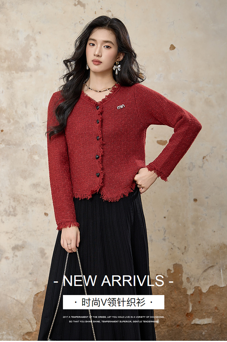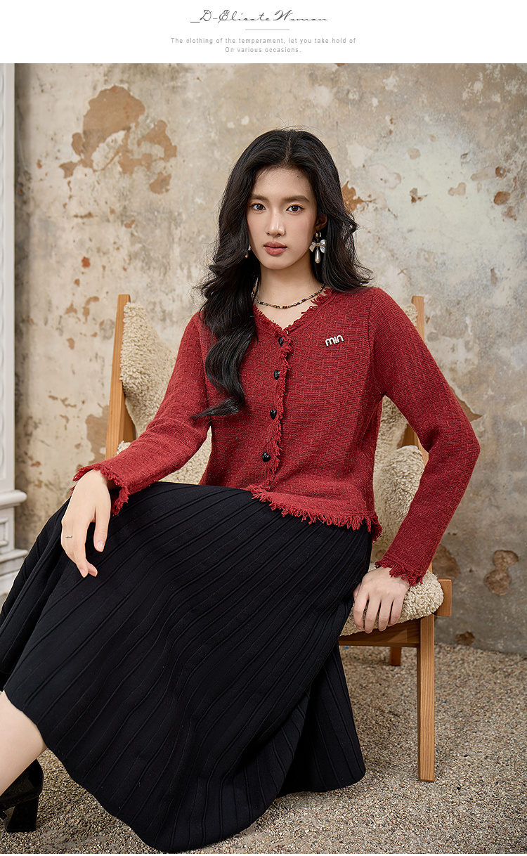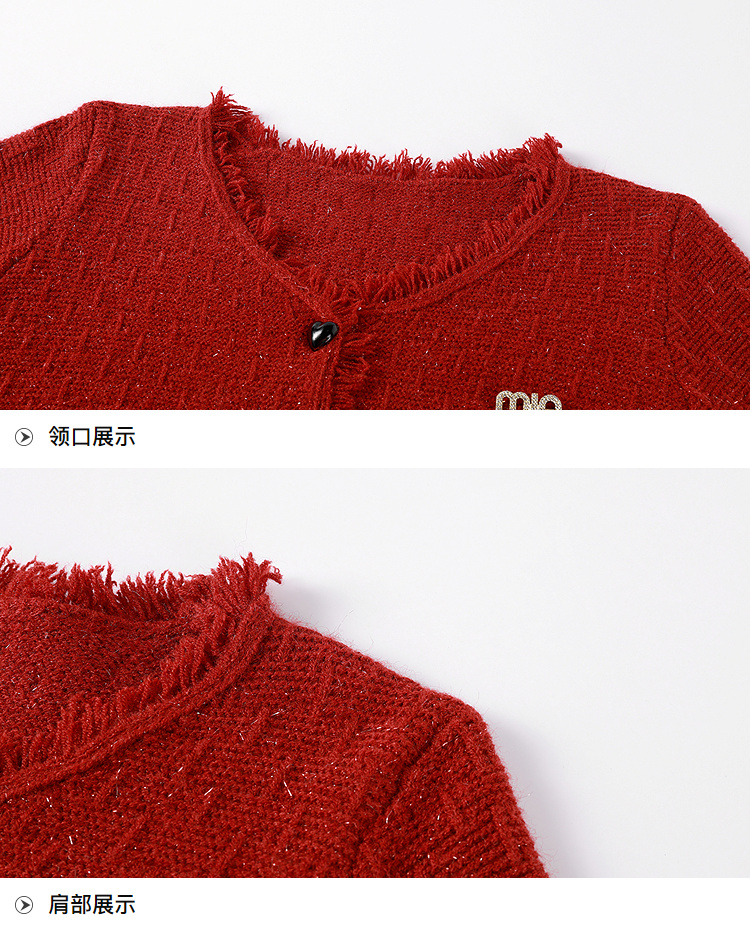 奢姿大码女装2025秋季粗花毛边V领针织衫胖妹妹min立体装饰上衣9853691001