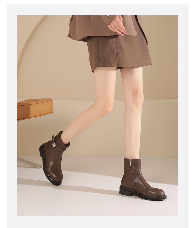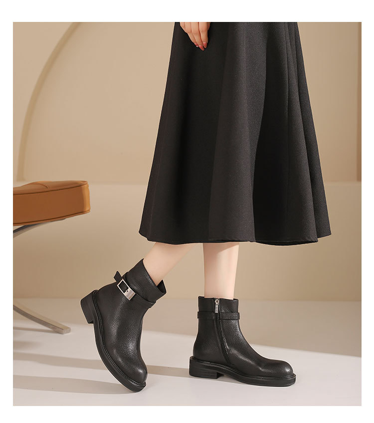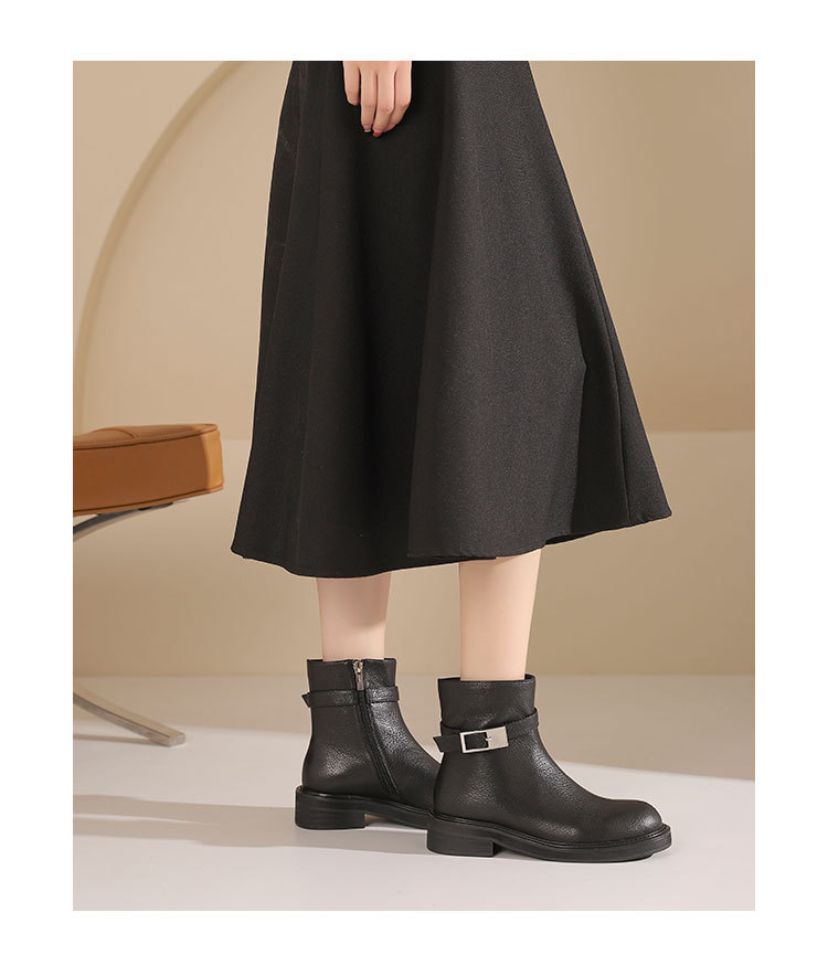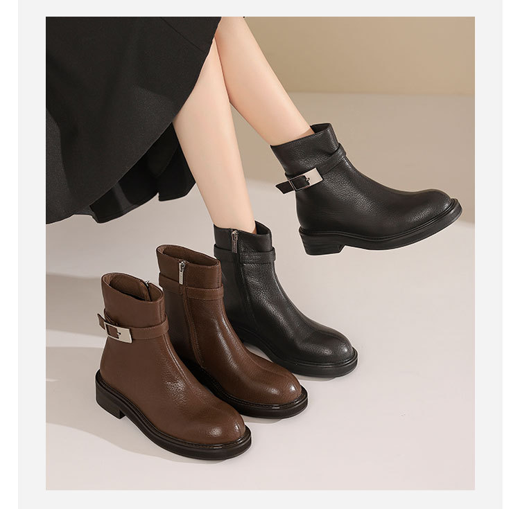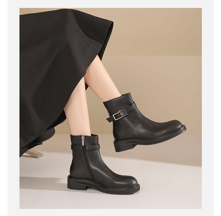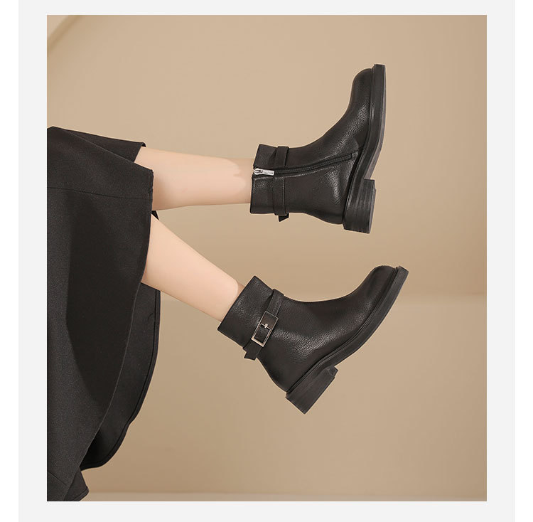 westory2024年秋冬新款优雅风平底粗跟百搭短靴切尔西S24DS84761