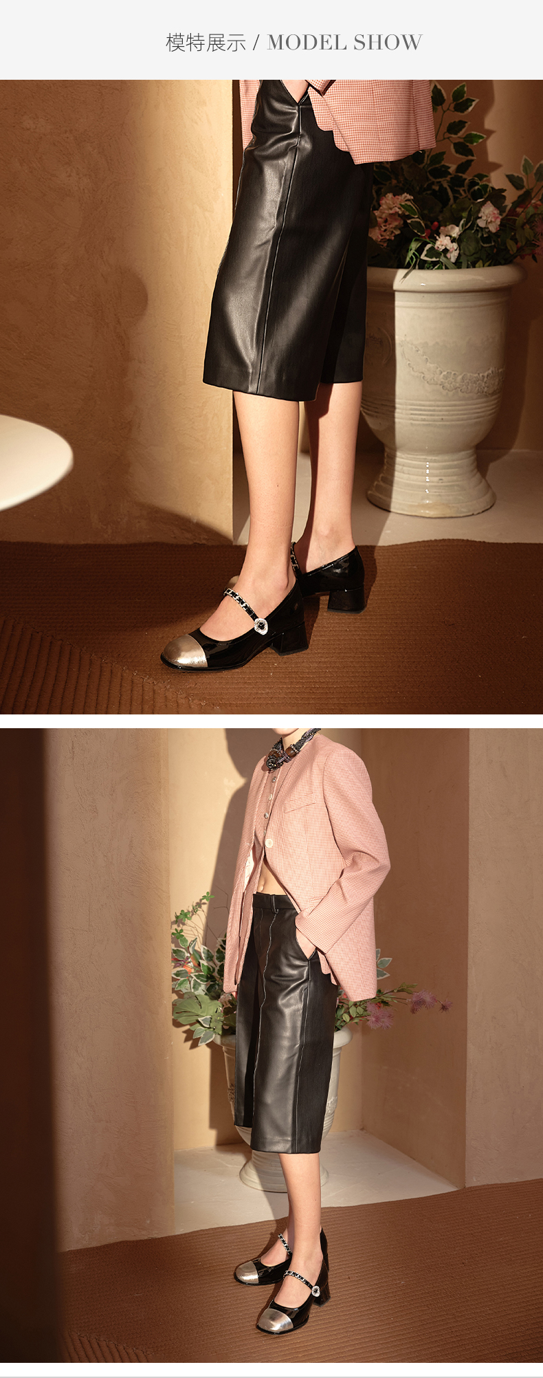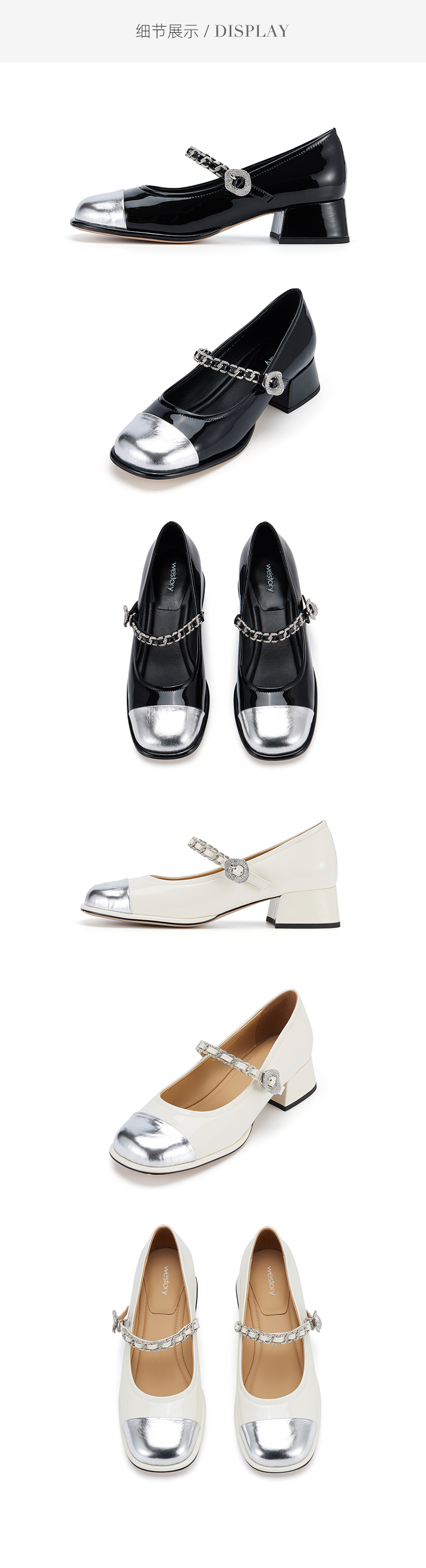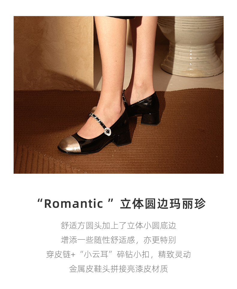 westory春季新款休闲小低跟金属头系带玛丽珍皮鞋W24AE56921