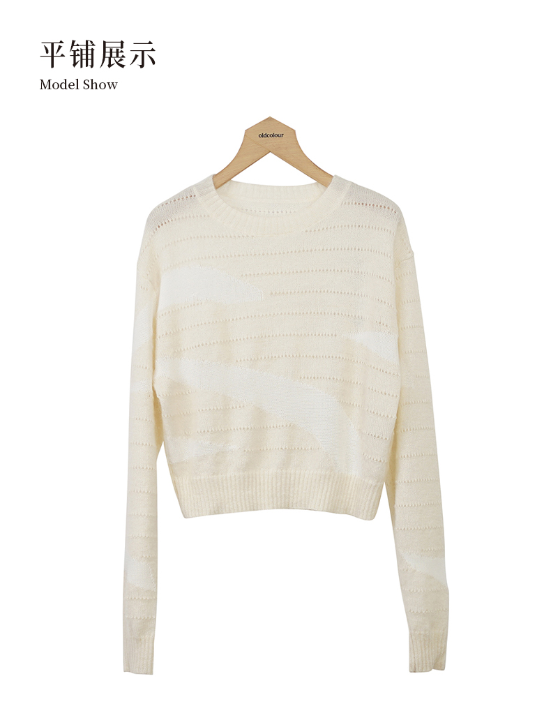 oldcolour设计感镂空针织衫秋季新款简约短款套头毛衣女O34052456