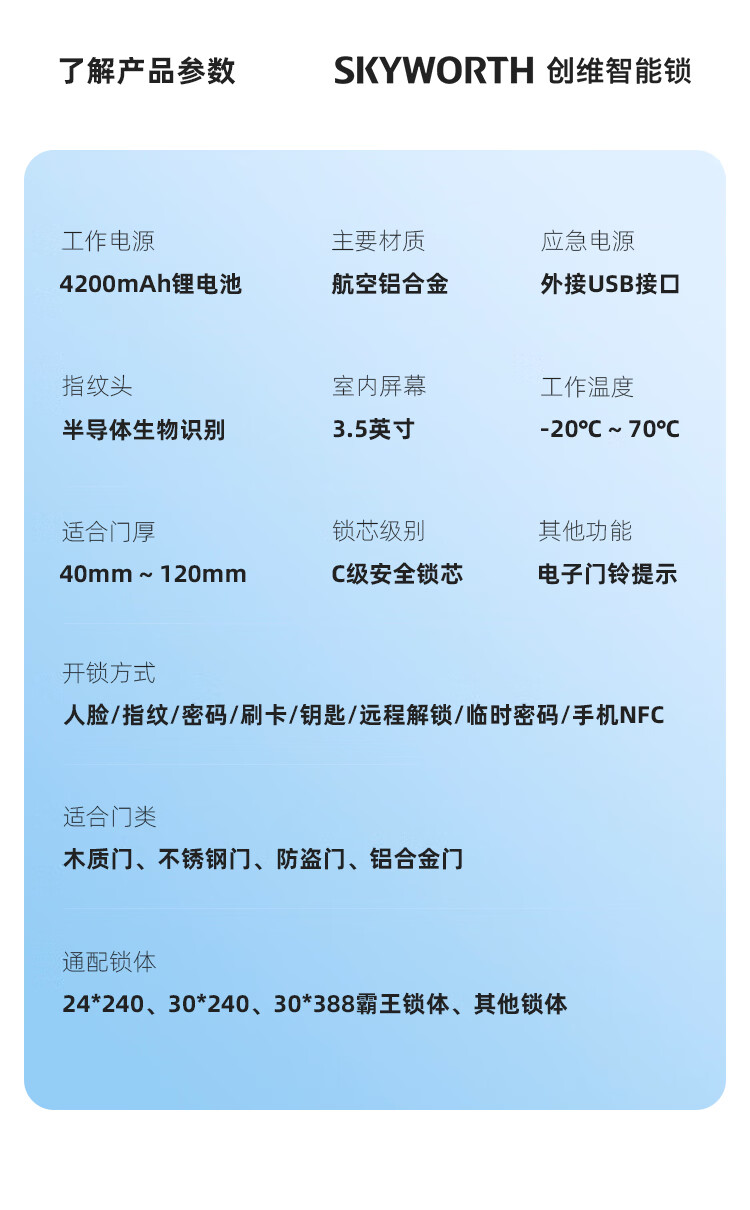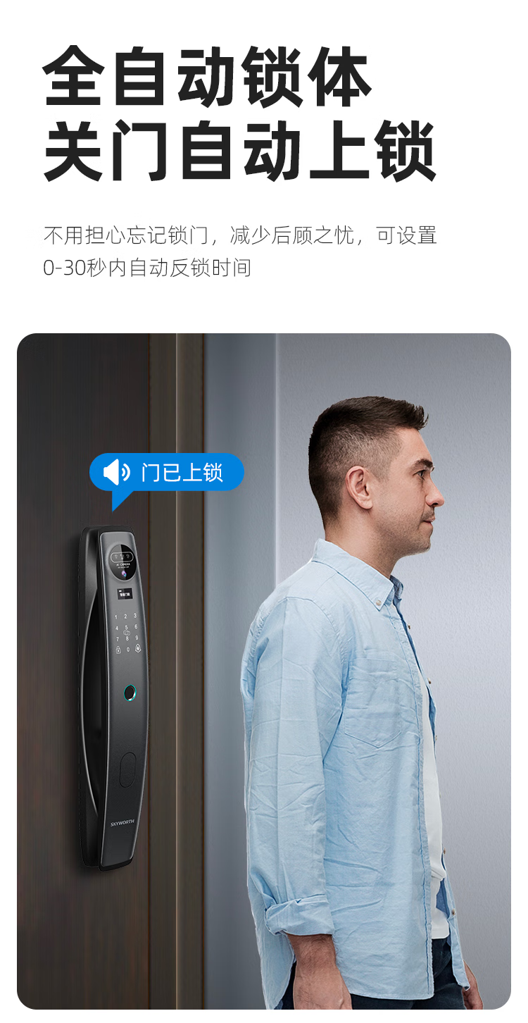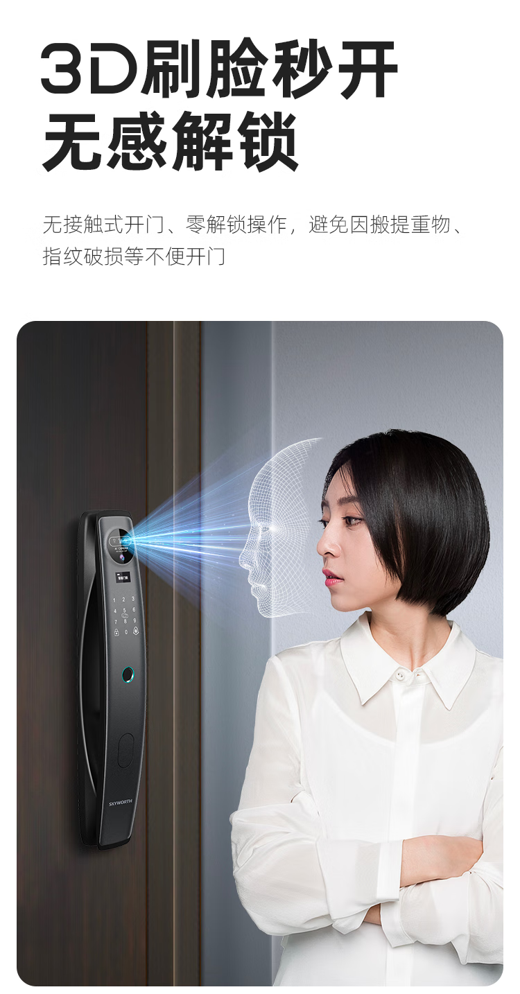 创维(Skyworth)创维智能锁人脸识别K30F全自动指纹锁密码锁电子锁人脸锁安全防盗 黑色