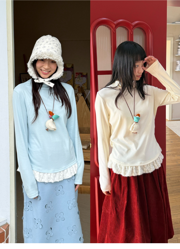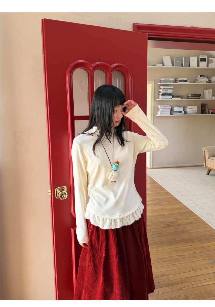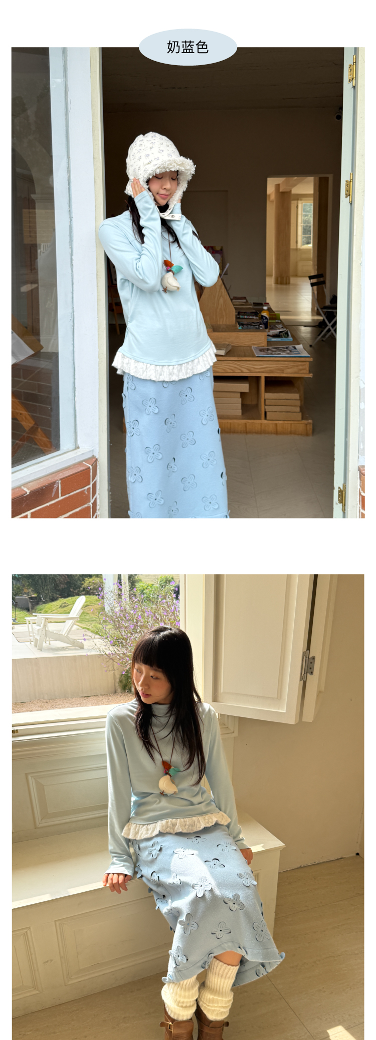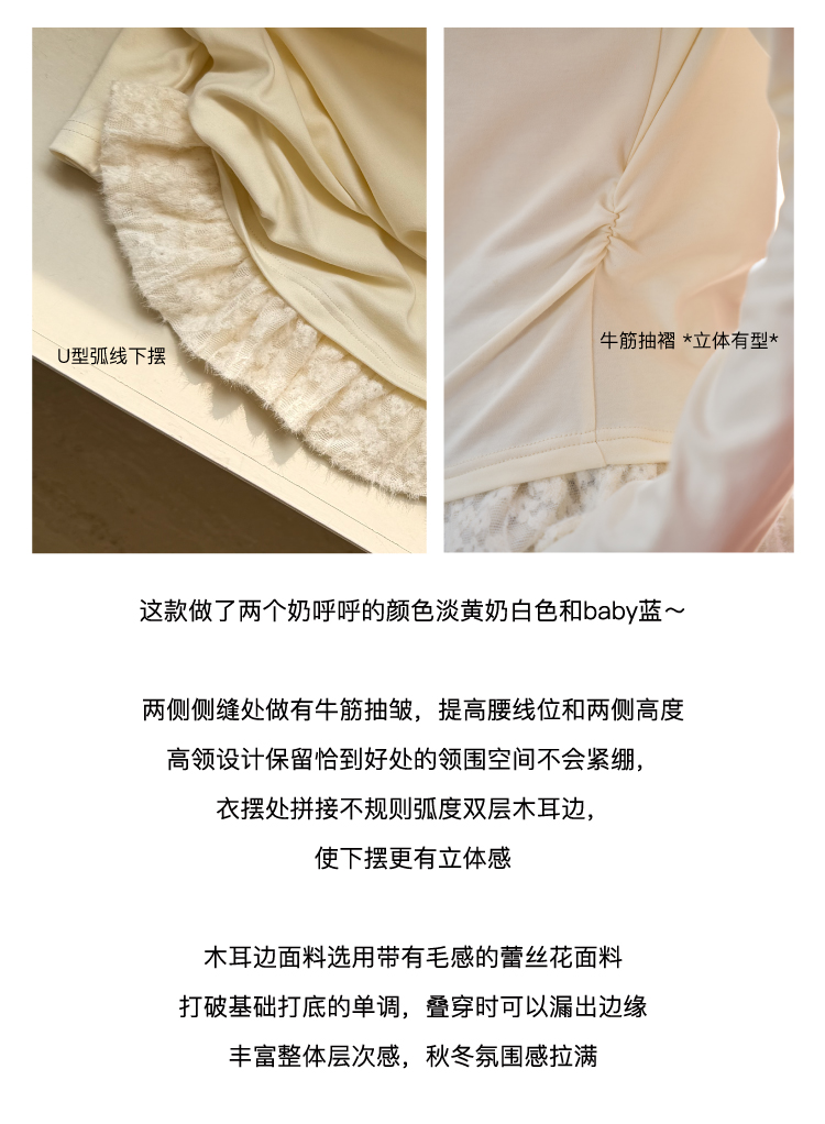 nothe Case布然/NC2548014/「松软雪花」高领拼接弧形下摆打底长袖