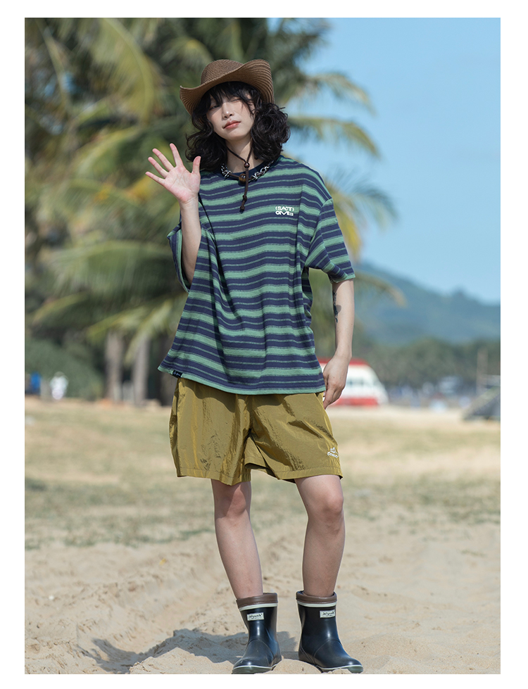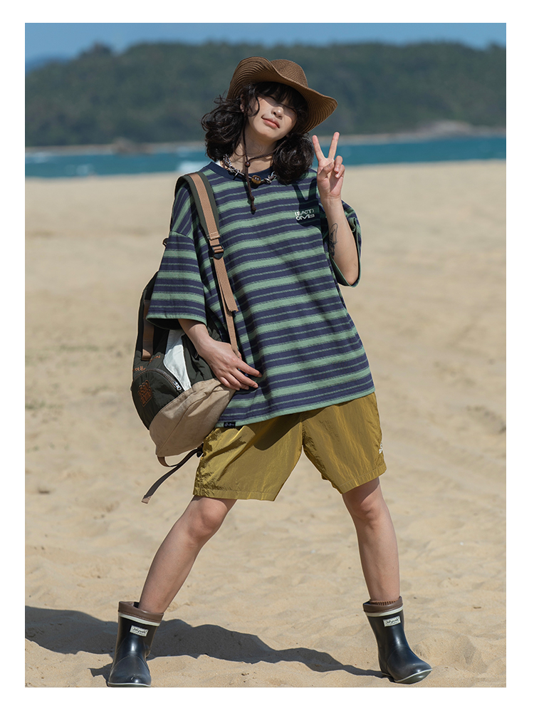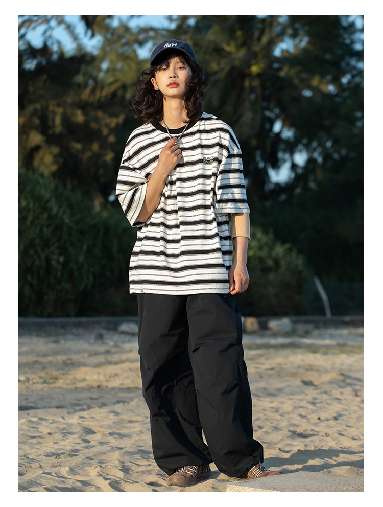 早乙女惠子saotome/STMDX240202/条纹logo印花短袖T恤