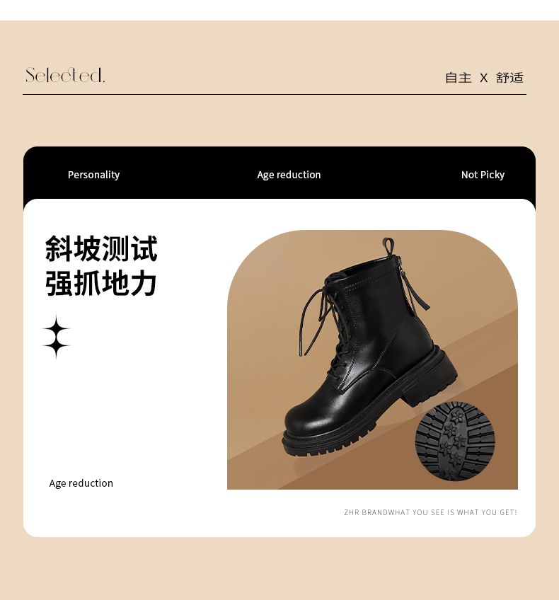 ZHR则则时尚甜酷经典马丁靴短靴女2024新款百搭复古靴子简约女鞋