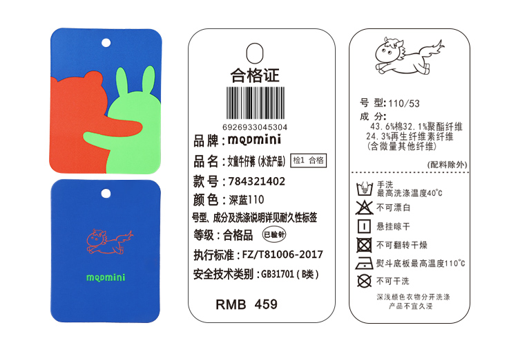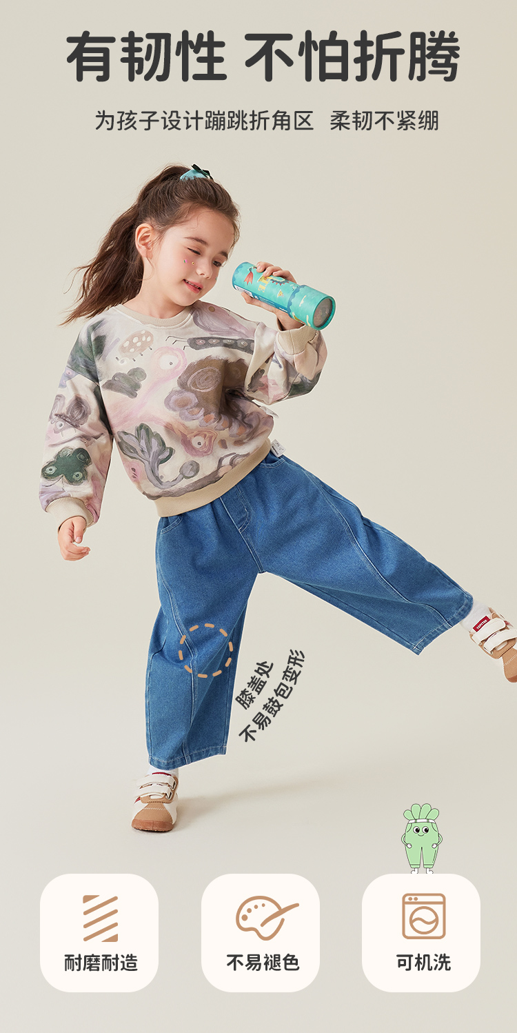 【110-140】【MQDmini】男女童春秋牛仔裤耐磨水洗长裤