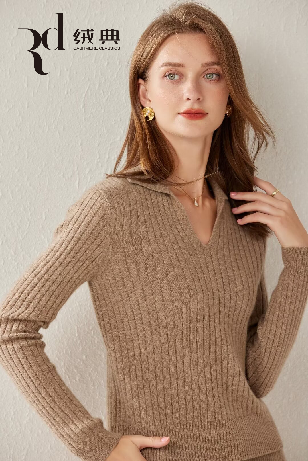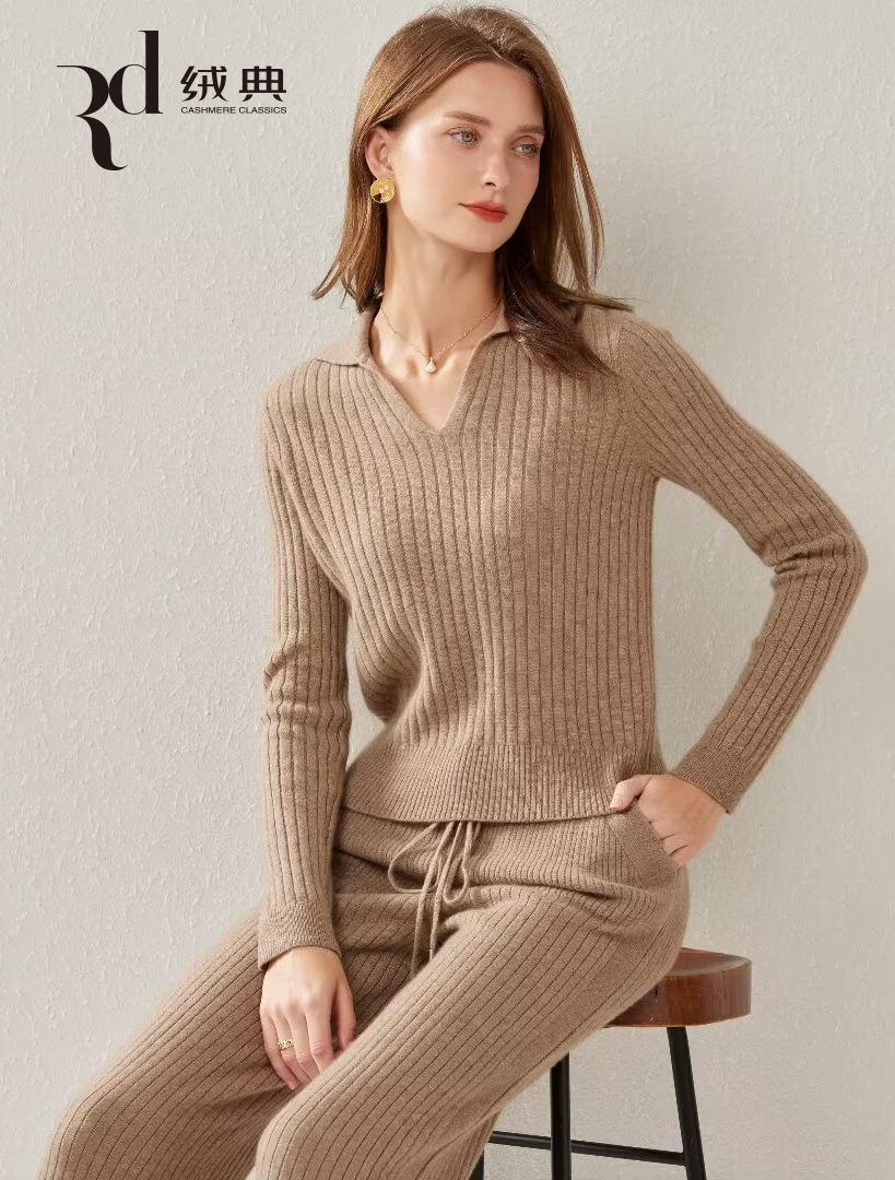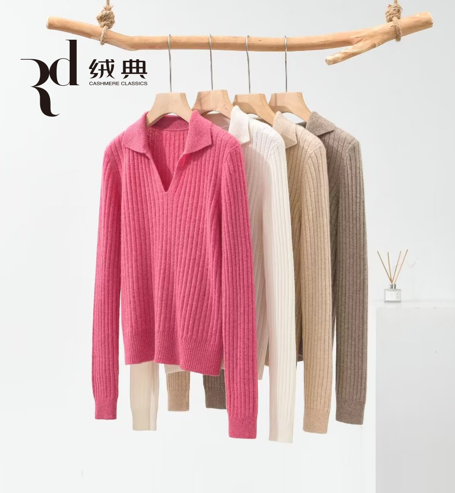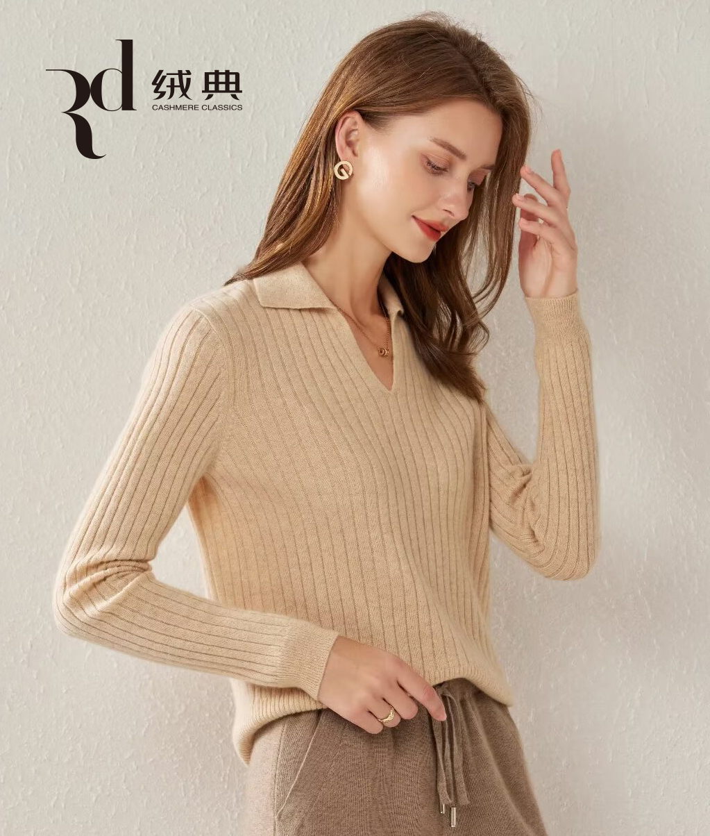 绒典小翻领抽条女套衫