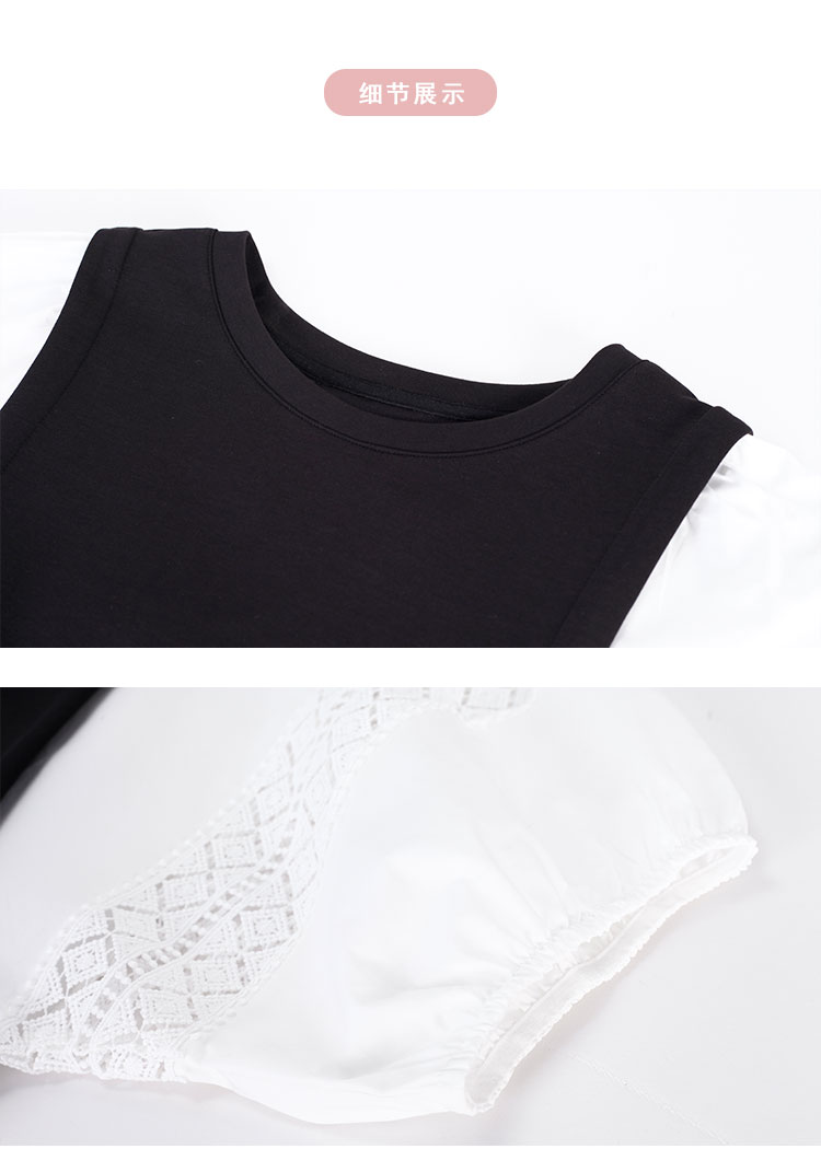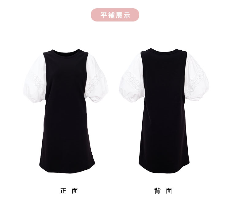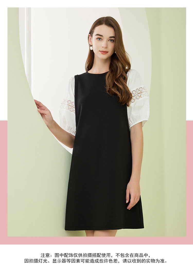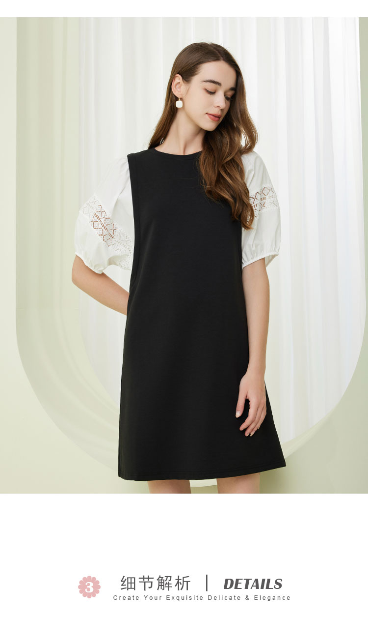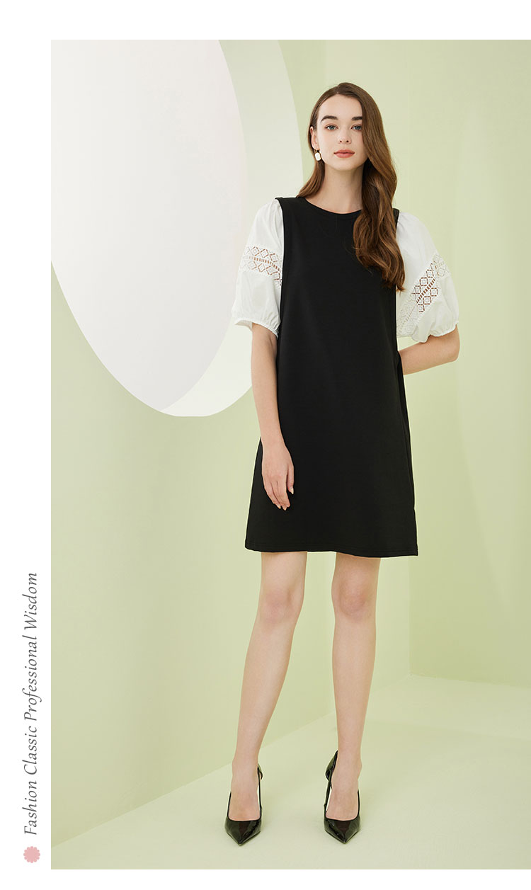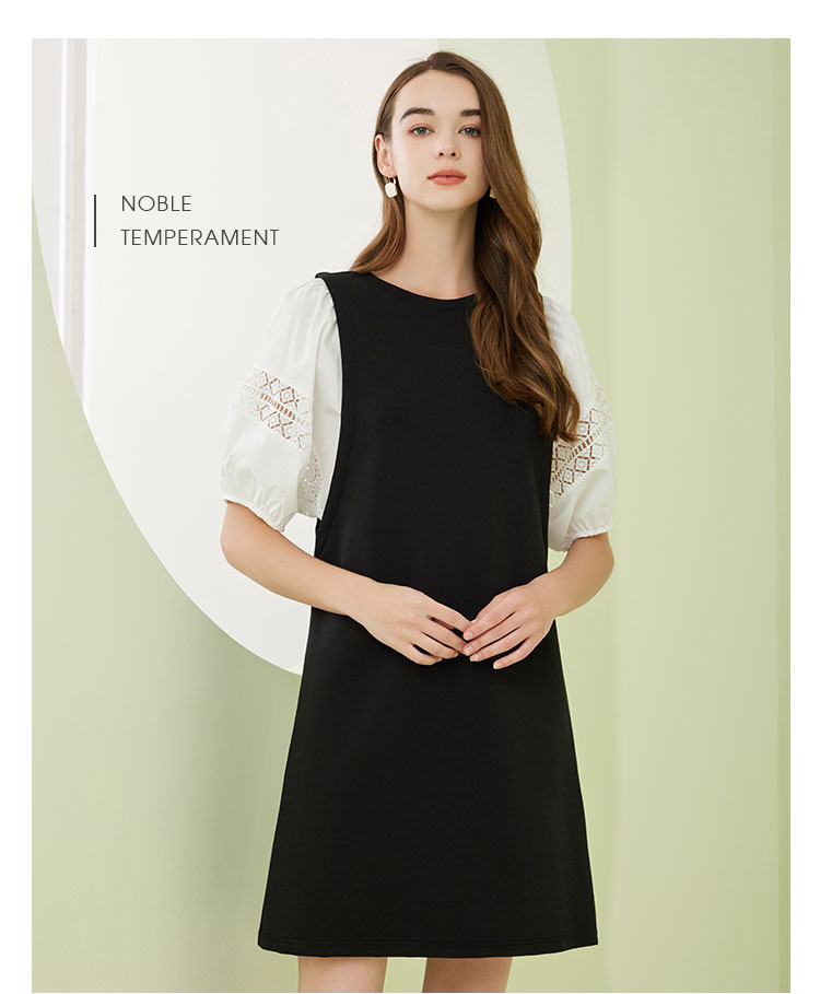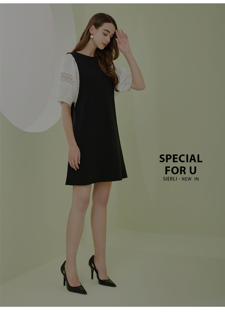 NF8X6斯尔丽瑟俪2023春夏新款简约通勤直筒群大灯笼袖圆领中长连衣裙