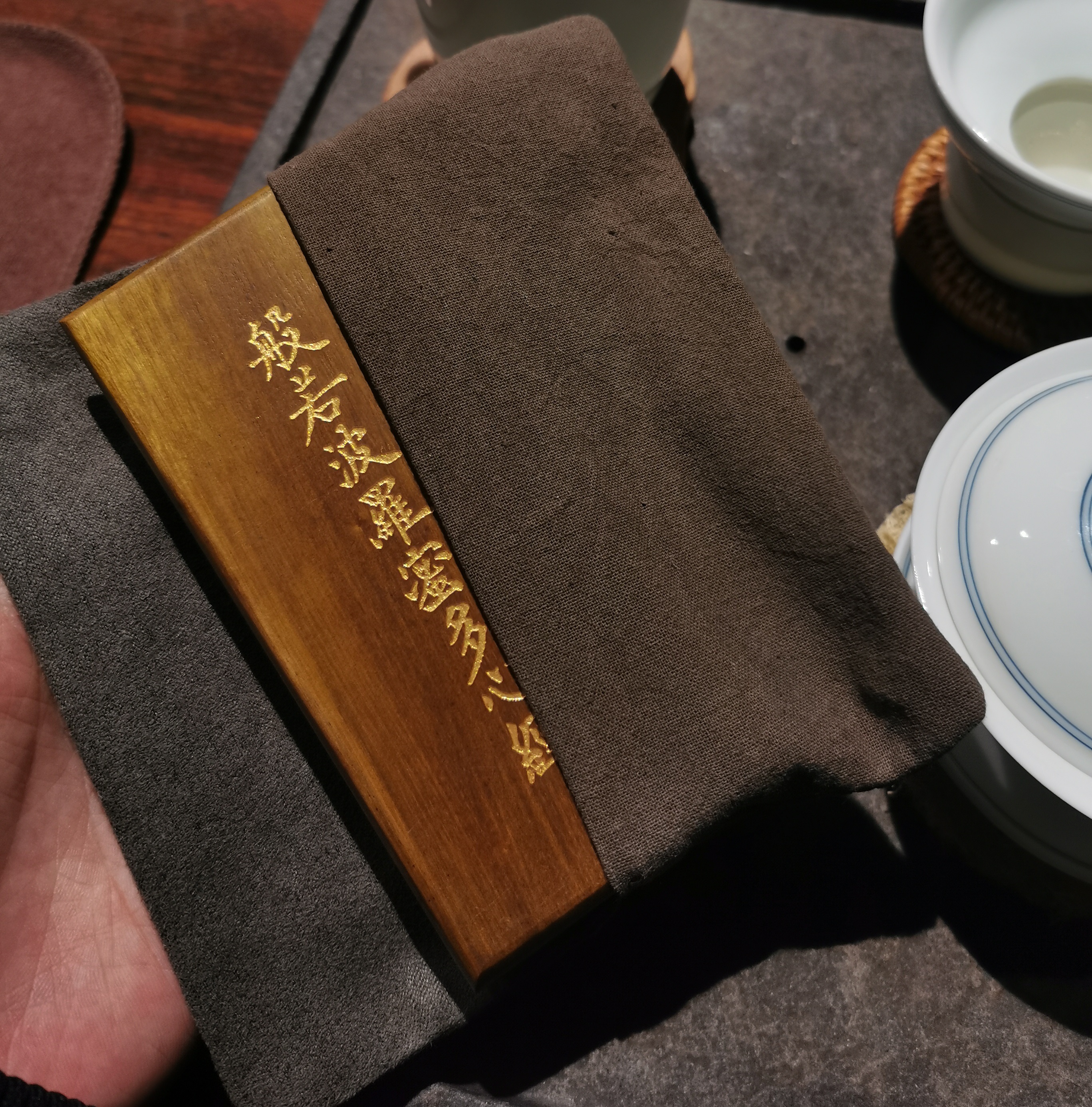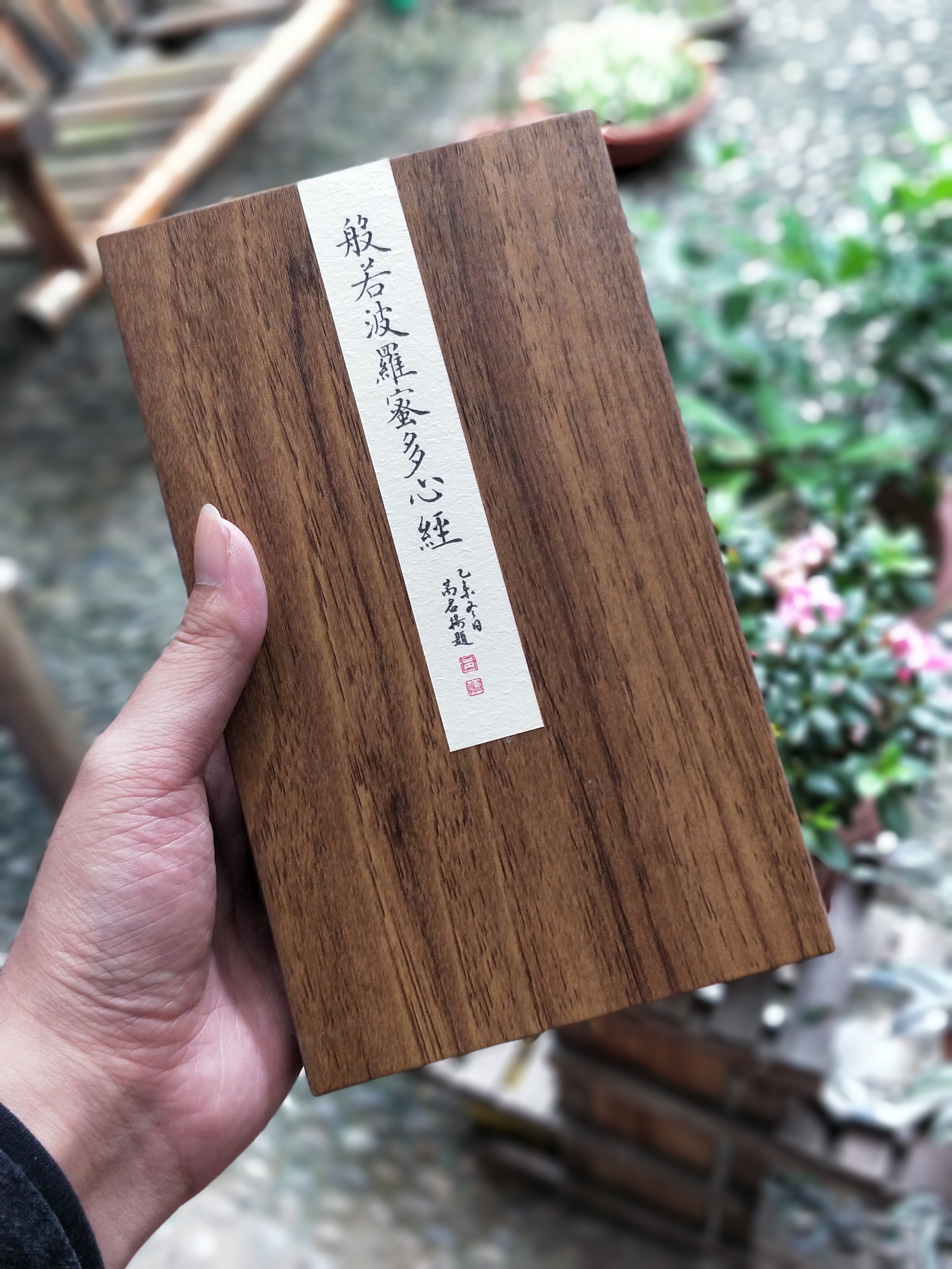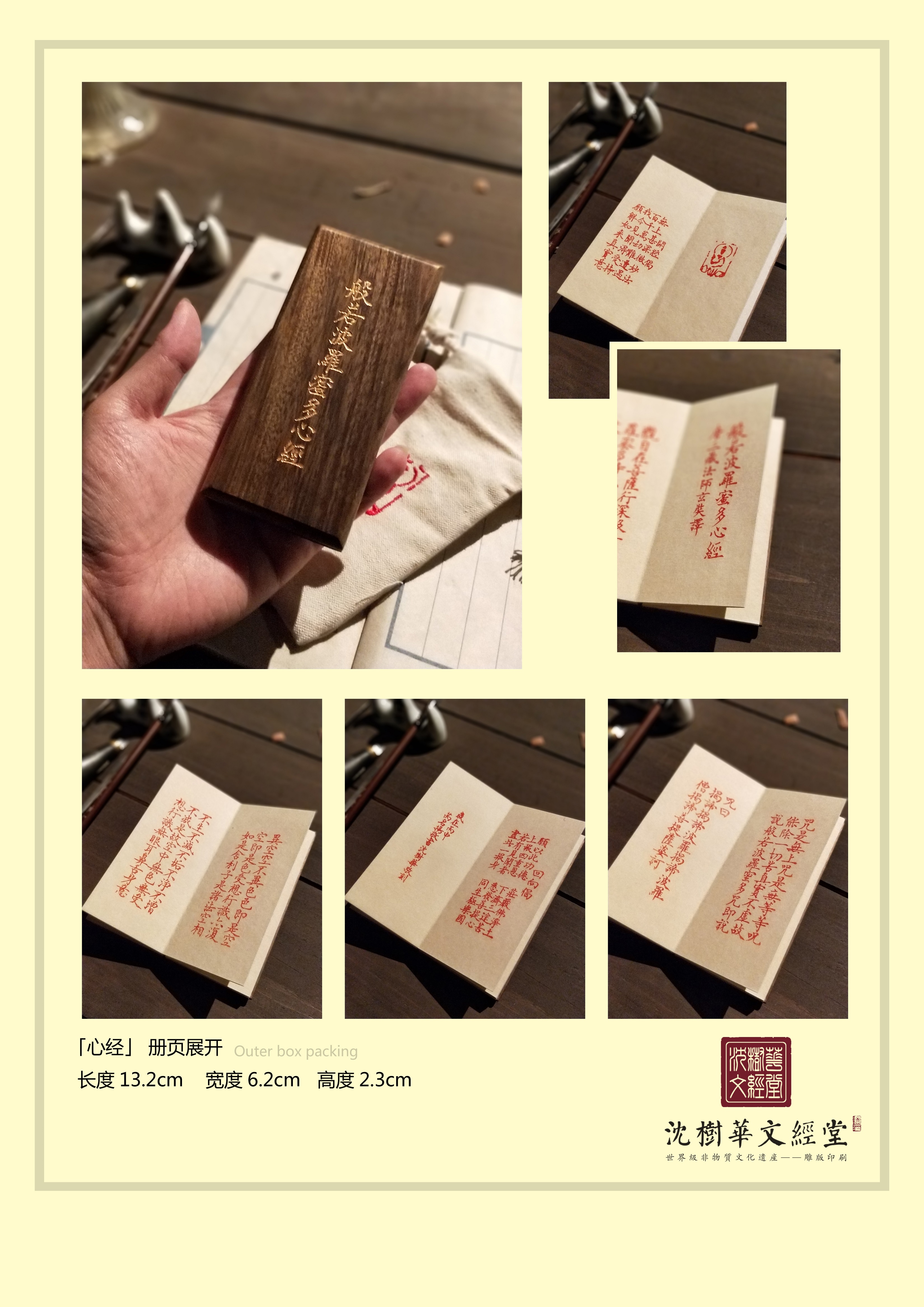 木刻丨《心经》沈树华老师亲工,日本矿物朱砂印制,小叶桢楠面板,手工亚麻布袋(下单后7日内发货)
