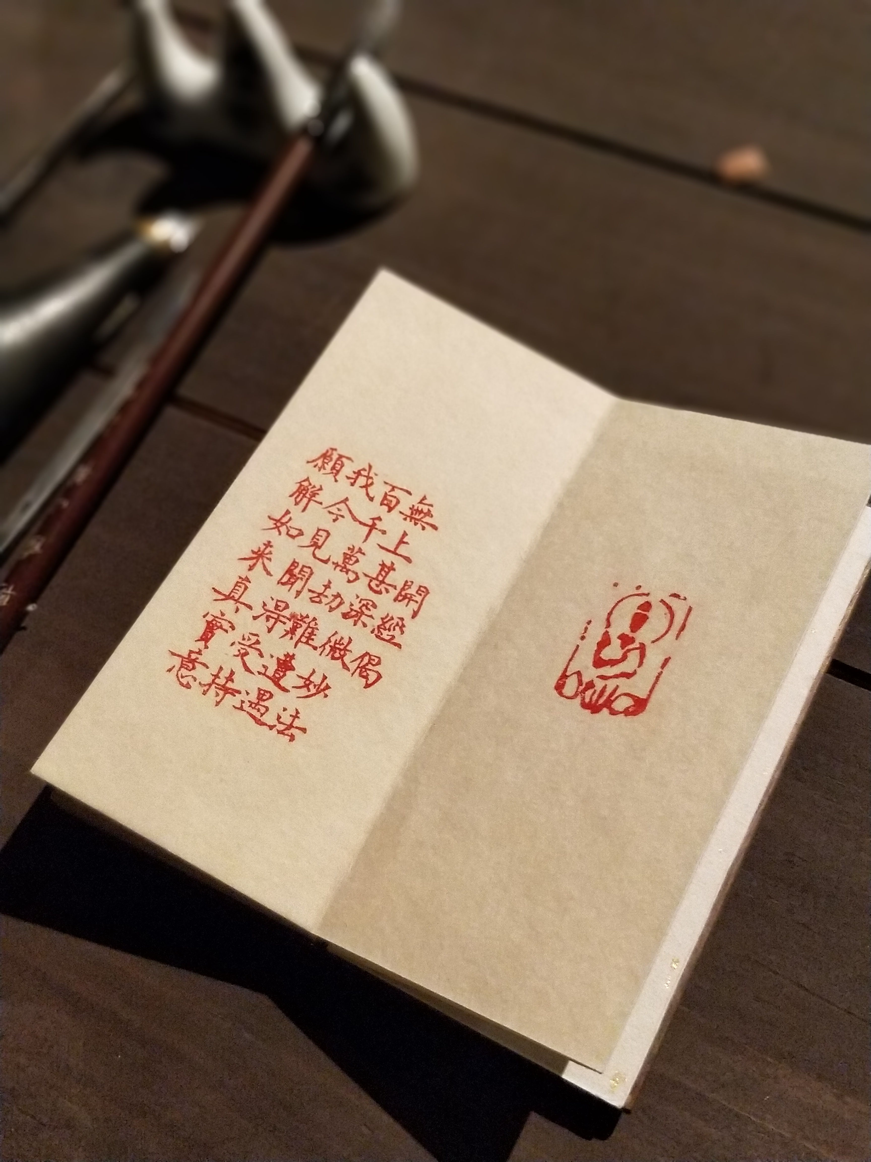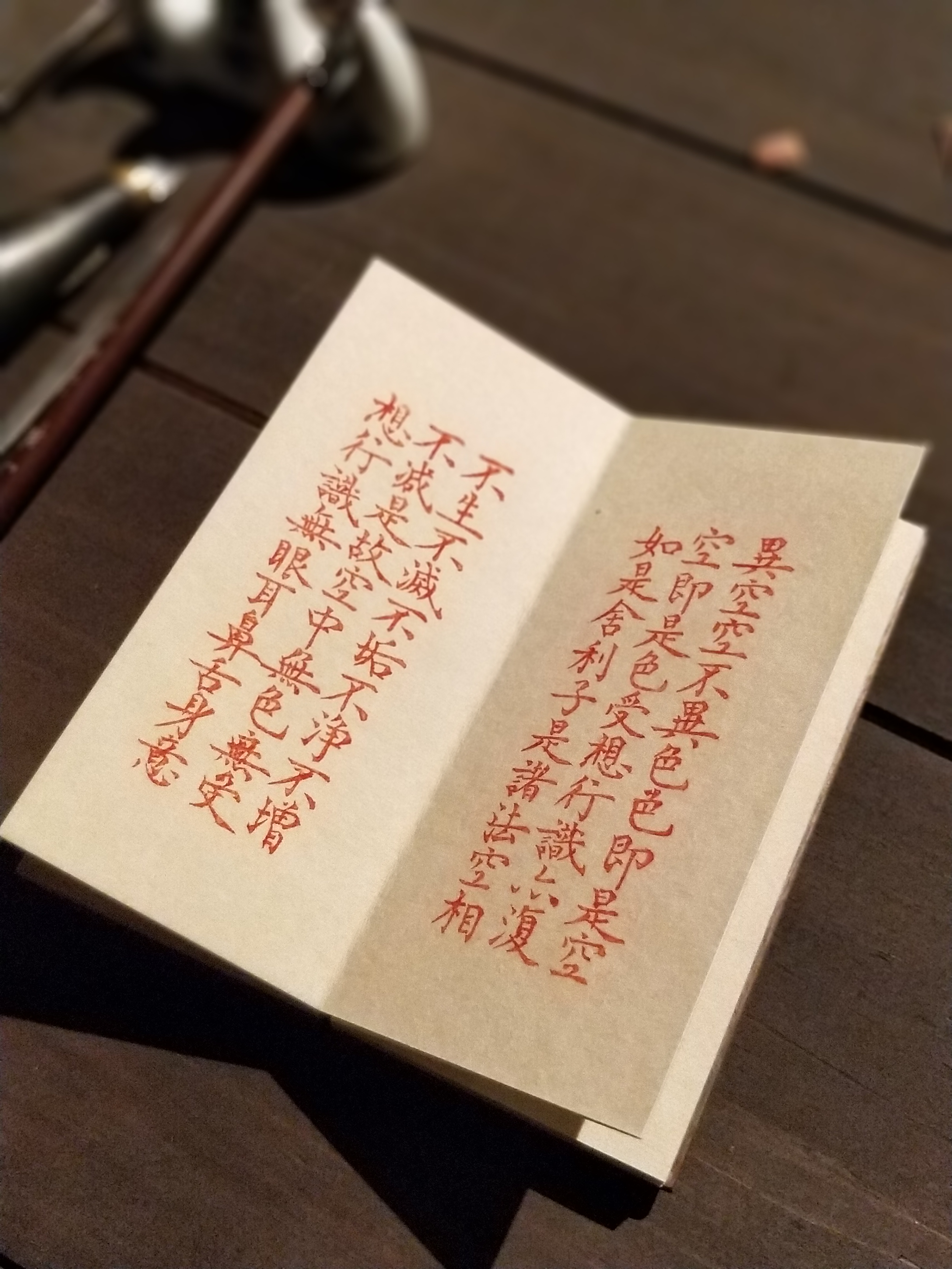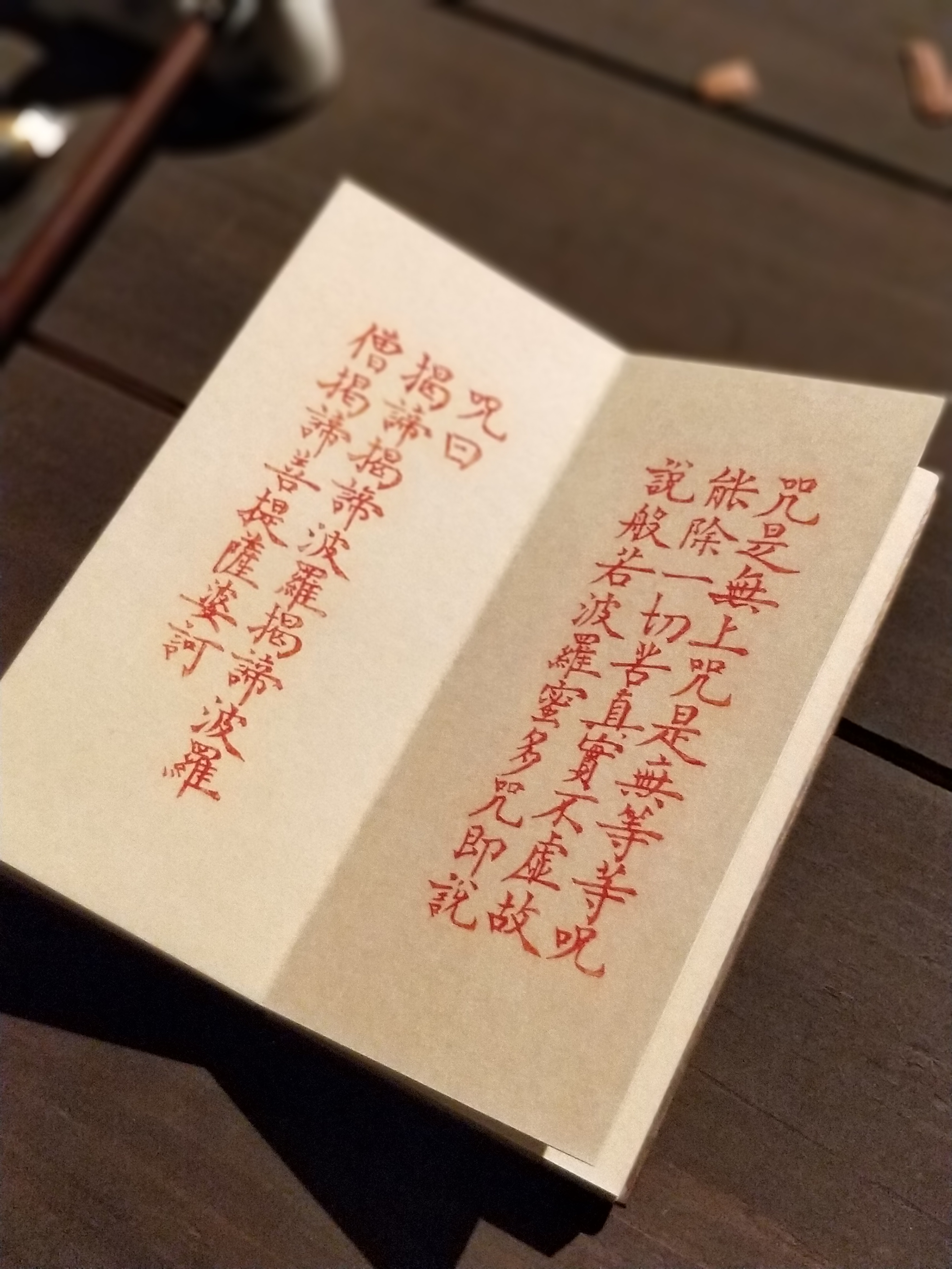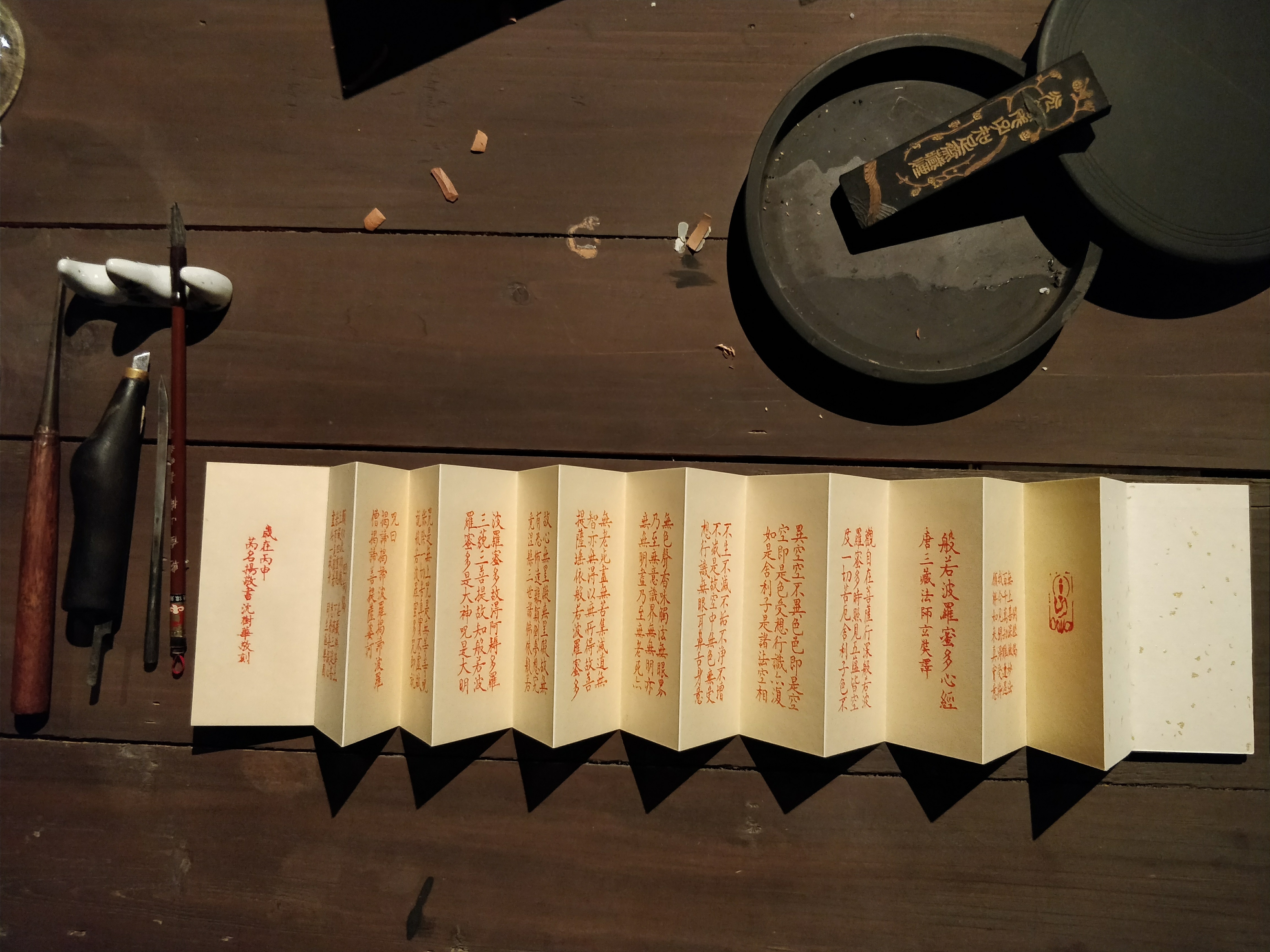 木刻丨《心经》沈树华老师亲工,日本矿物朱砂印制,小叶桢楠面板,手工亚麻布袋(下单后7日内发货)