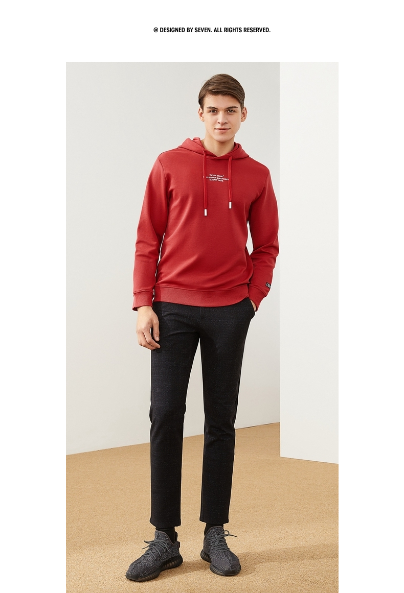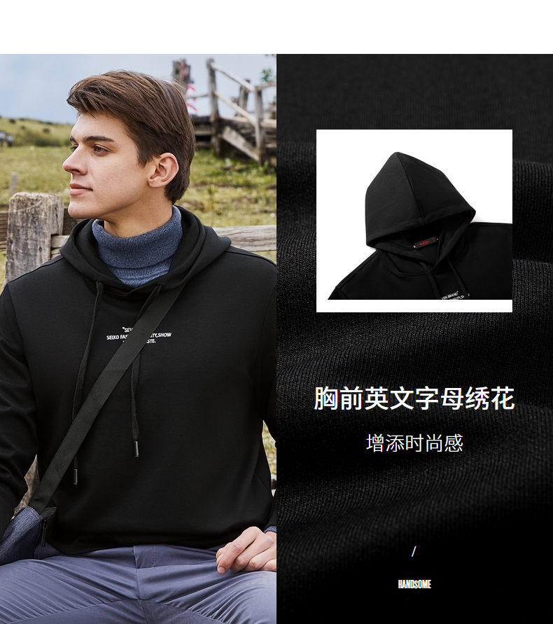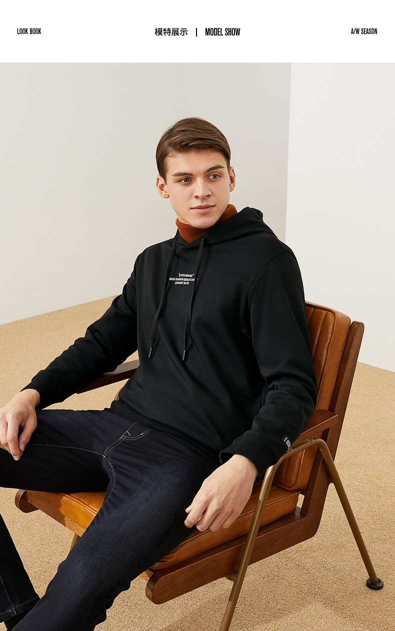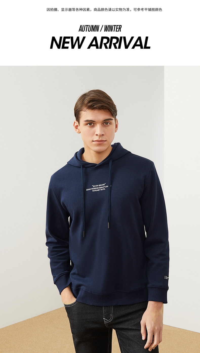 柒牌连帽卫衣男秋冬新款青年运动休闲字母绣花长袖T恤帽衫衣 121W70630