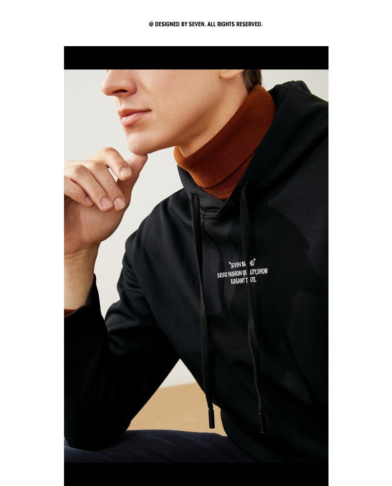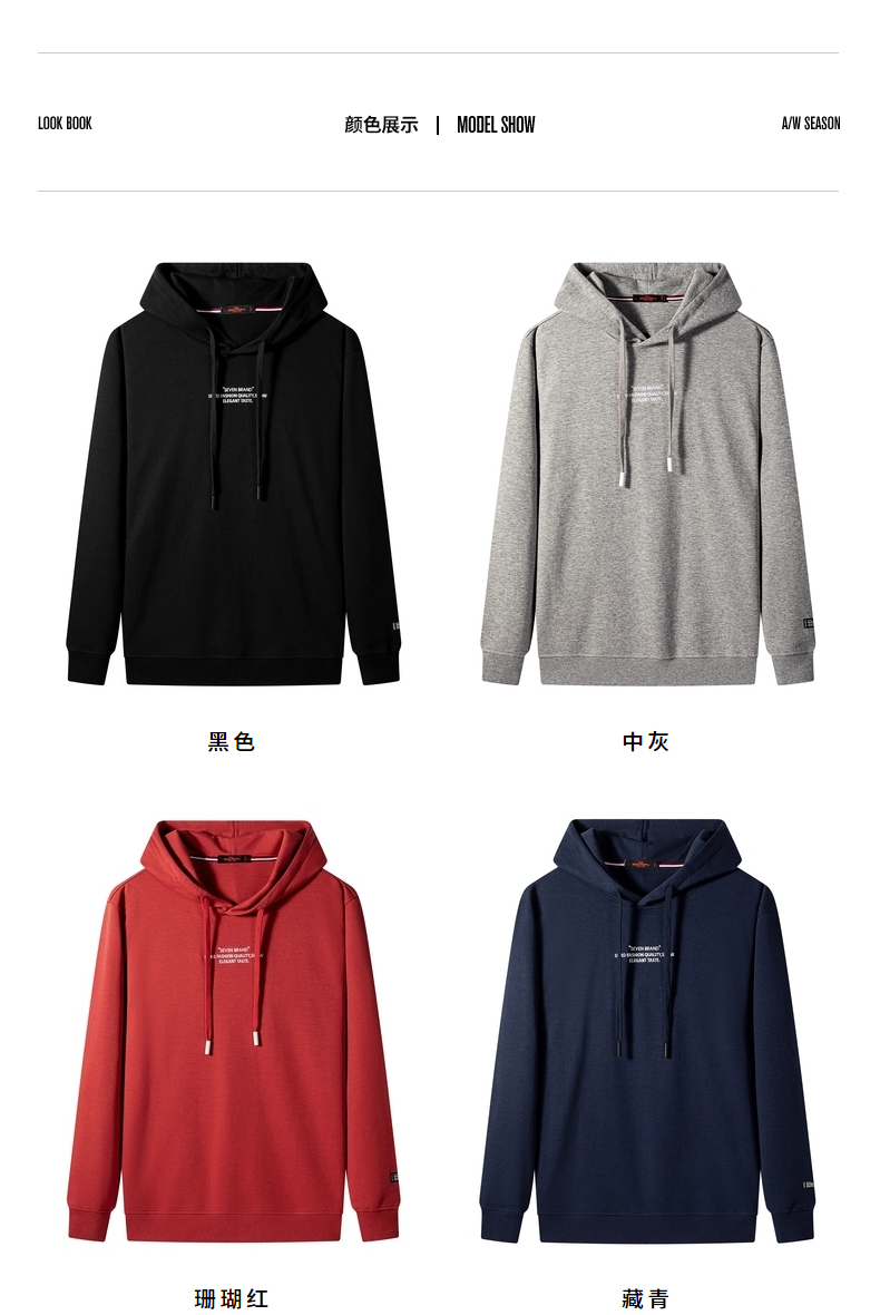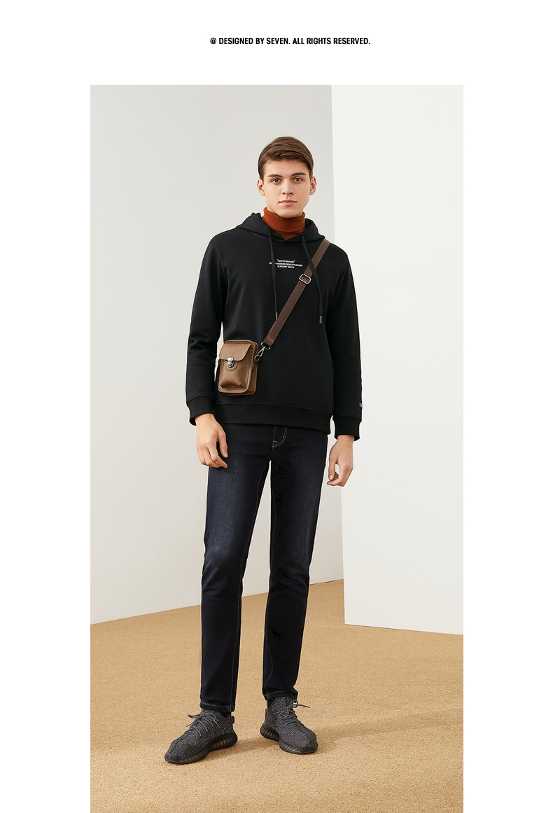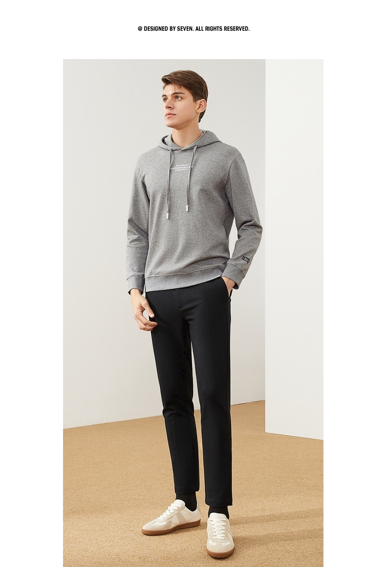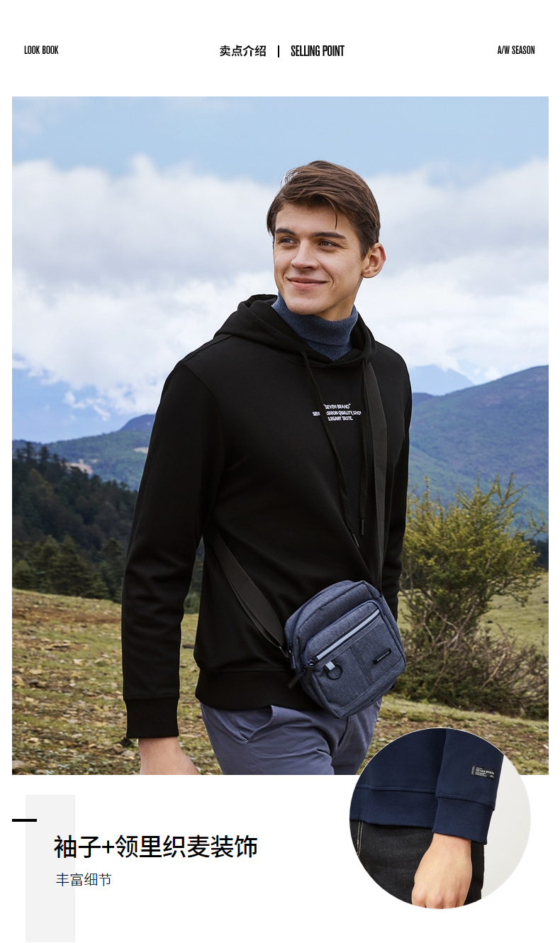 柒牌连帽卫衣男秋冬新款青年运动休闲字母绣花长袖T恤帽衫衣 121W70630