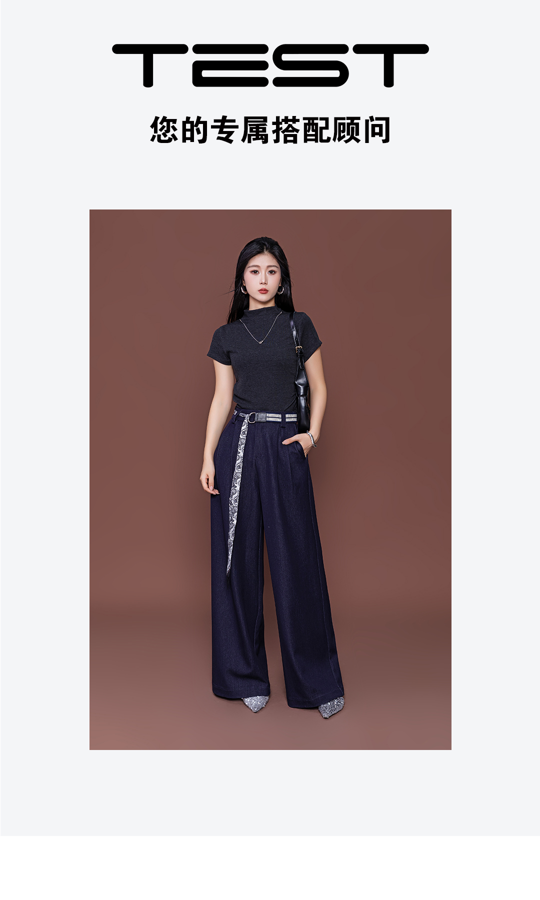 秋上新阔腿版型藏蓝色个性腰带装饰牛仔裤3253022 商品图2