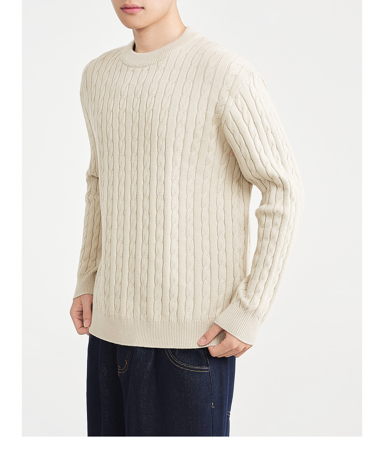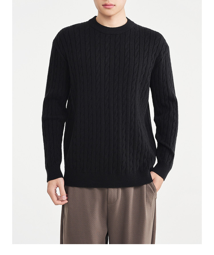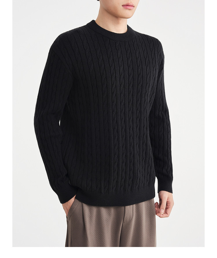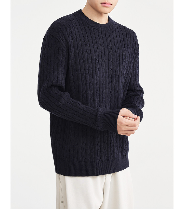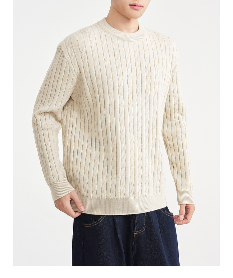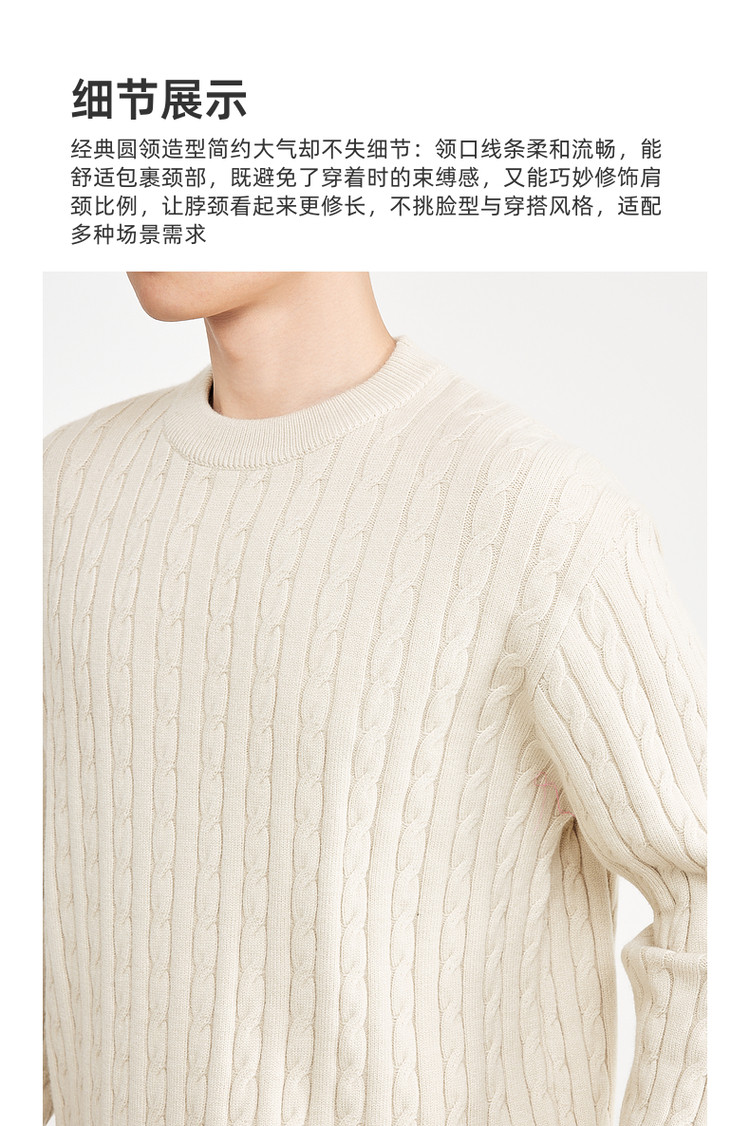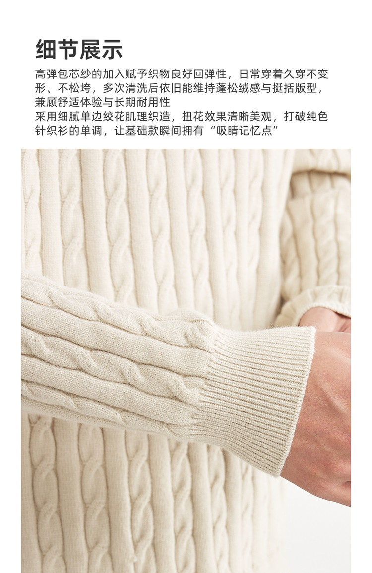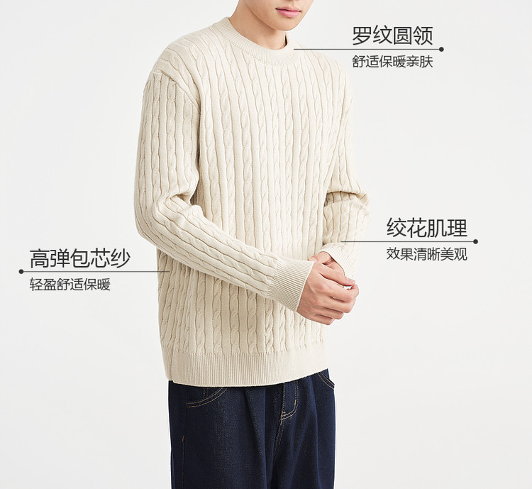 墨麦客男装2025年冬季新款单边绞花套头针织衫男士宽松落肩打底衫