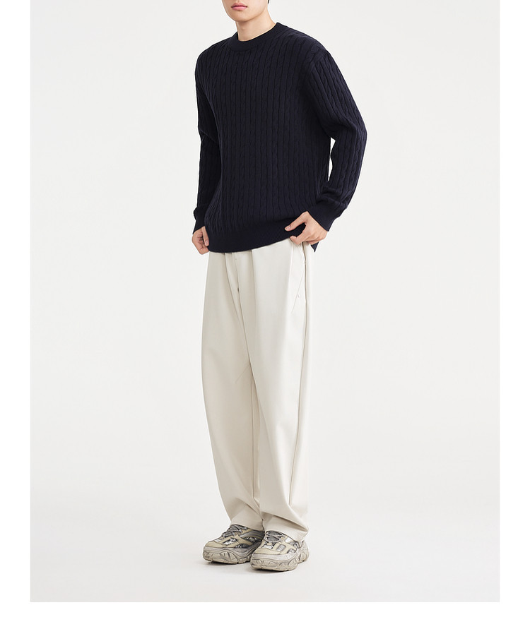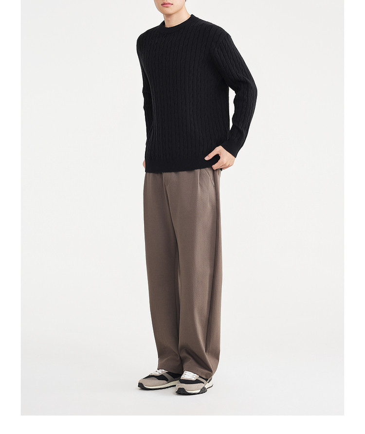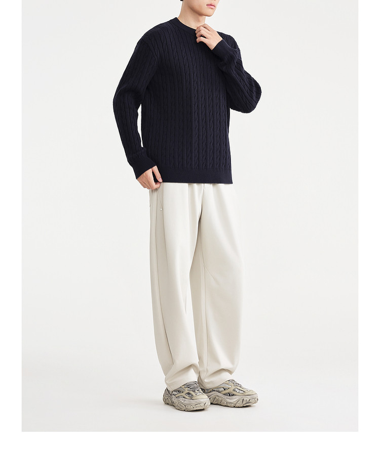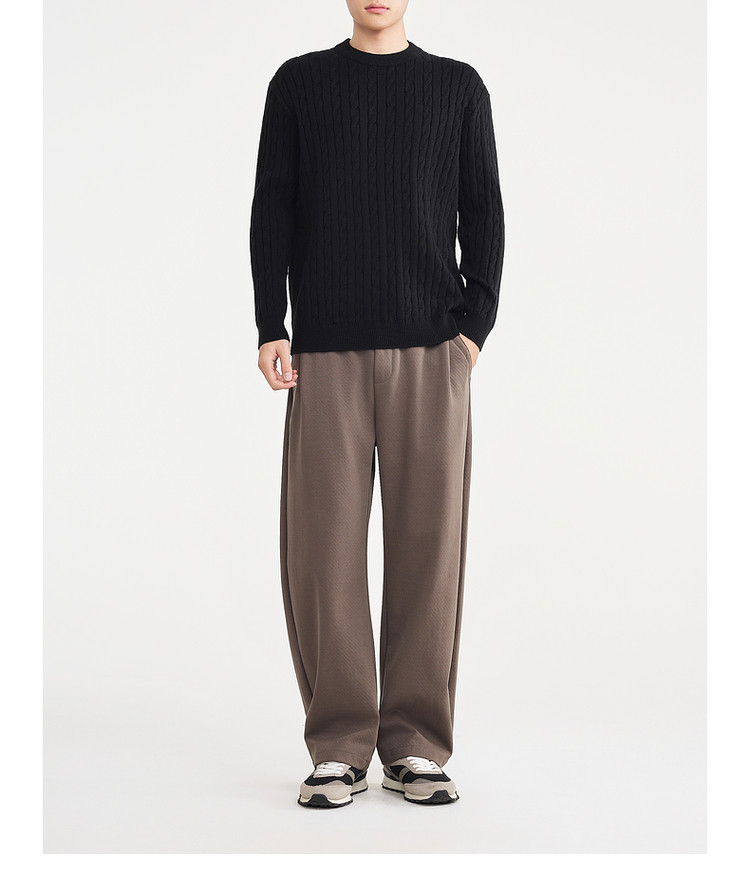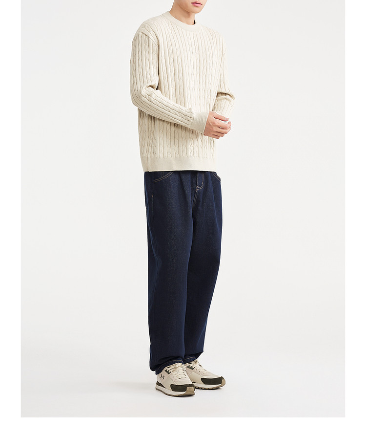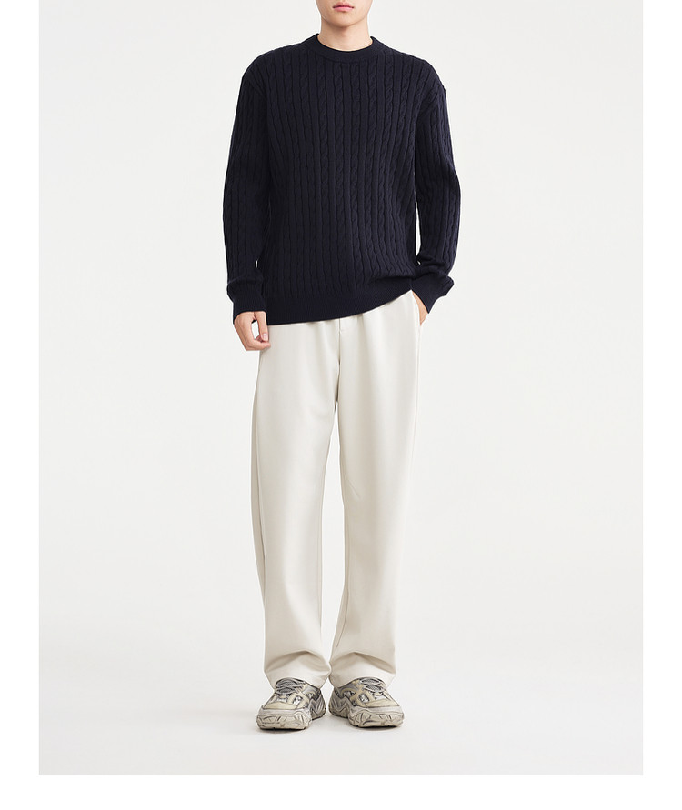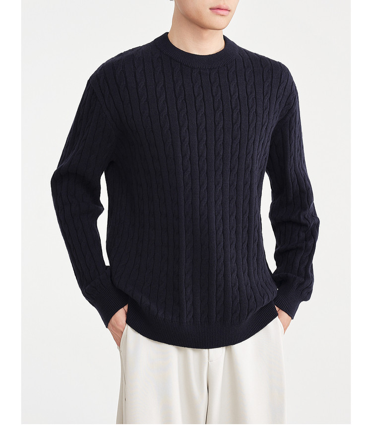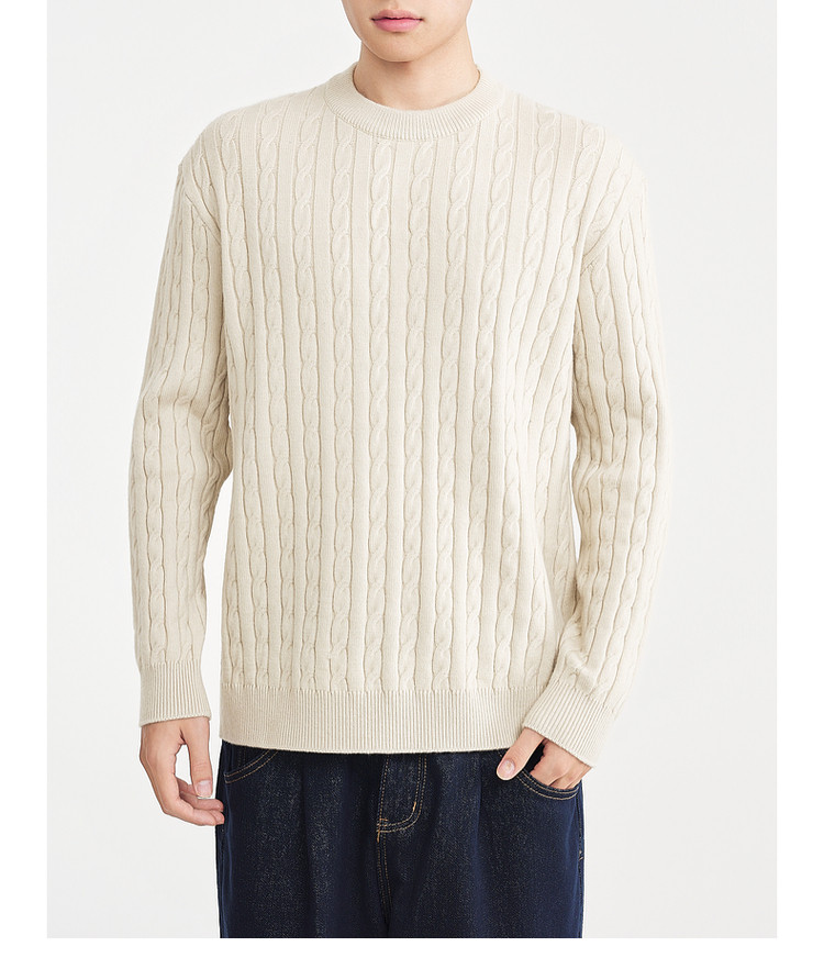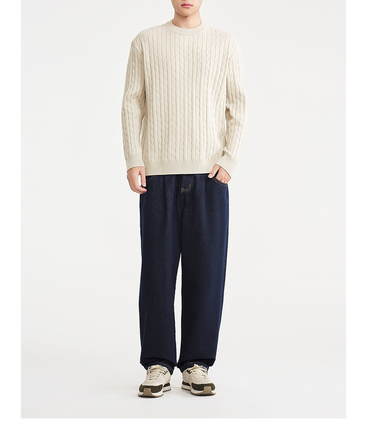 墨麦客男装2025年冬季新款单边绞花套头针织衫男士宽松落肩打底衫