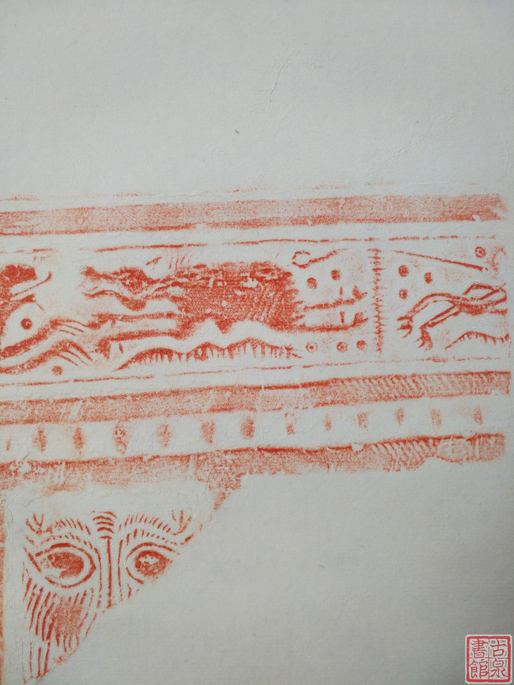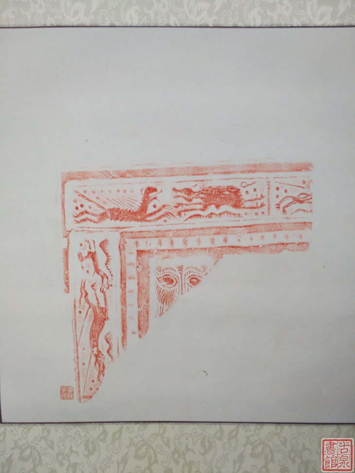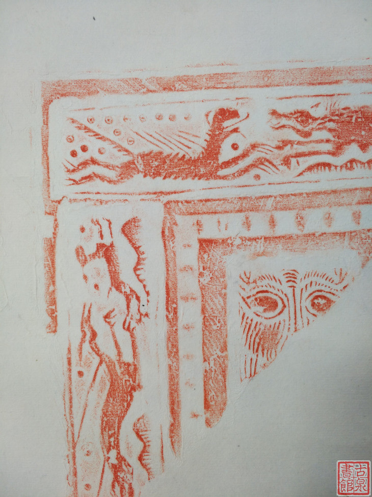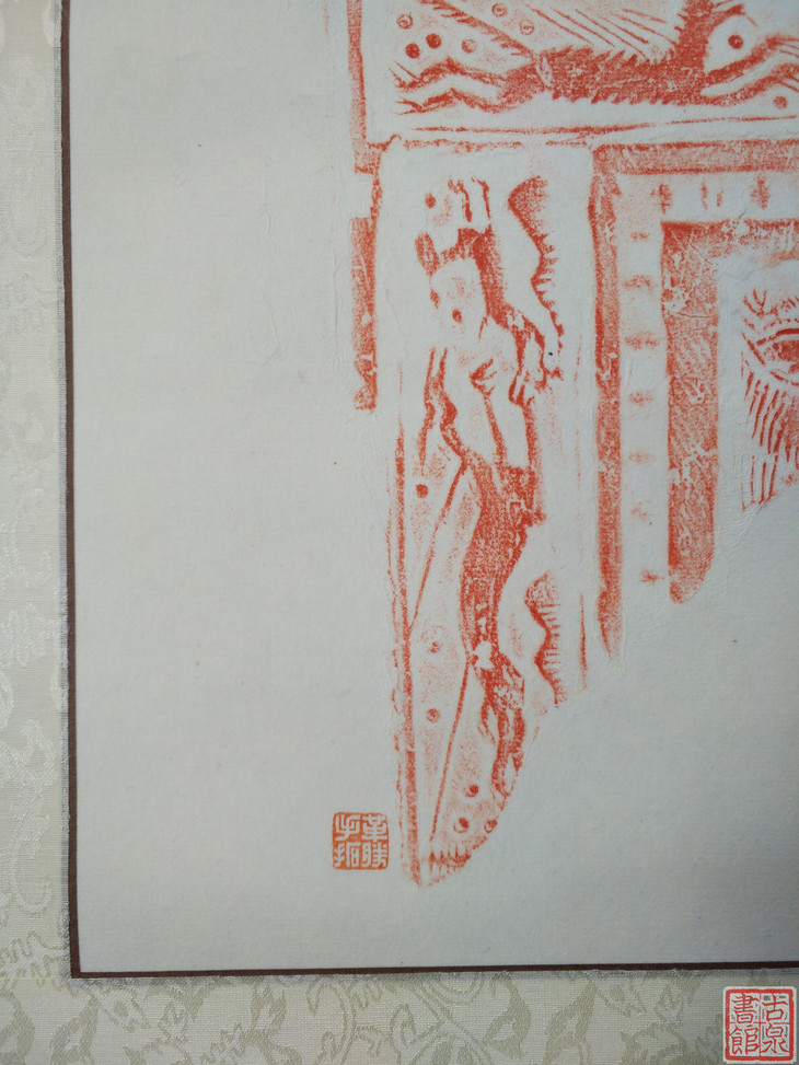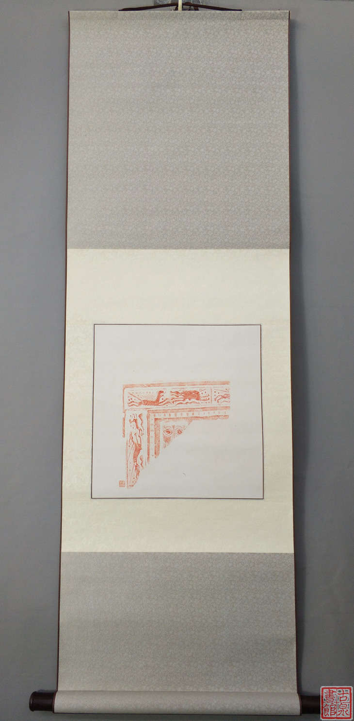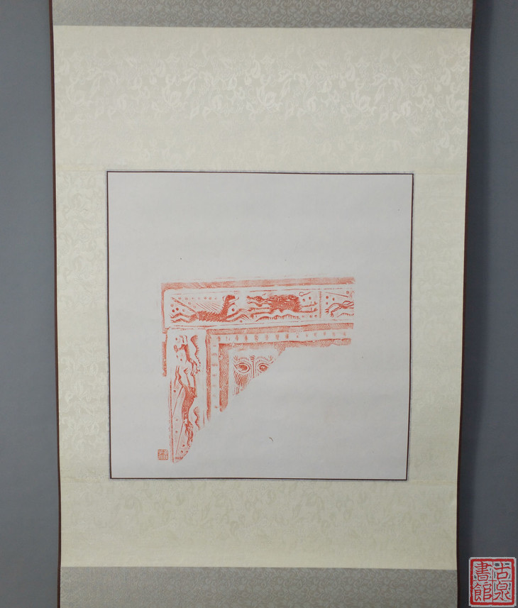 古泉书馆文创【汉砖朱拓龙纹兽面】原拓挂轴