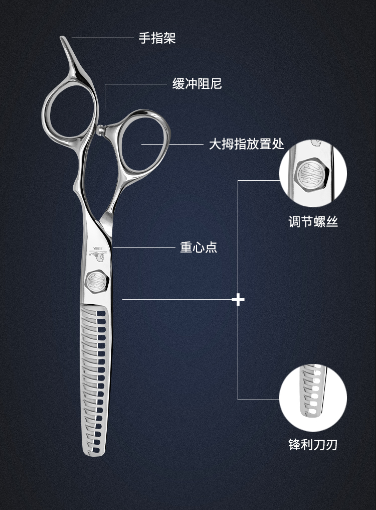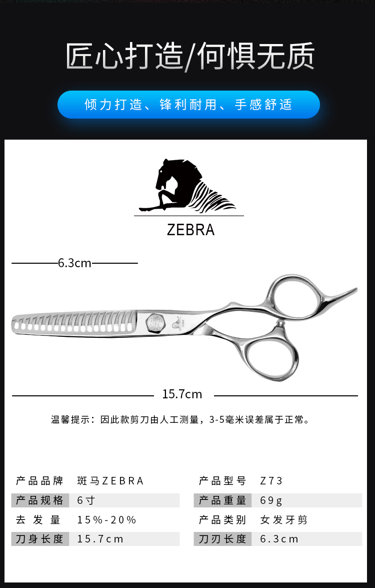 ZEBRA斑马牙剪Z73/斜口齿/调量剪/无痕牙剪/打薄剪/去发量15-20%/正刃/6寸