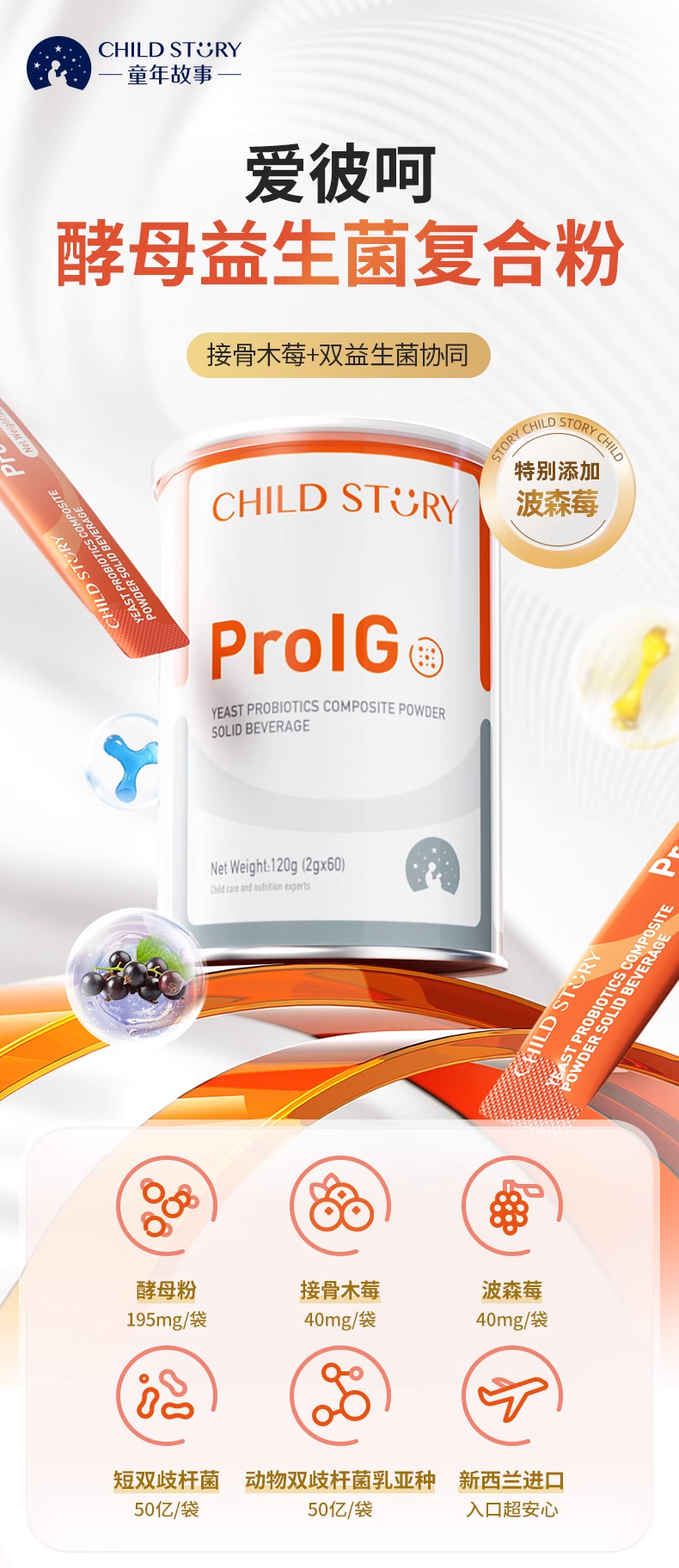 童年故事 爱彼呵酵母益生菌复合粉 儿童即食型益生菌60袋/罐