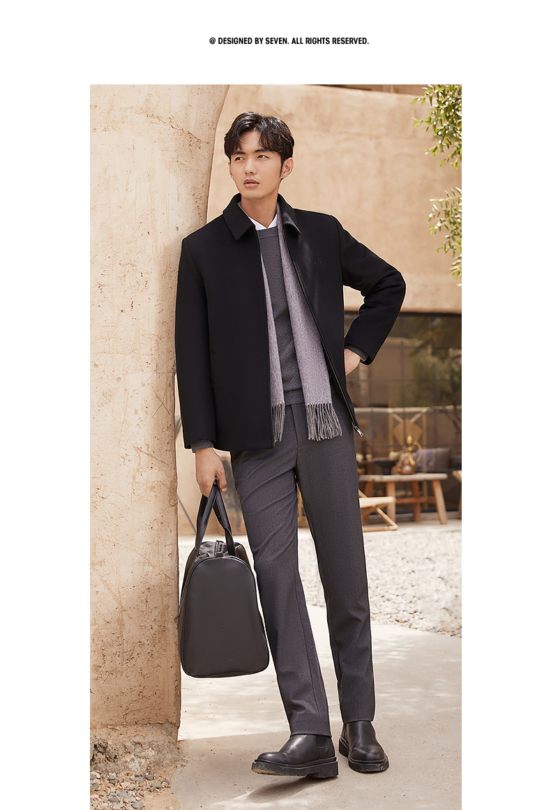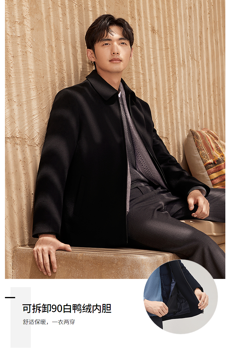 【高端系列】柒牌羽绒夹克男秋冬新款可拆卸内胆一衣两穿翻领外套 127D70310