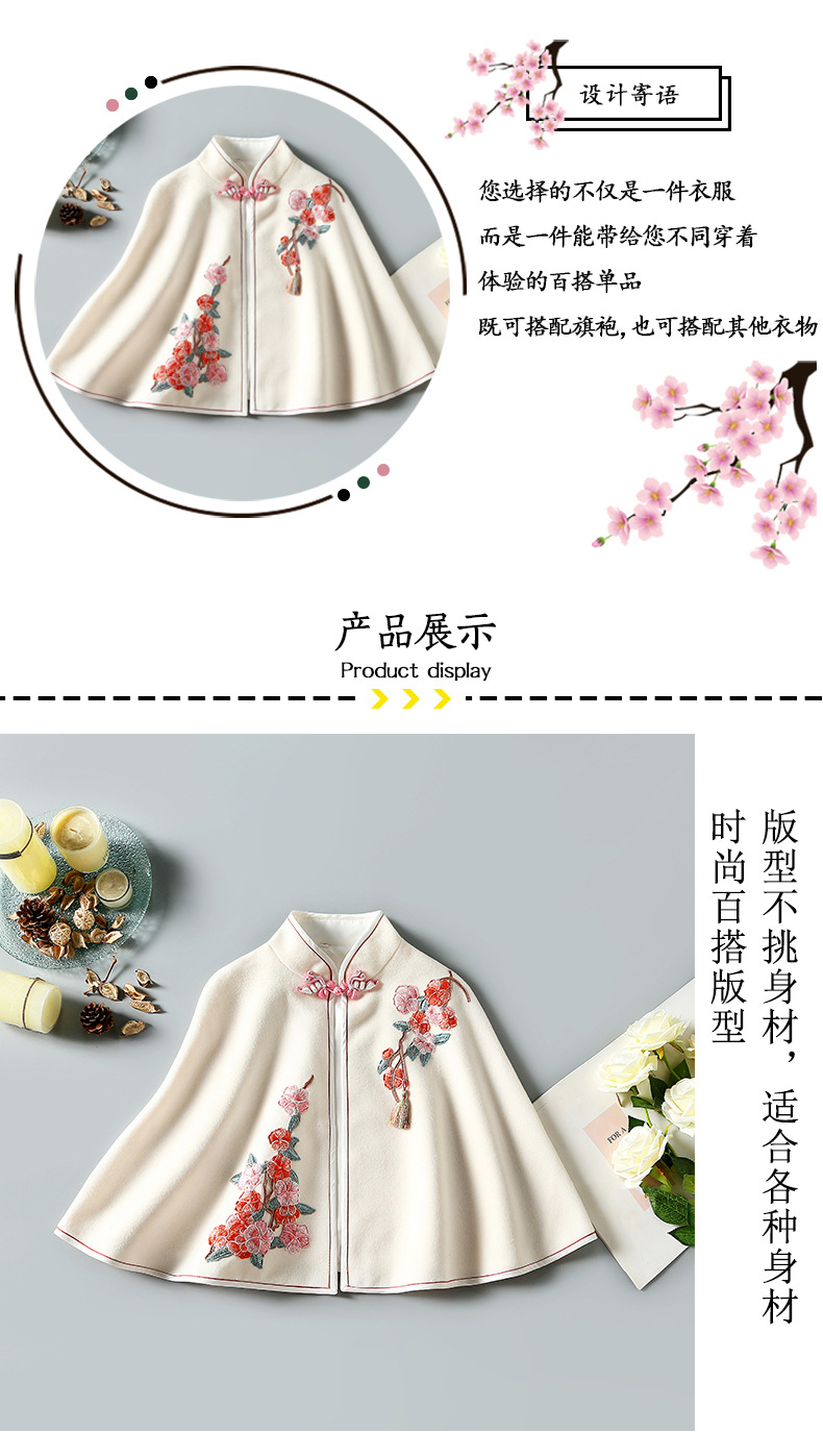 披肩搭配旗袍外穿秋冬加厚刺绣斗篷ZSM200707