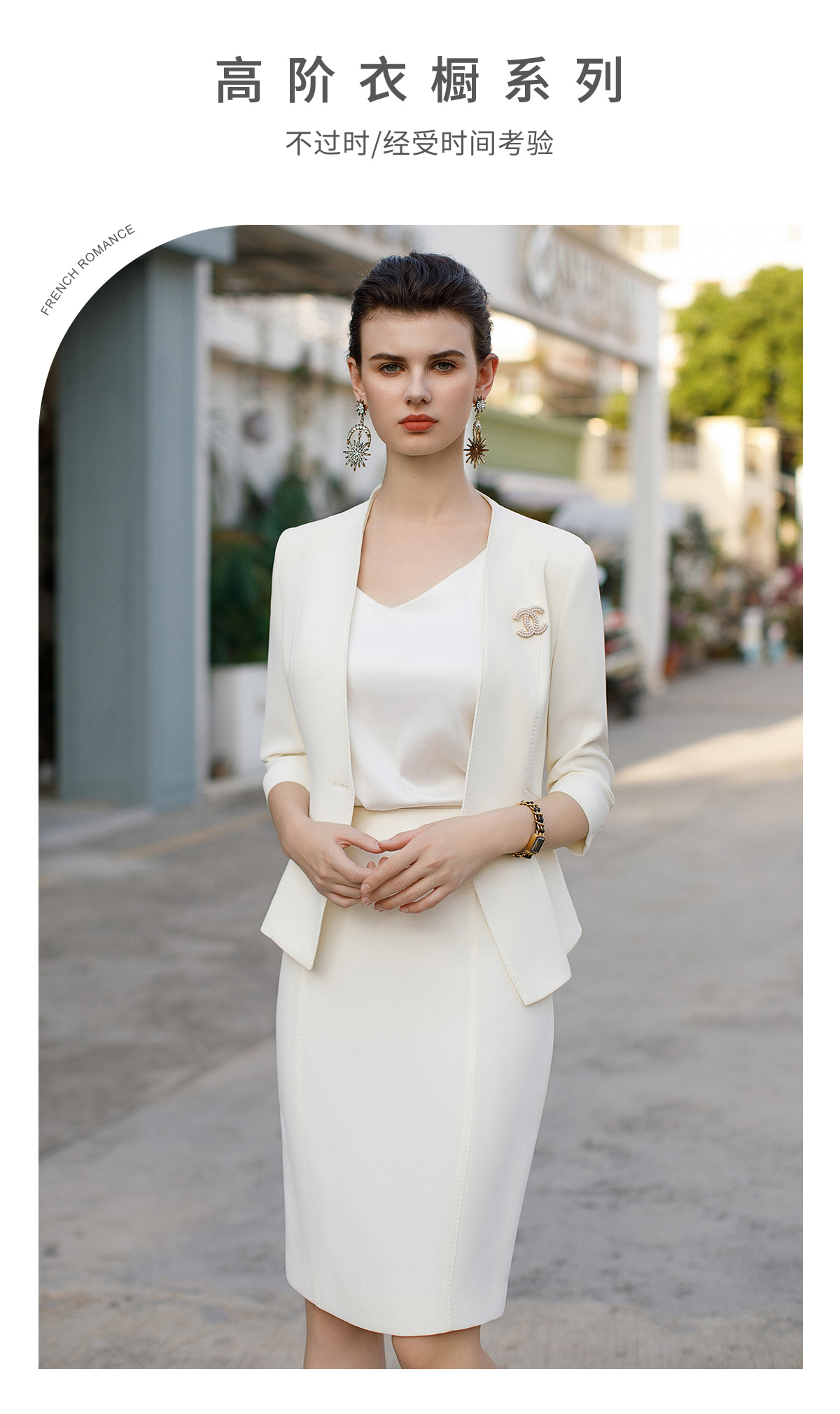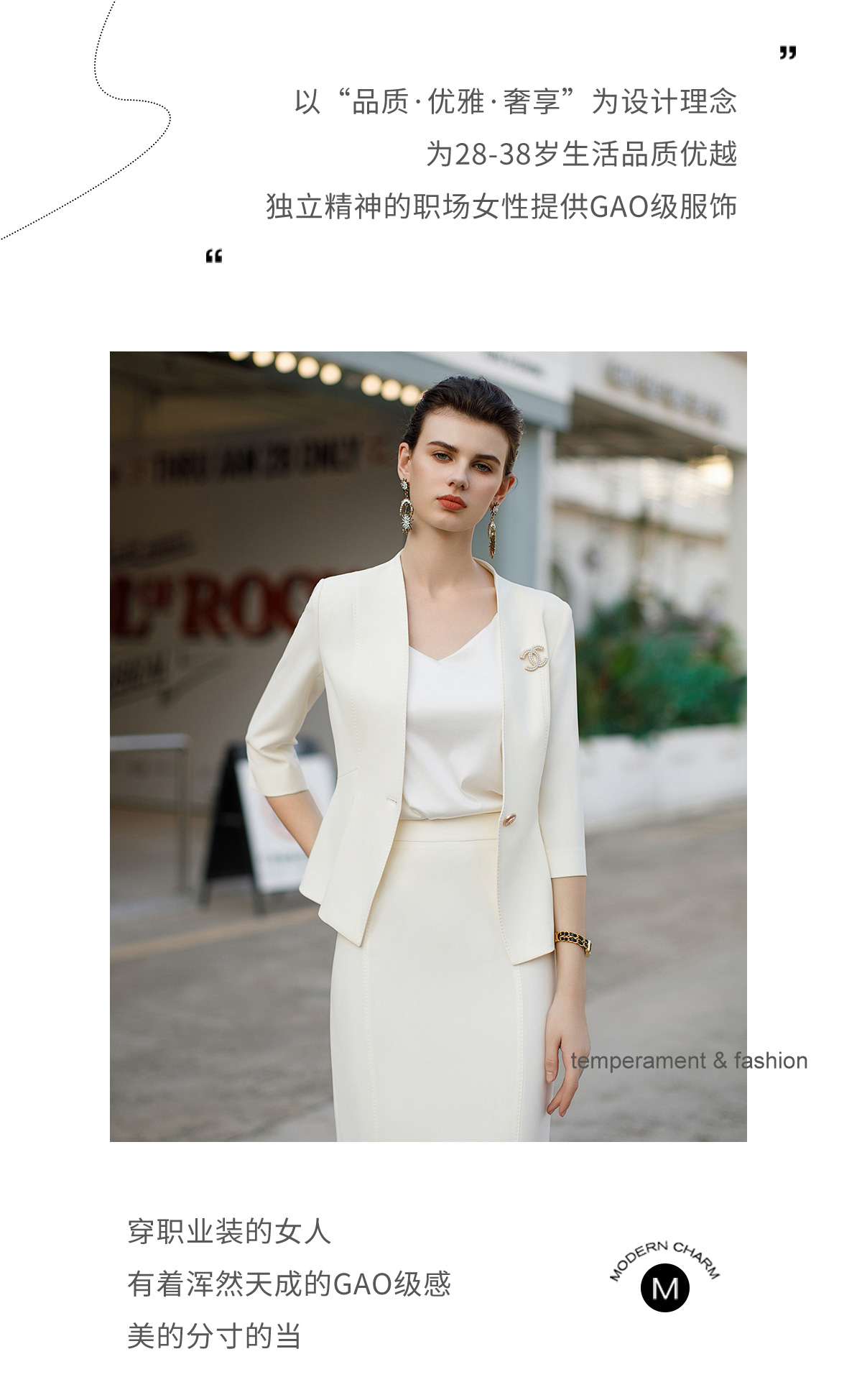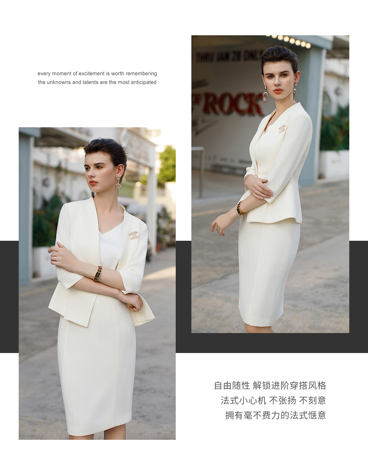 IWY/米白色气质优雅七分袖西装包臀裙时尚通勤套装春秋新款CS1958