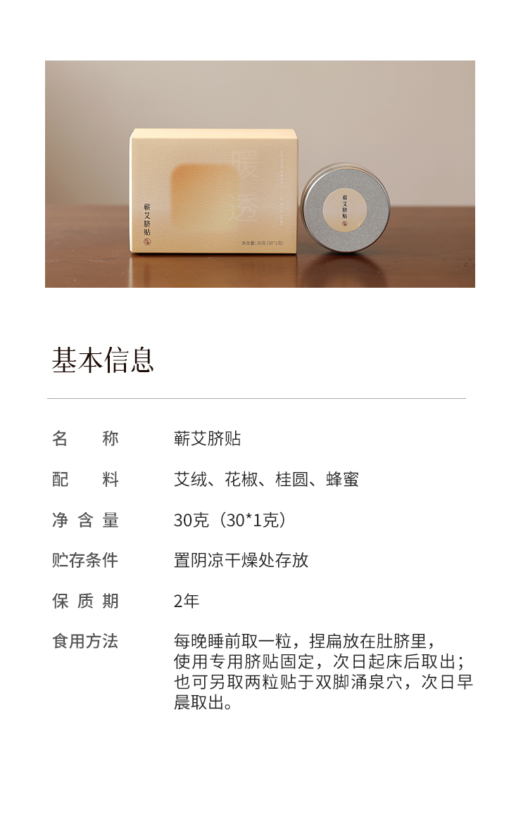蕲艾脐贴 艾绒花椒桂圆蜂蜜 艾灸贴 肚脐贴 30粒