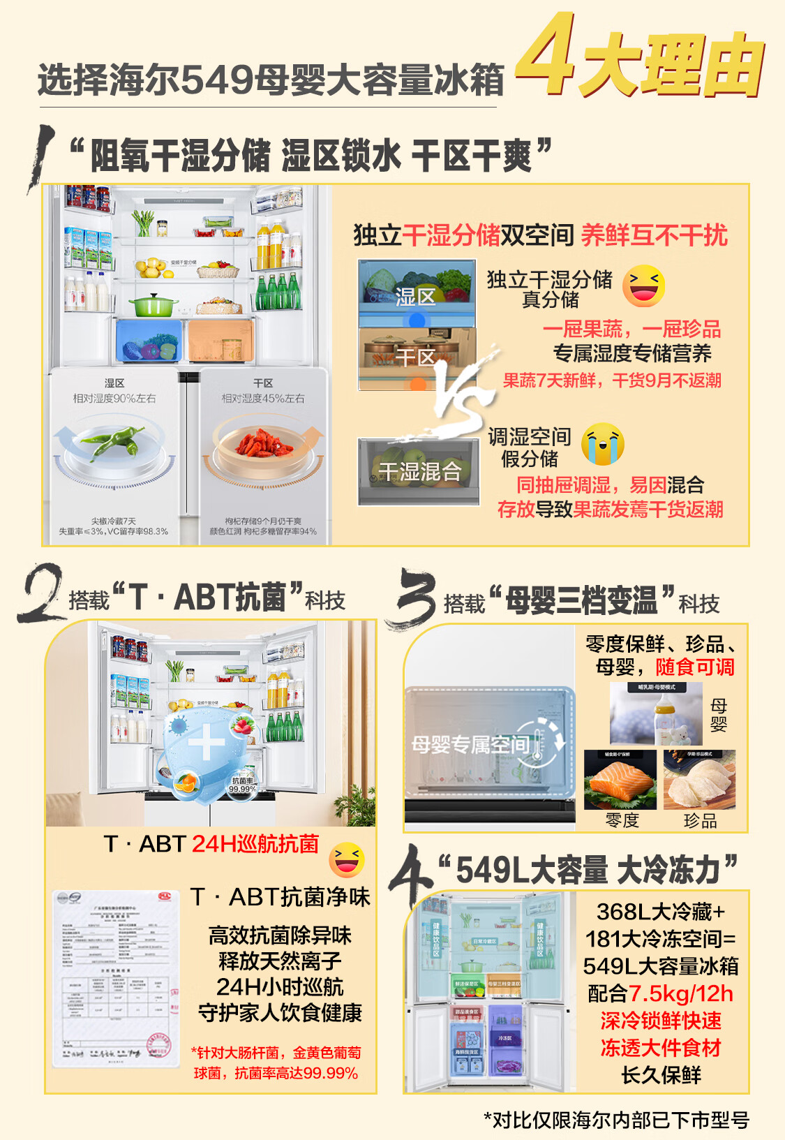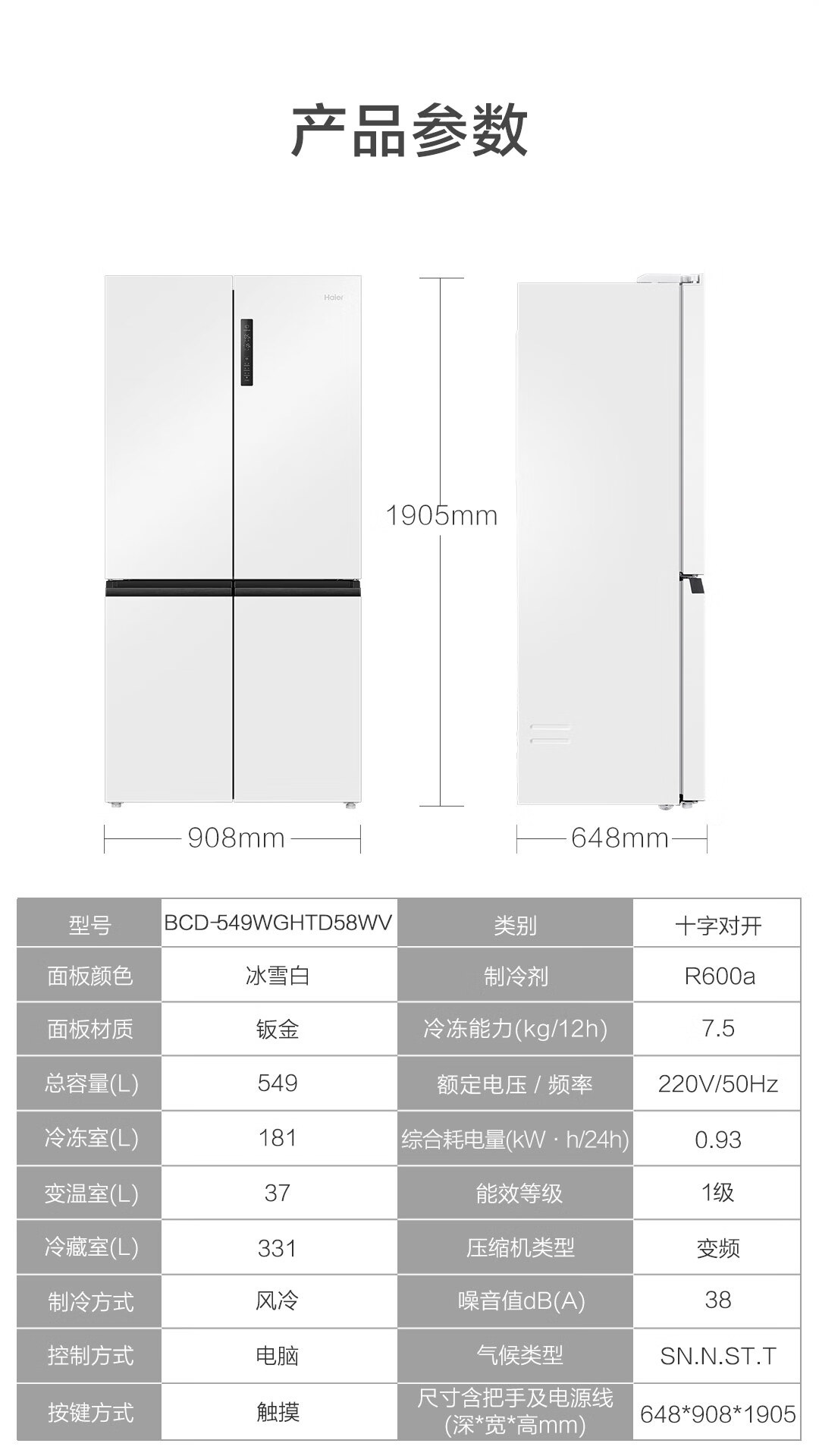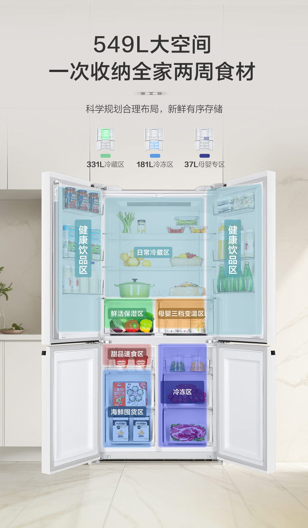 海尔549升十字双开对开四开门电冰箱家用一级能效变频节能嵌入式超大容量545升级款