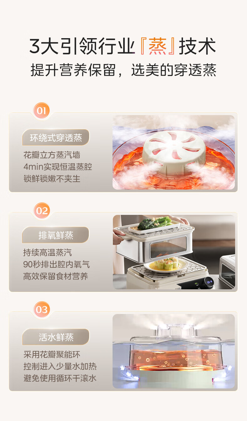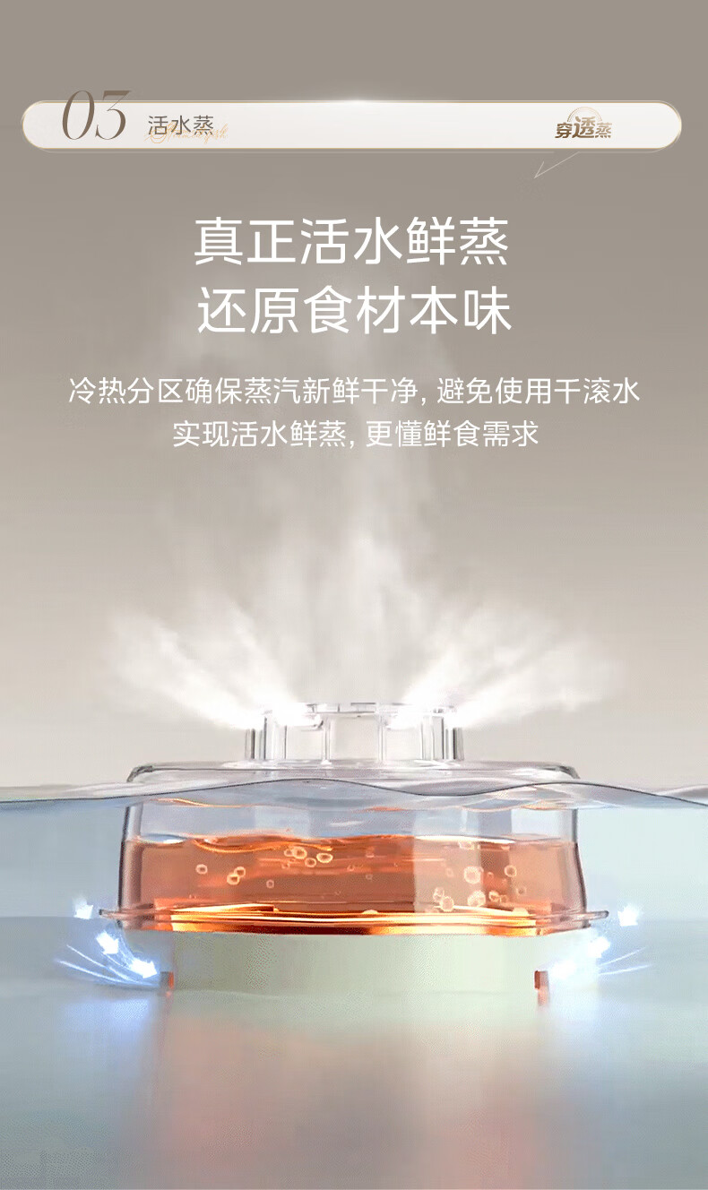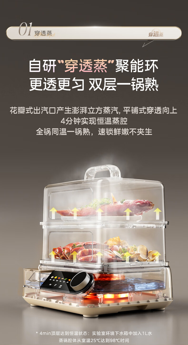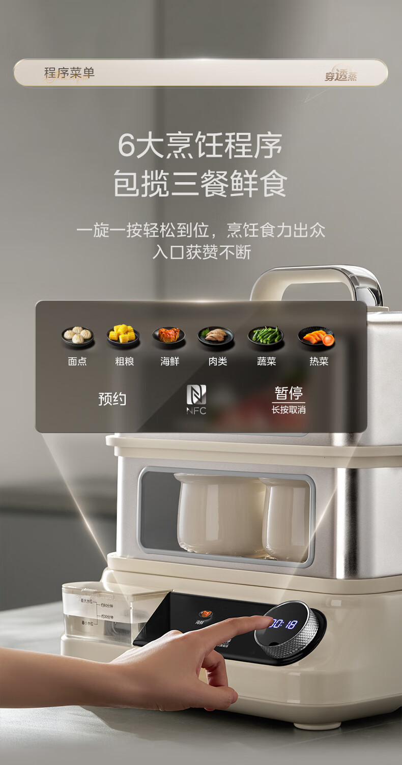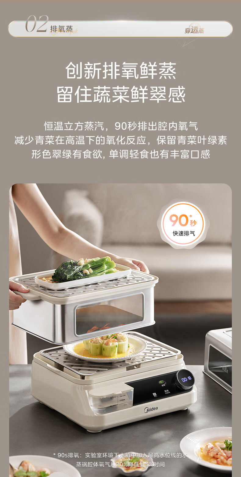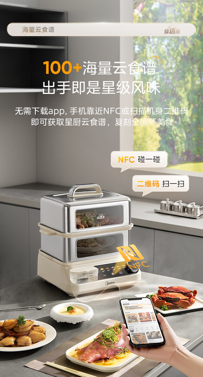 美的(Midea)穿透蒸电蒸锅不锈钢全景可视多功能锅预约保温16.5L双层大容量外置加水ZGC302352KS