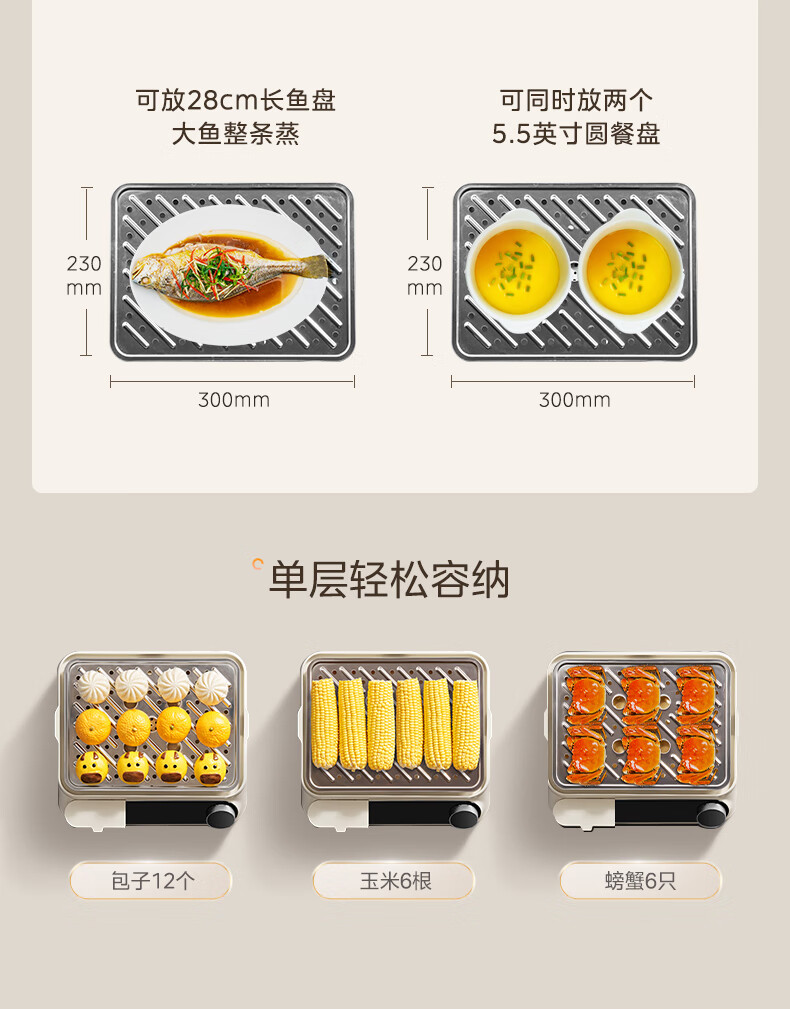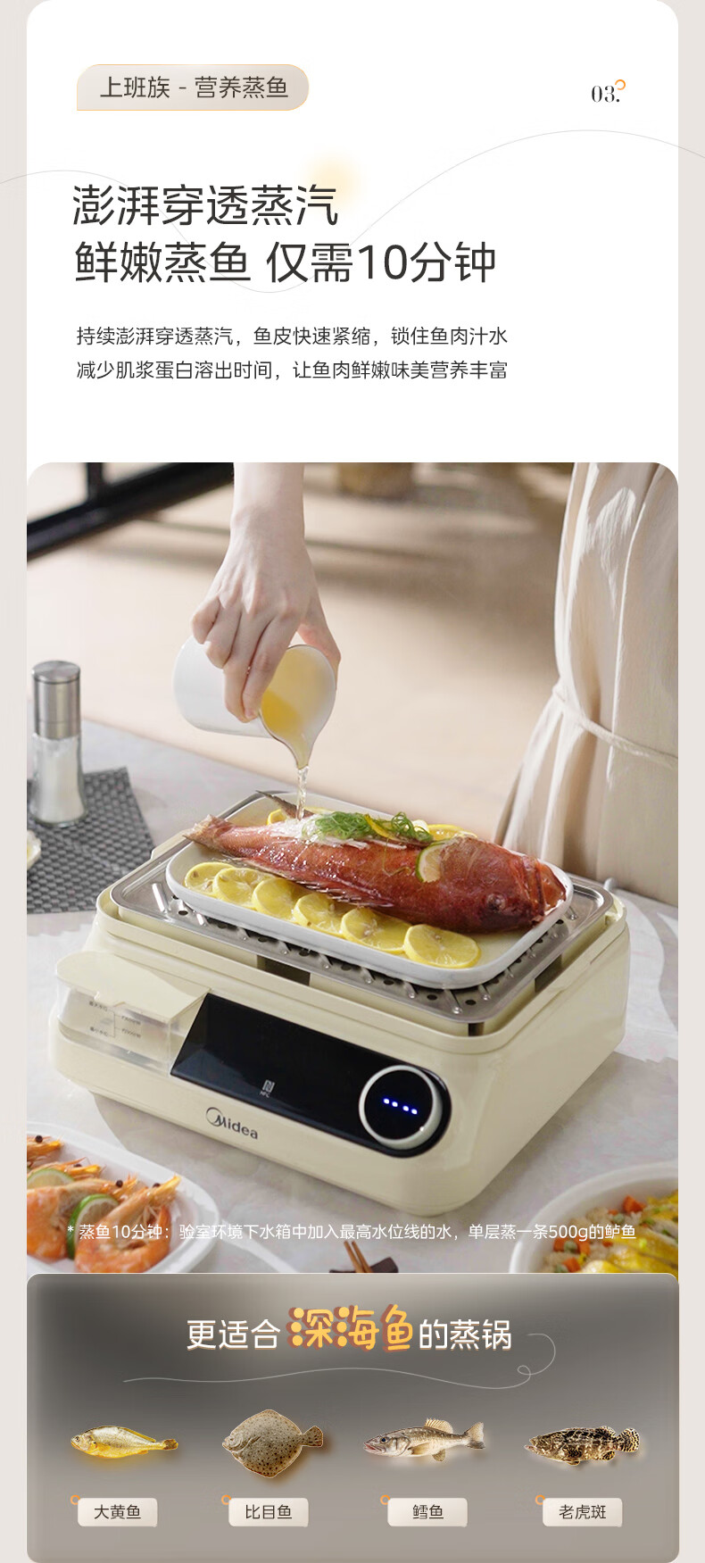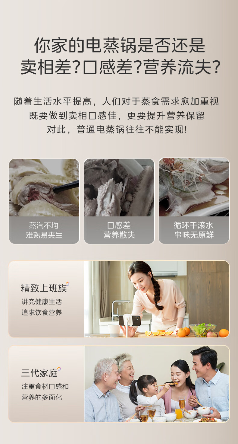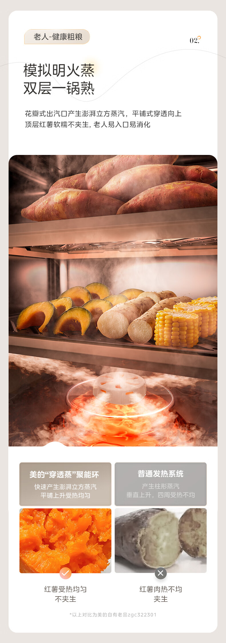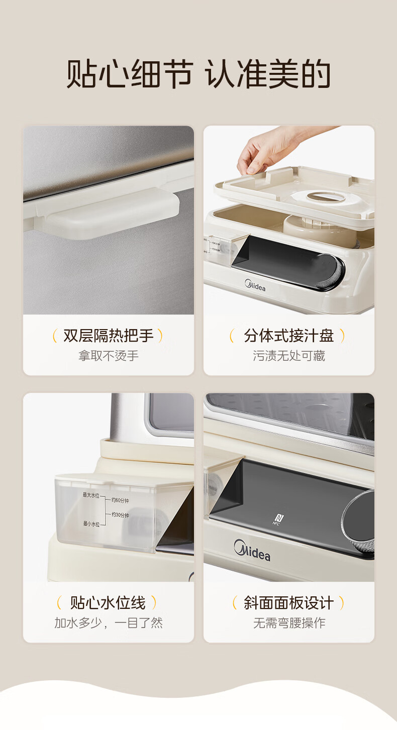 美的(Midea)穿透蒸电蒸锅不锈钢全景可视多功能锅预约保温16.5L双层大容量外置加水ZGC302352KS