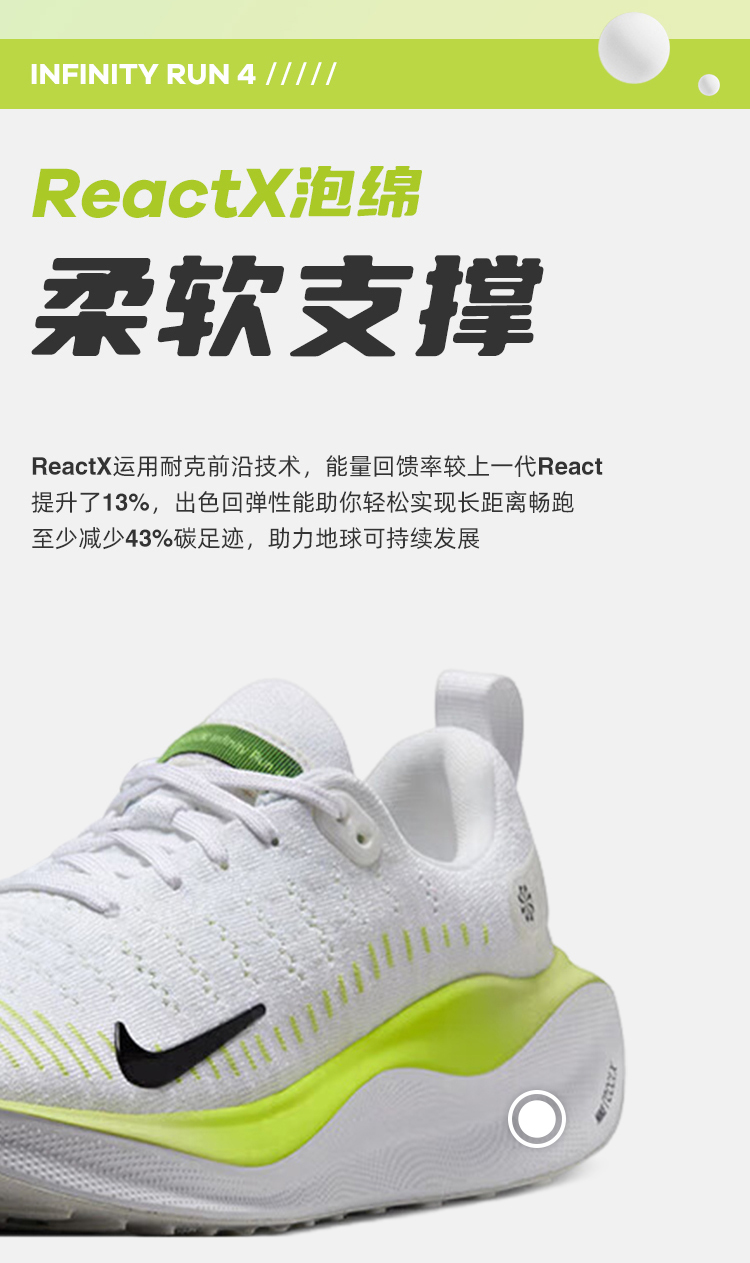 Nike耐克React Infinity Run Flyknit 4 男女款舒缓缓震透气跑步训练运动鞋
