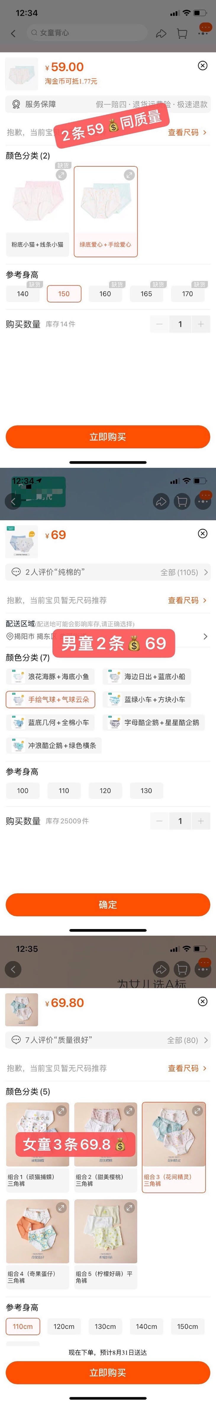 下单:男童A类三角裤+码数, 透气性,弹力,手感非常无敌,最重要的是“A类婴幼儿级别”会让你感动哭的…