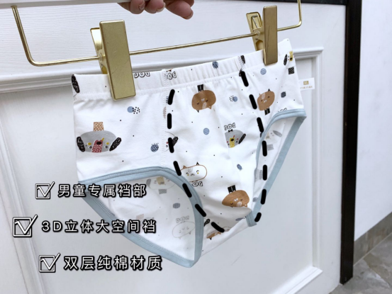 看男童专属裆部,双层纯棉设计, 3D立体大空间裆,更加的舒适!