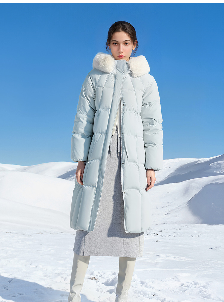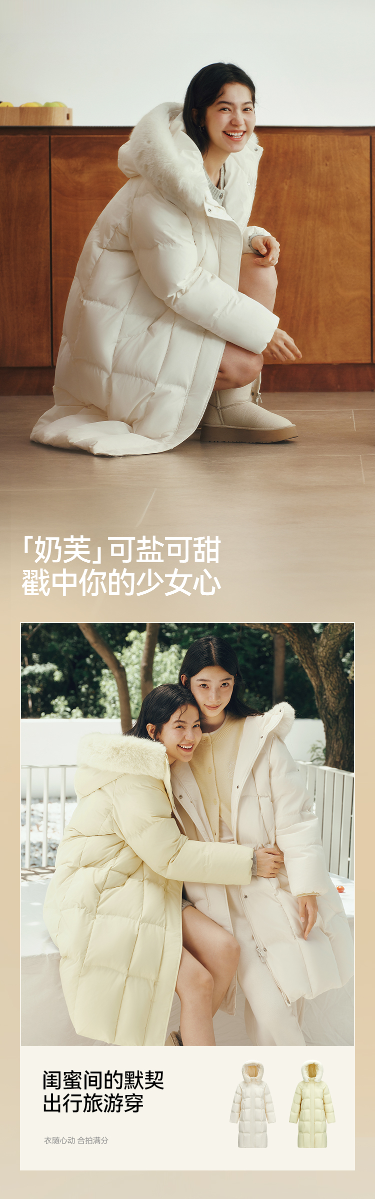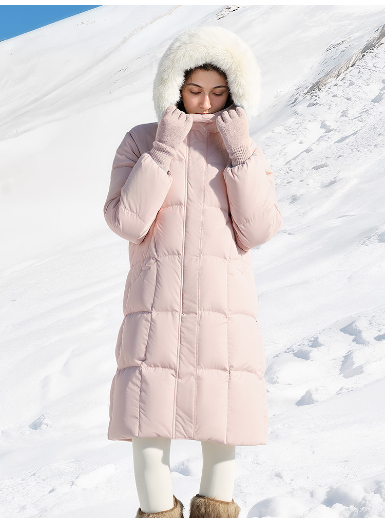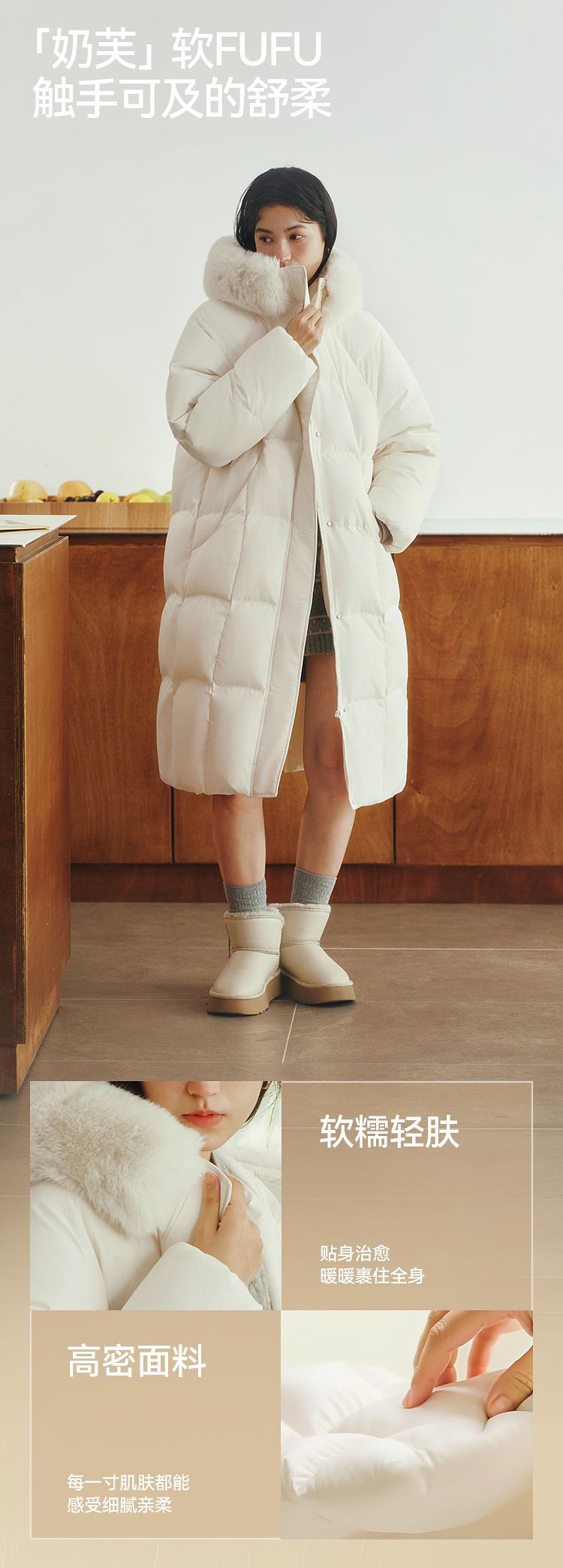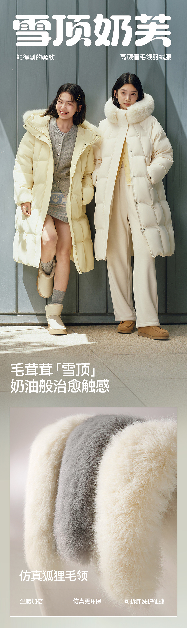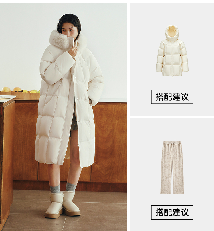 森马长款羽绒服90绒子可拆卸毛领连帽分割插肩袖2025新款女冬外套