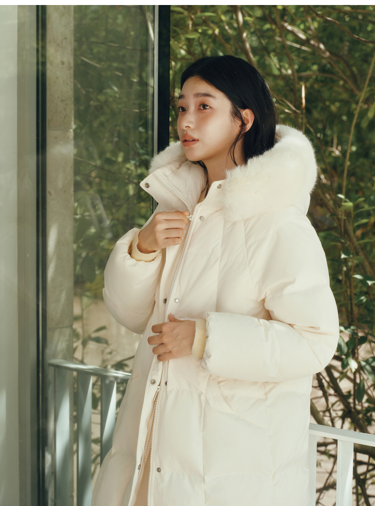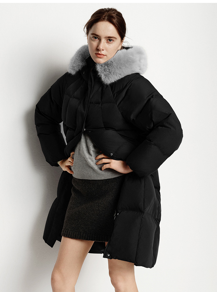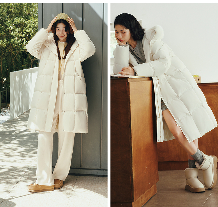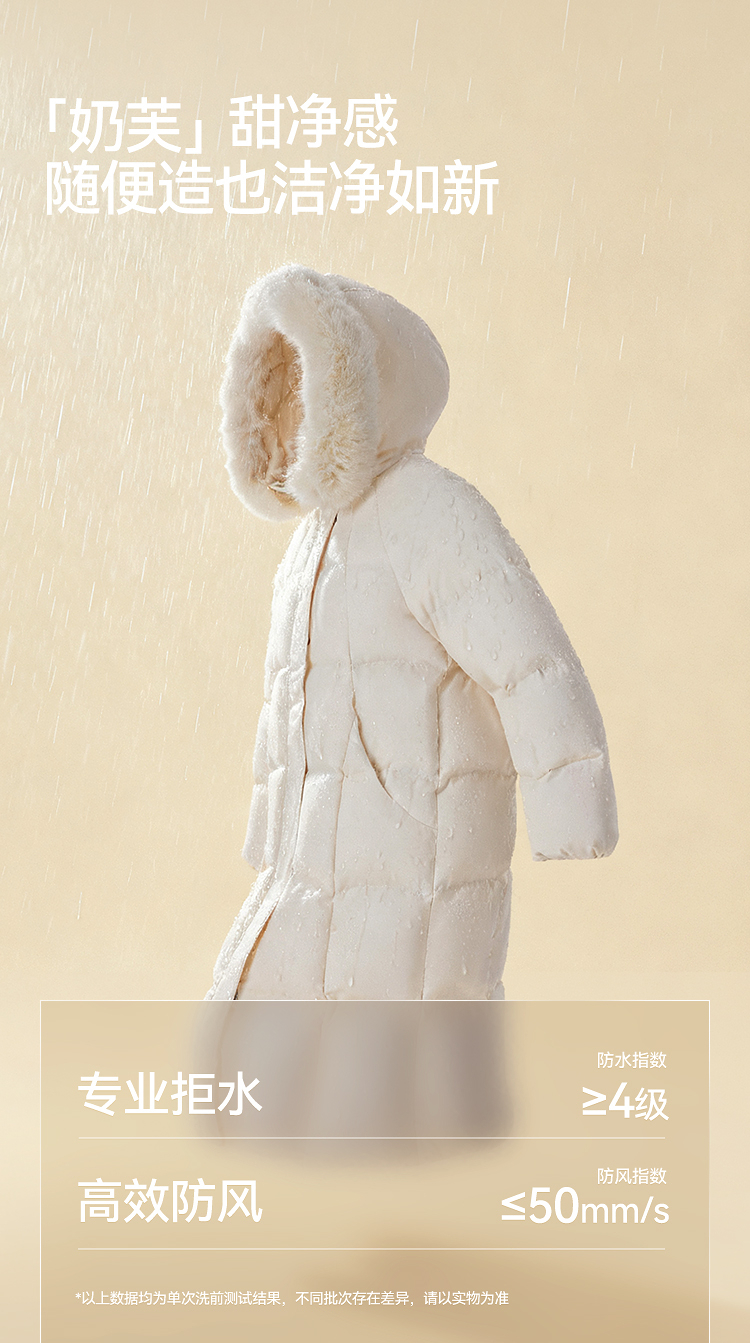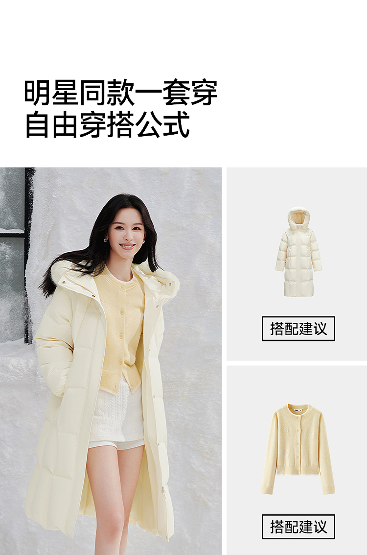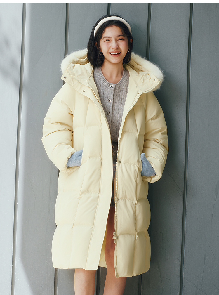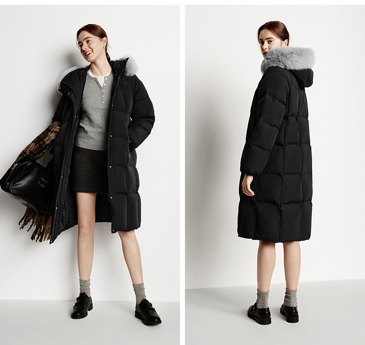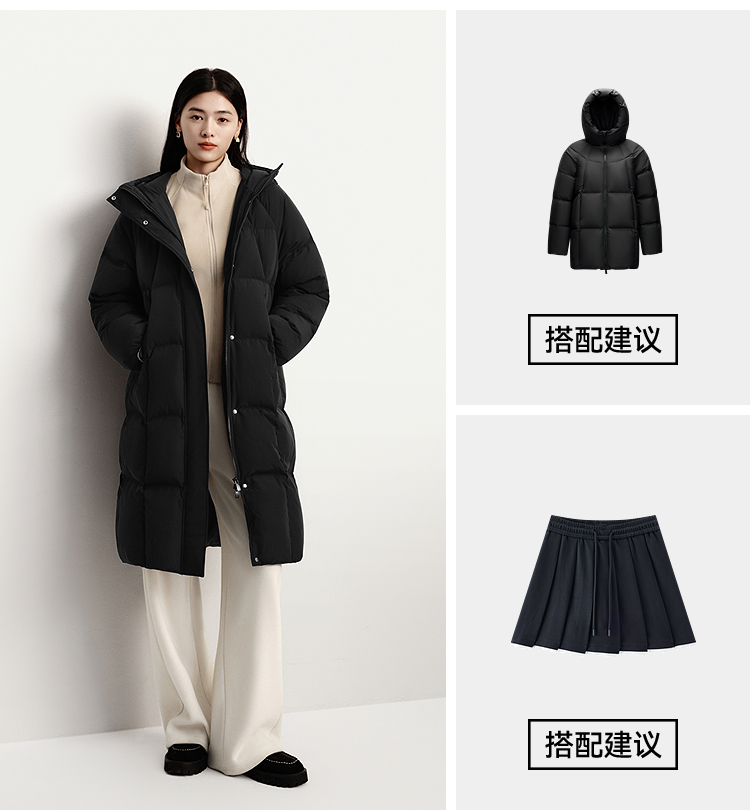 森马长款羽绒服90绒子可拆卸毛领连帽分割插肩袖2025新款女冬外套
