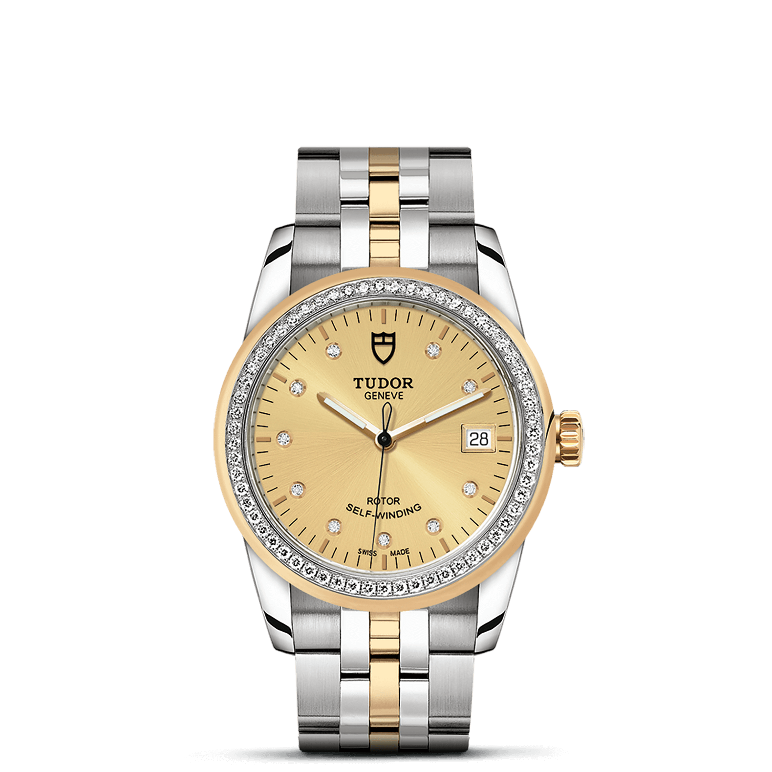 旋入式上链錶冠,饰以帝舵表标志;精钢覆有0.1毫米18K黄金薄层