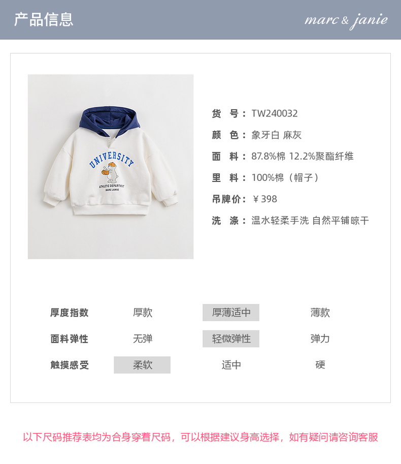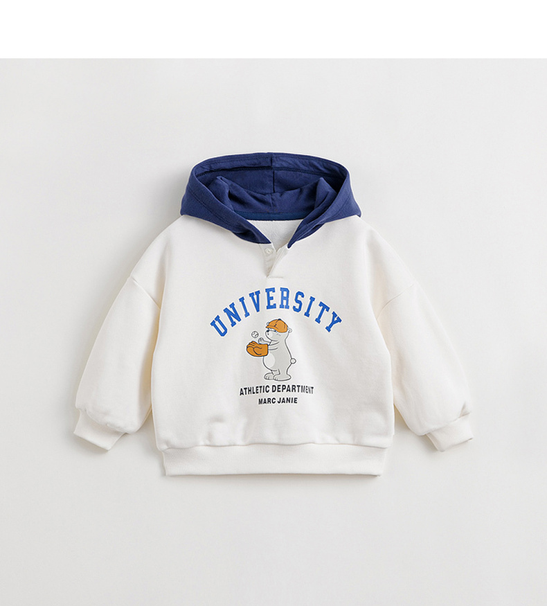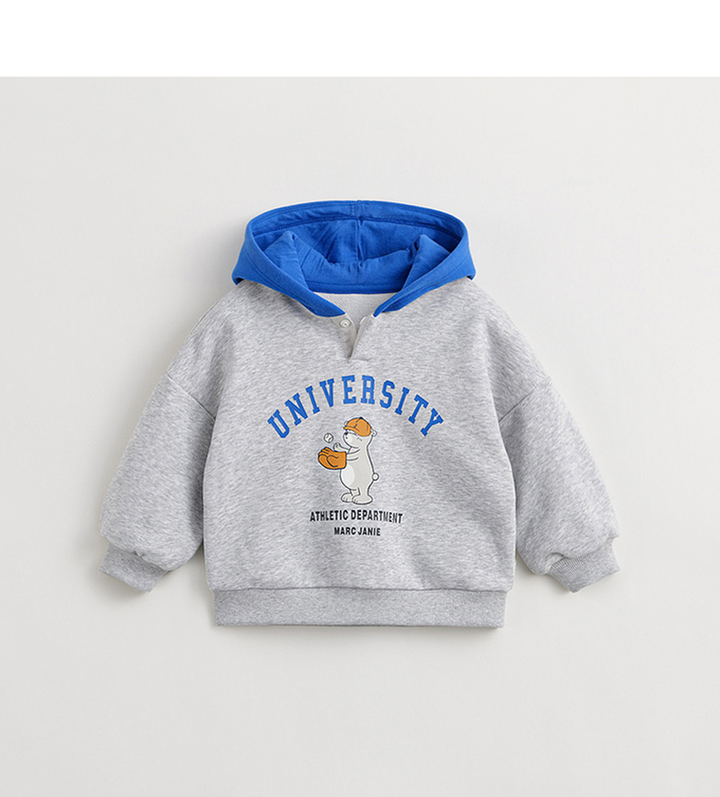 马克珍妮男童超舒棉学院小熊卫衣儿童连帽外套上衣春款新品240032