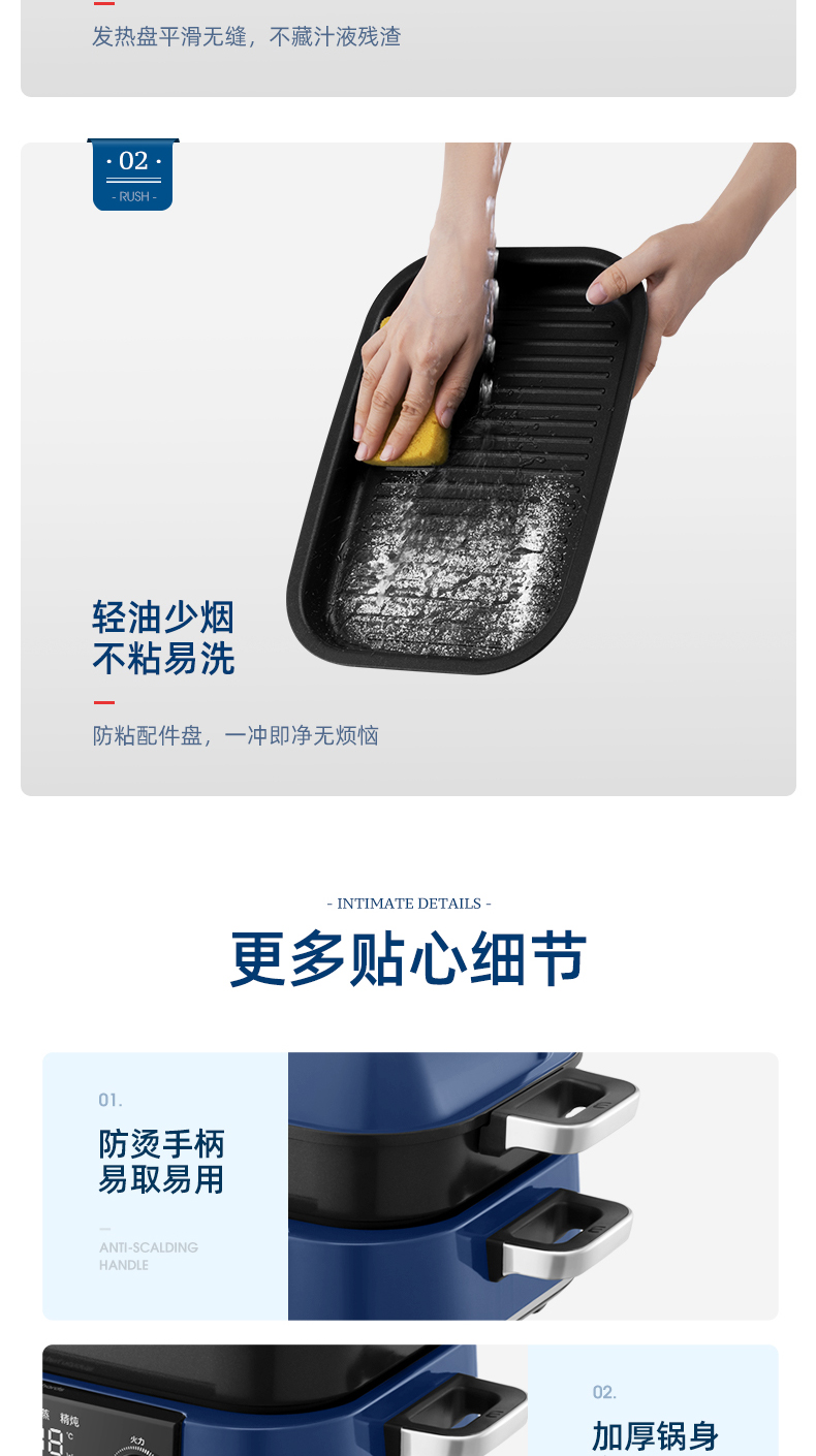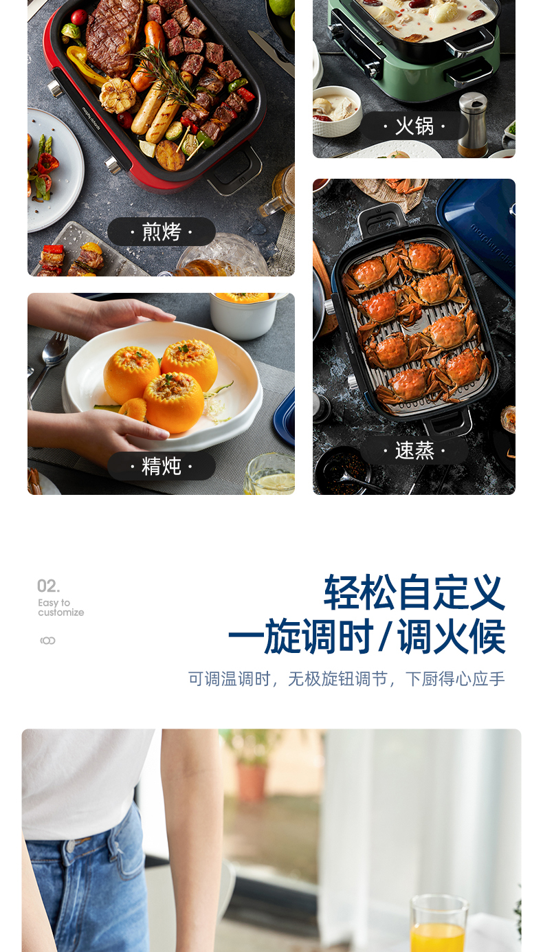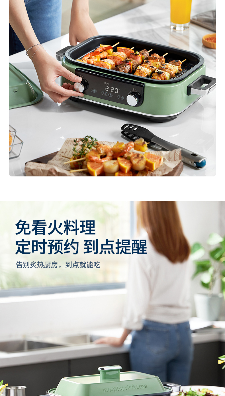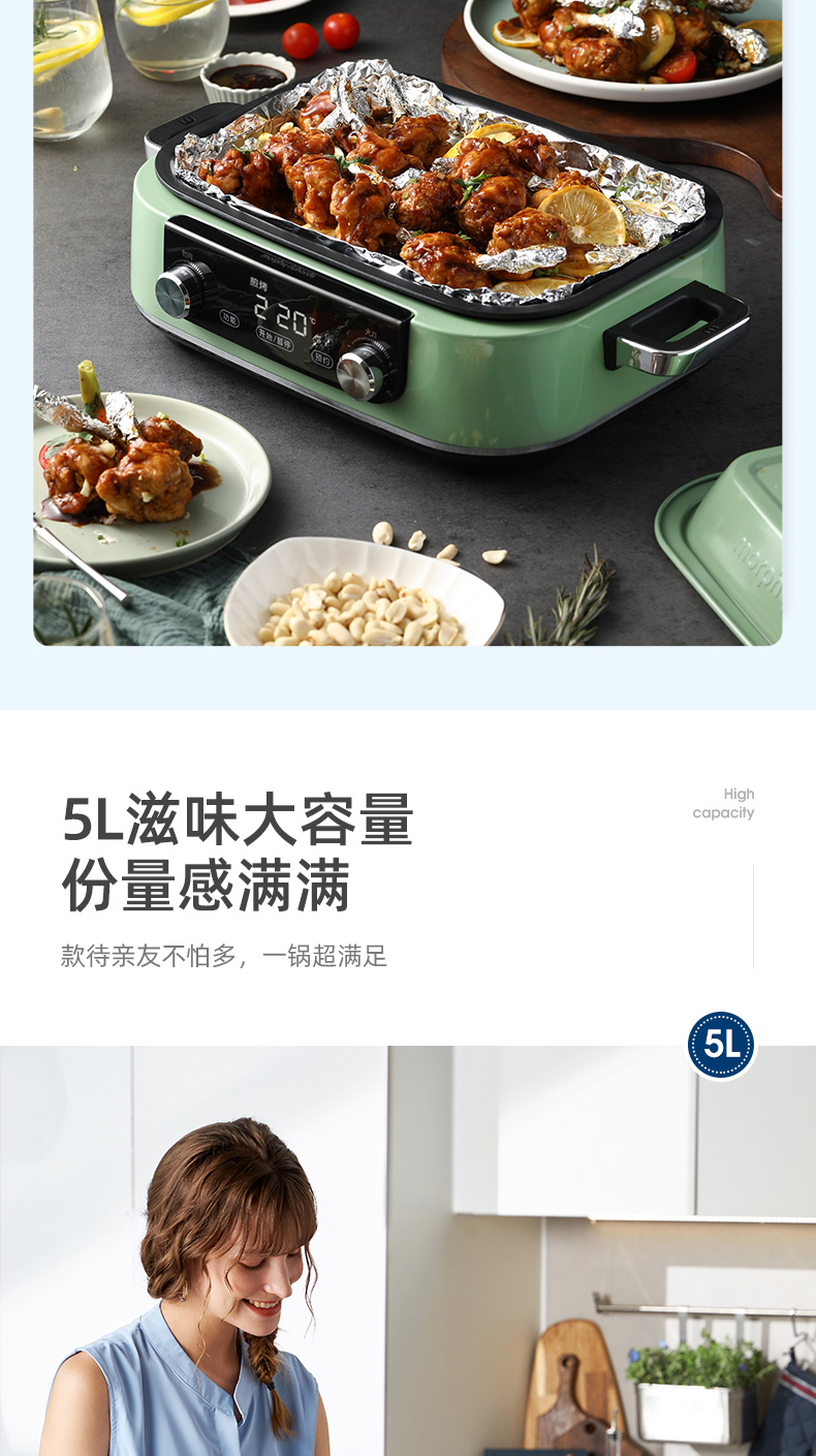 摩飞二代多功能料理锅火锅烤肉涮一体家用蒸煮炒煎电烤锅网红锅