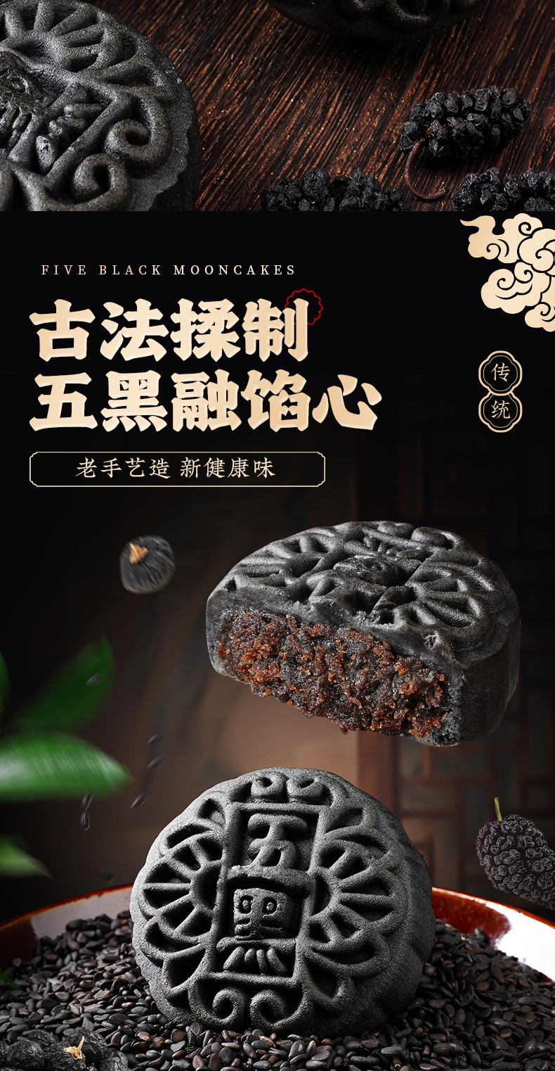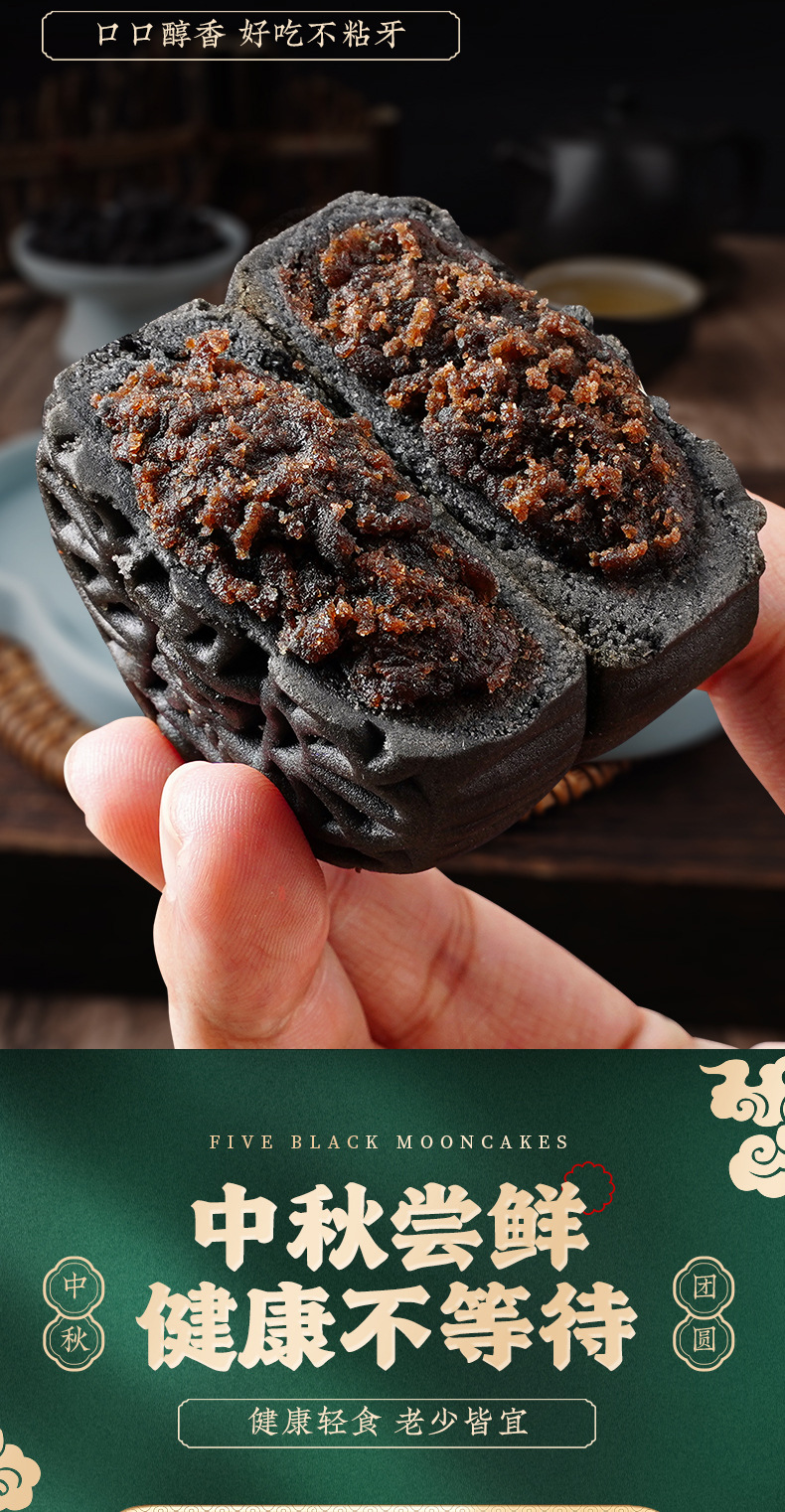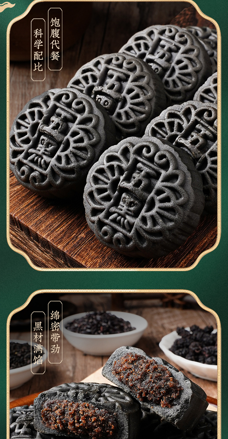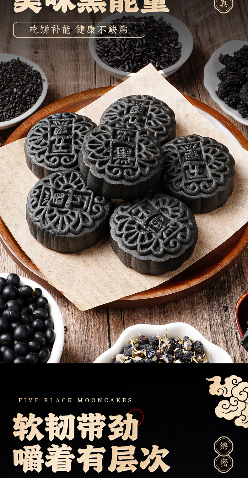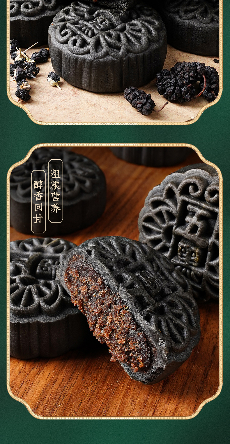 【以黑养黑❗️黑芝麻桑葚月饼】古法匠心制作,五盒融馅心,清甜不腻内陷绵密,皮软馅多黑想更浓郁,黑桑葚枸杞粗粮饼广式月饼,下午茶饱腹营养代餐传统糕点L