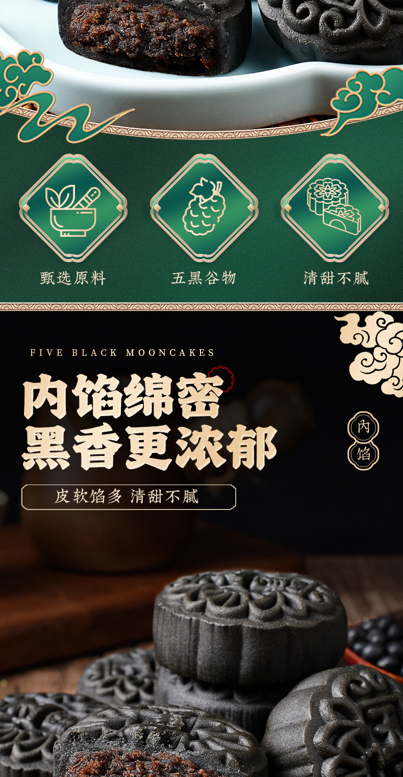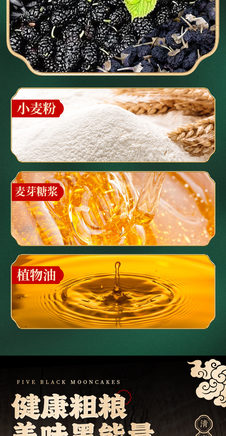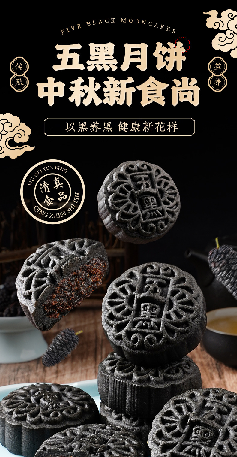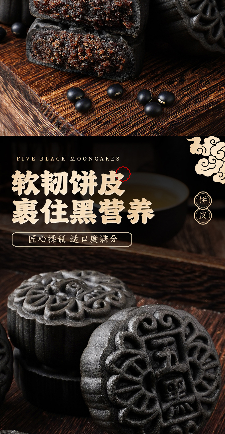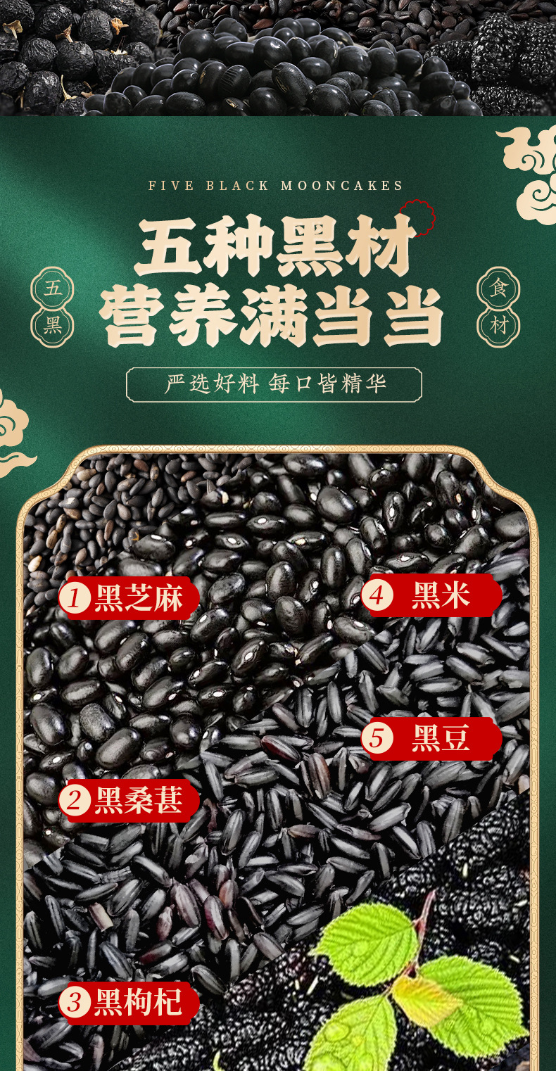 【以黑养黑❗️黑芝麻桑葚月饼】古法匠心制作,五盒融馅心,清甜不腻内陷绵密,皮软馅多黑想更浓郁,黑桑葚枸杞粗粮饼广式月饼,下午茶饱腹营养代餐传统糕点L