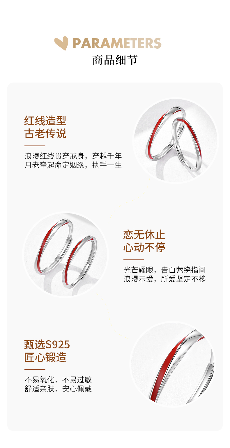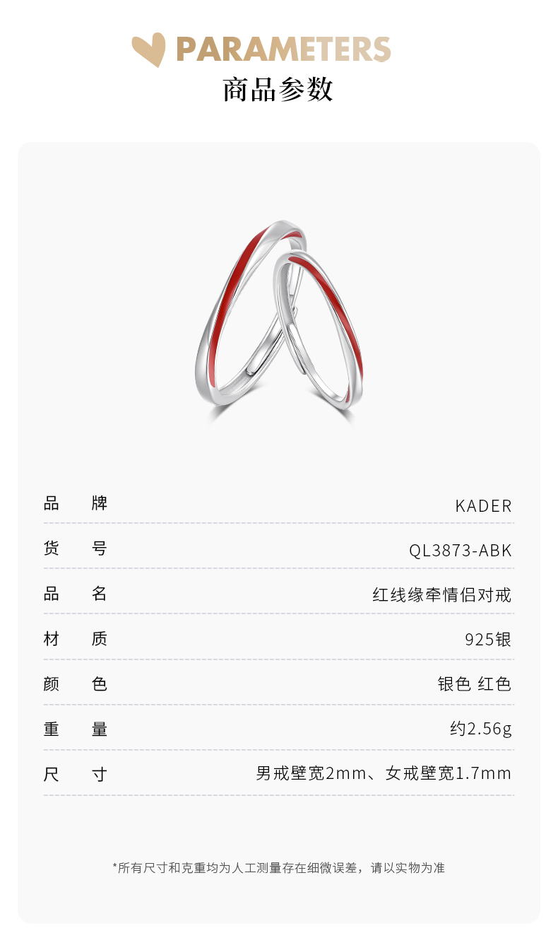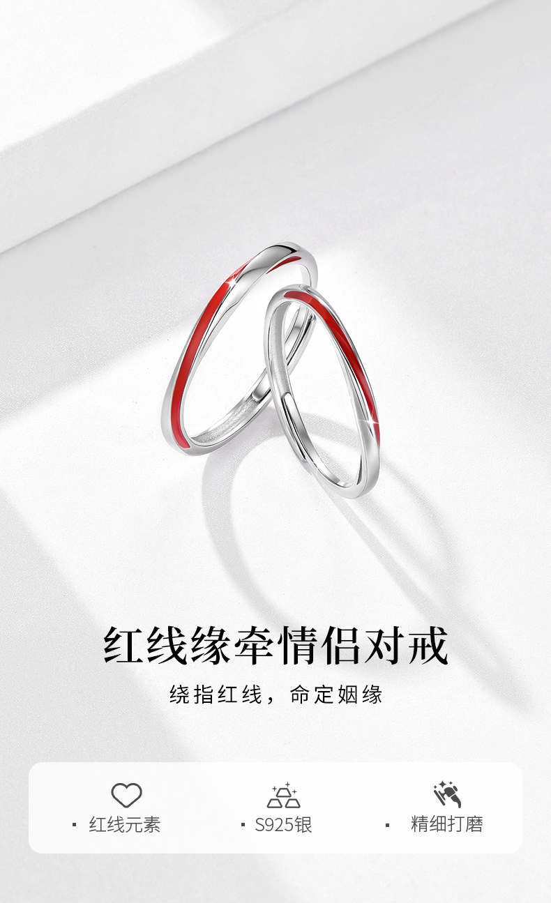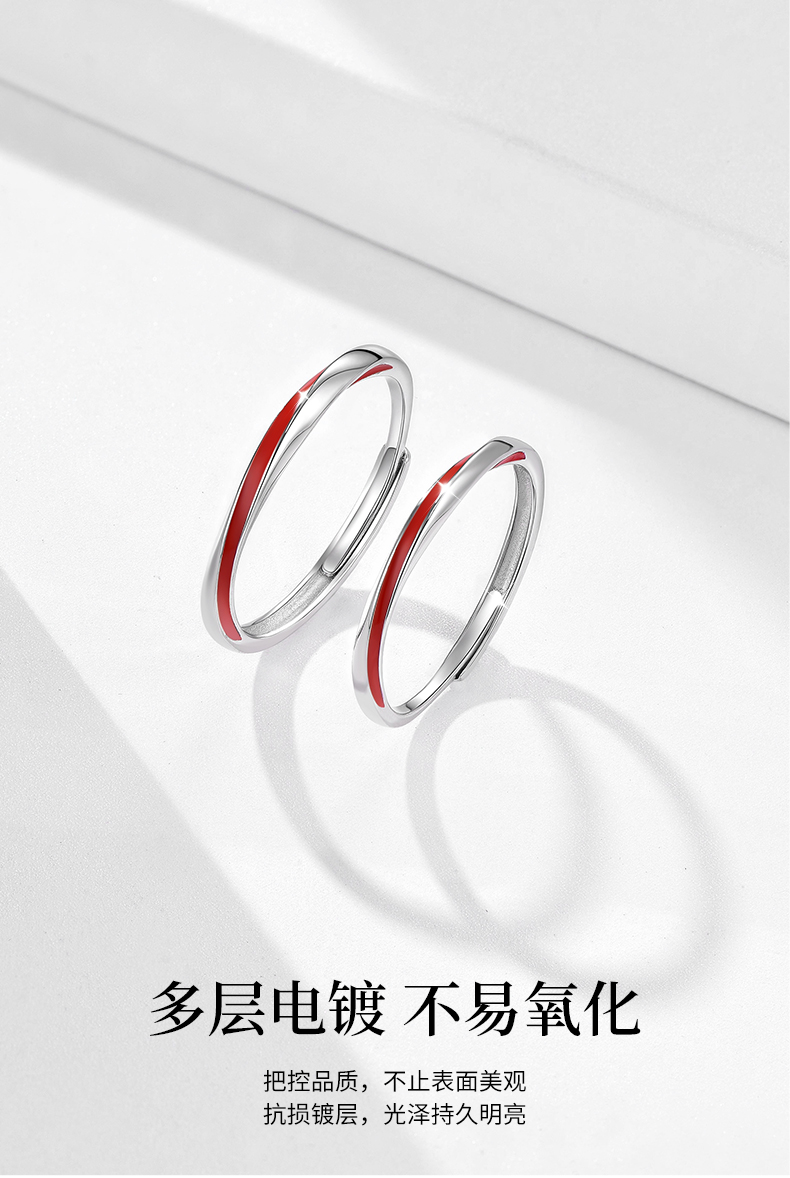 卡蒂罗/KADER 莫比乌斯月老红线缘牵情侣对戒 新中式国风恋爱告白可调节开口素圈一对 轻奢高级感钟爱久久纪念日