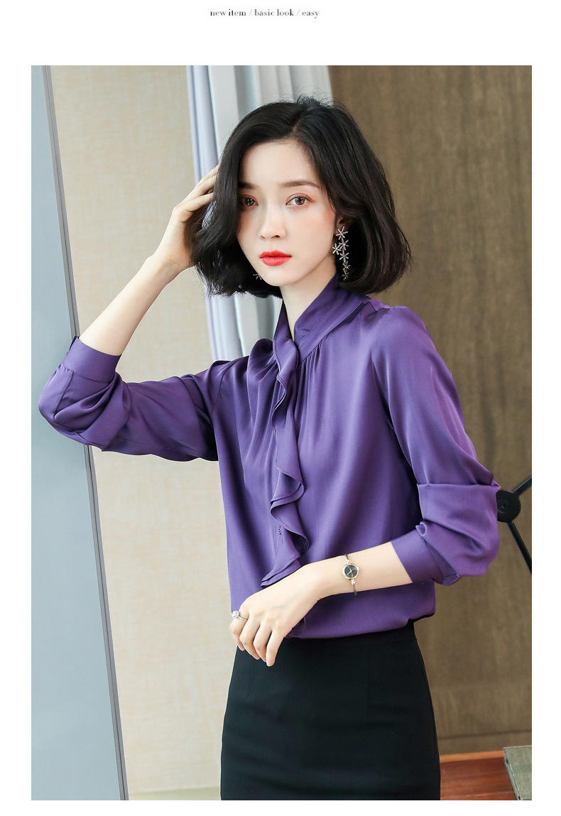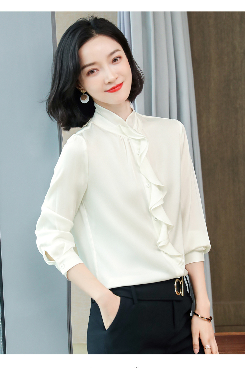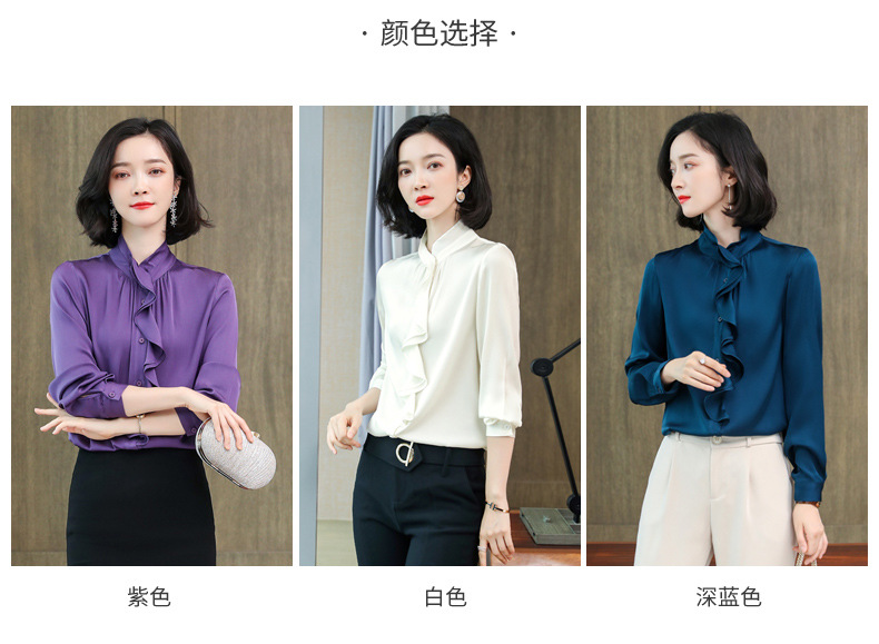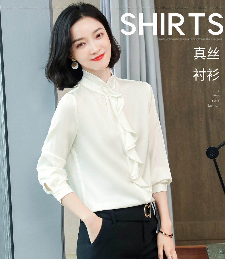 真丝衬衫女秋装新款时尚荷叶边洋气别致桑蚕丝长袖真丝女衬衫