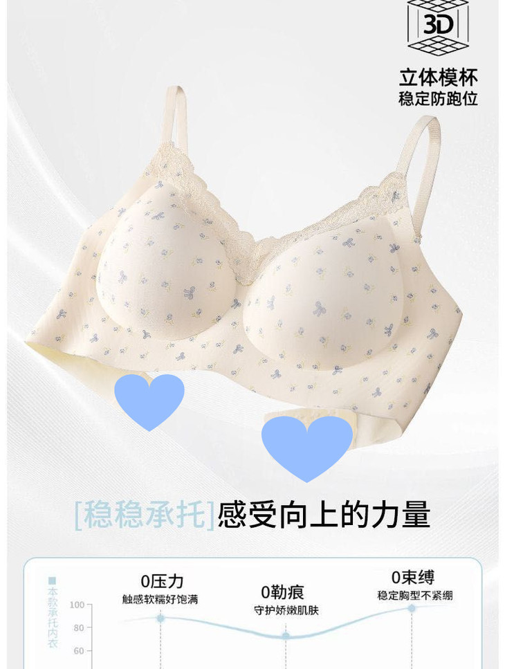 日系纯欲蕾丝边小胸聚拢无痕内衣女叠穿亲肤上托无钢圈固定杯文胸