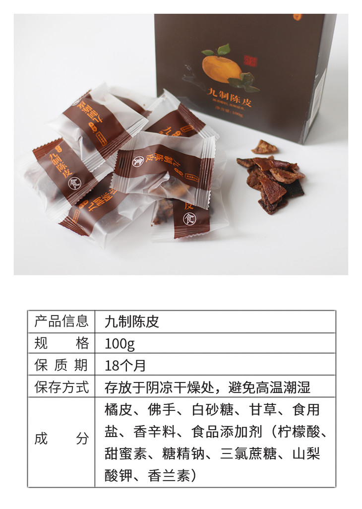 正安 九制陈皮 多年陈皮添加甘草佛手浸渍 开胃零食口感醇厚悠长咽喉舒适 儿童老人上班族办公室茶点零食 九制陈皮*100克/盒 【年货节丨食品任意4件99元】-不叠加其他活动