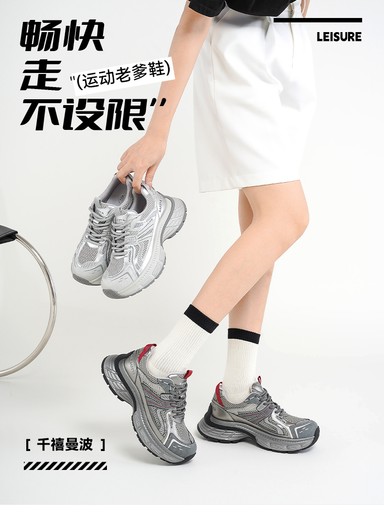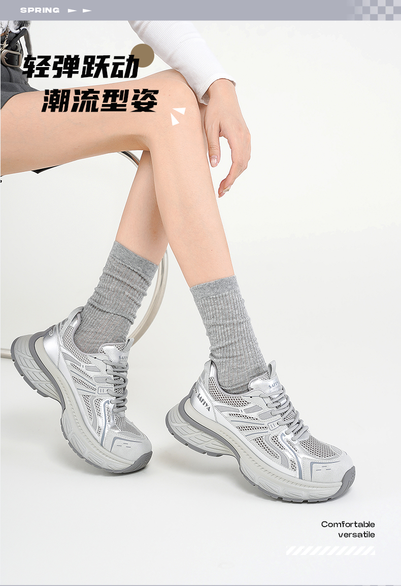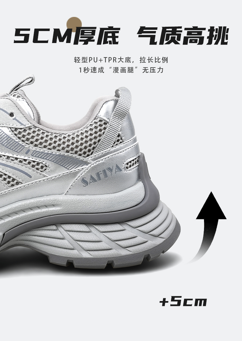 预售7天|Safiya/索菲娅2025潮酷厚底轻便增高透气百搭休闲运动老爹鞋SFD3112062