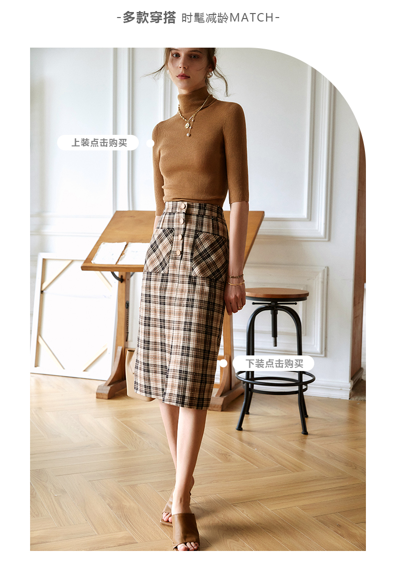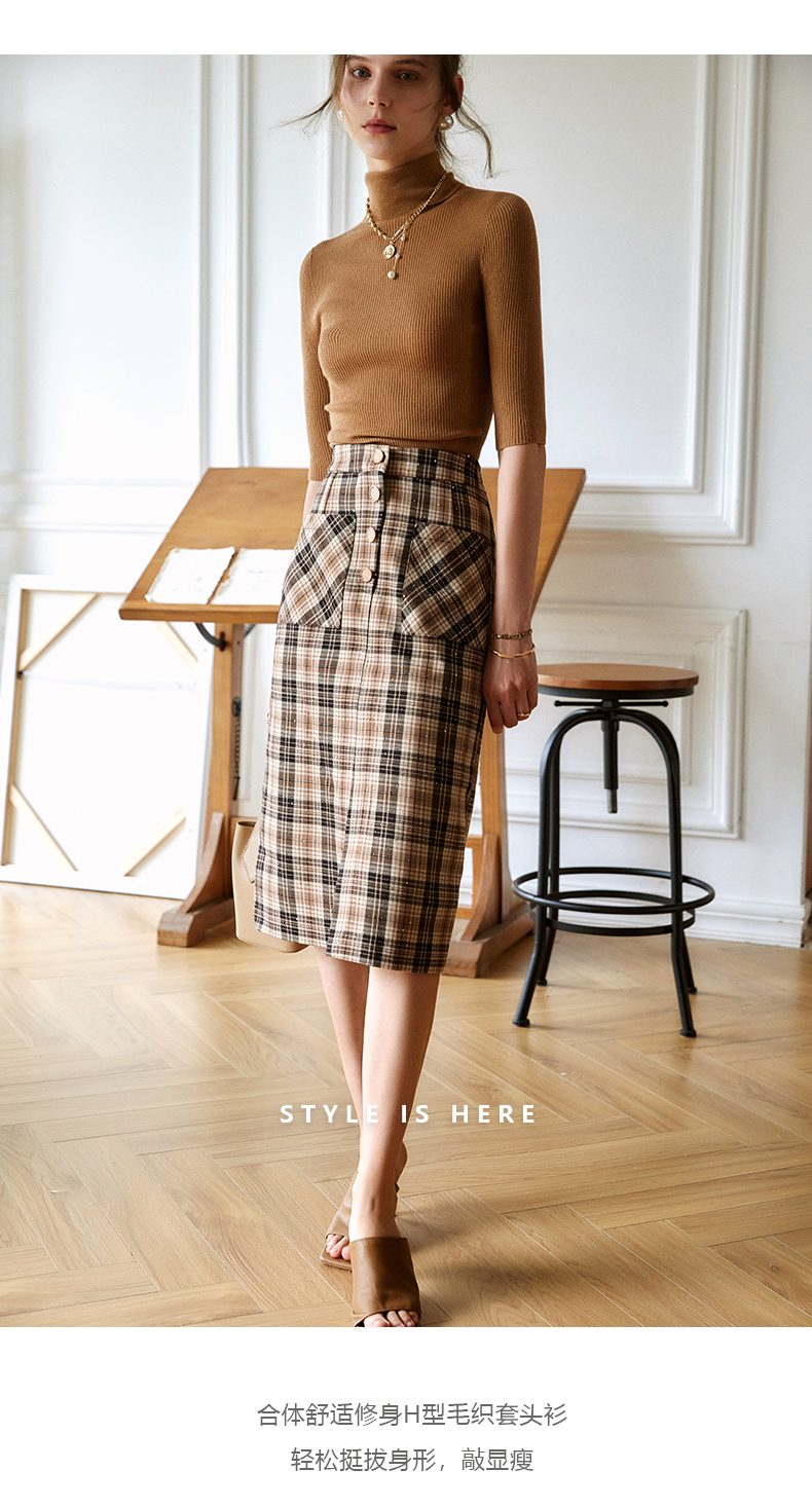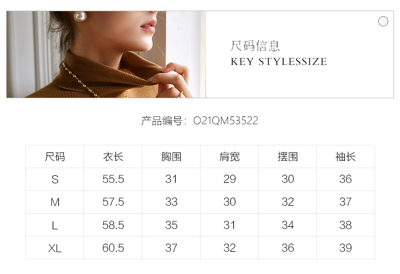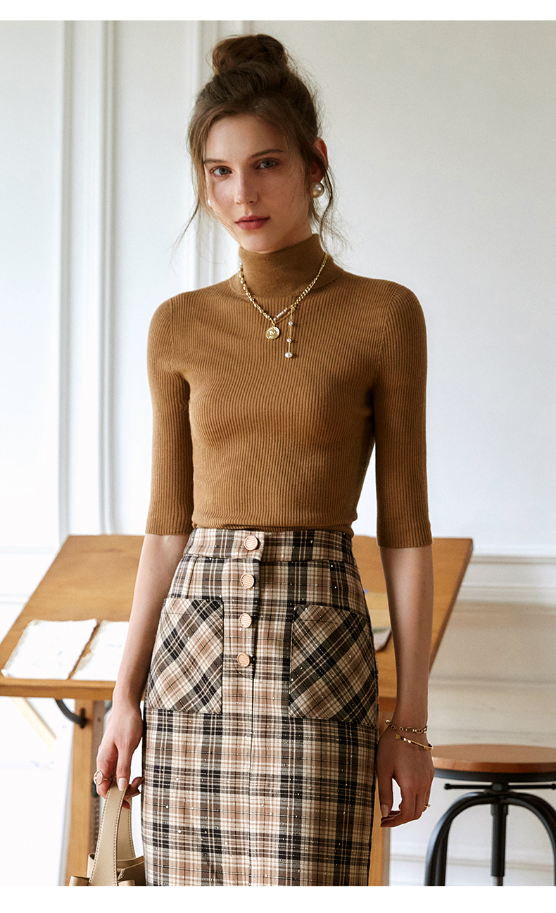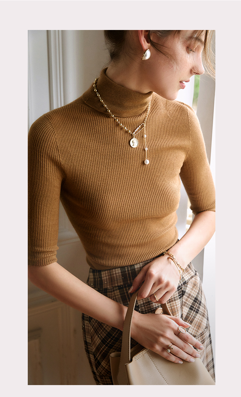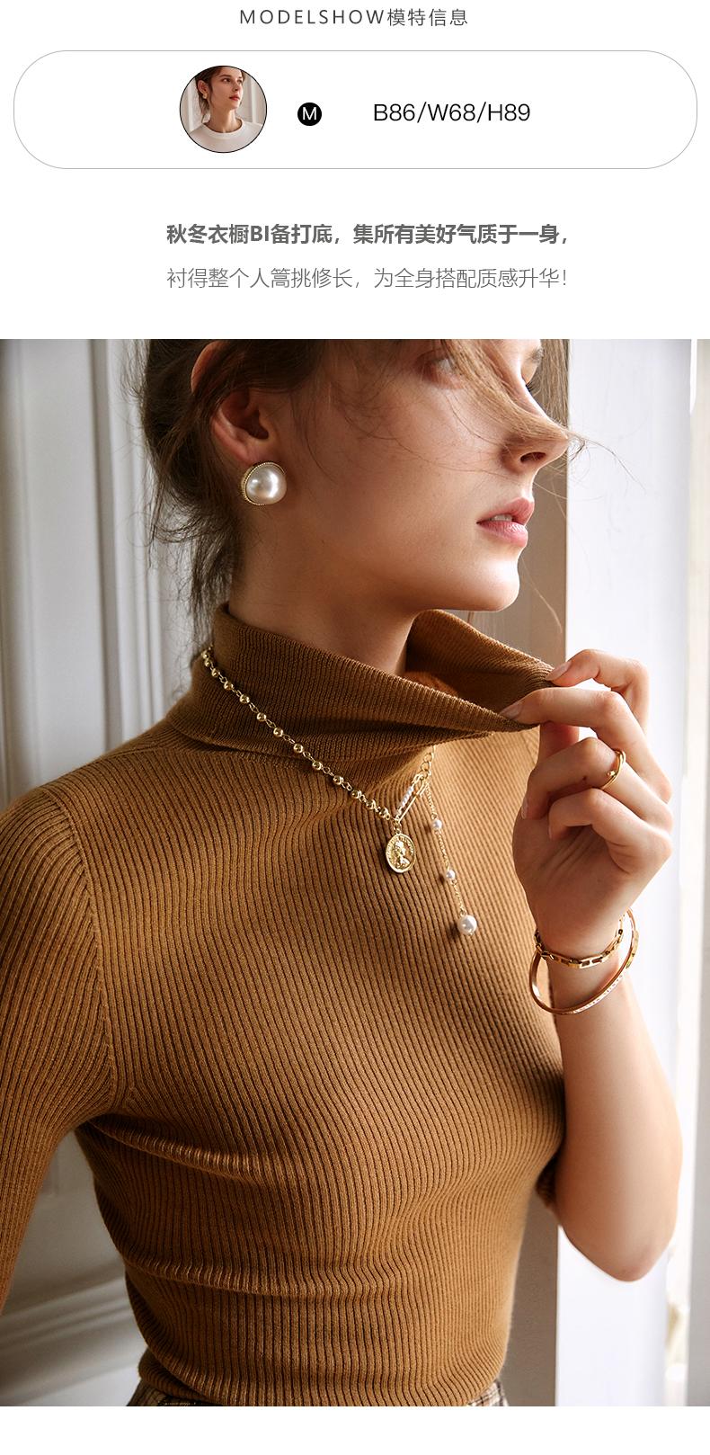 欧芮儿针织衫女2021新款纯色薄款半高领中袖修身显瘦打底上衣